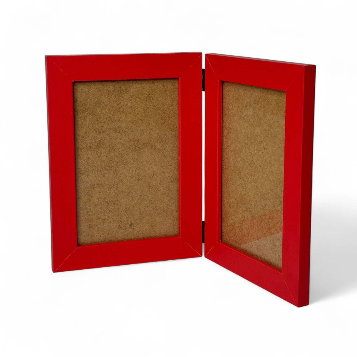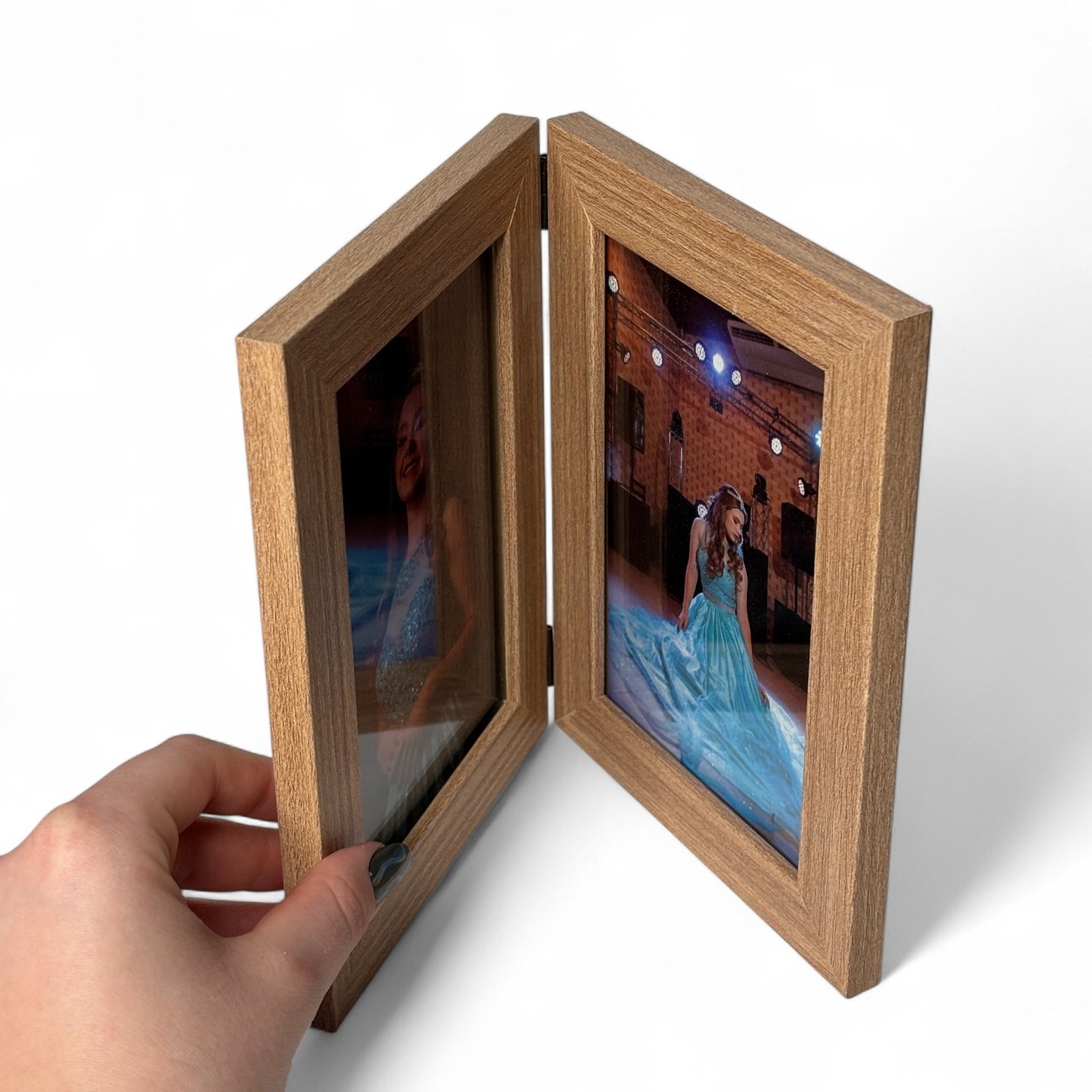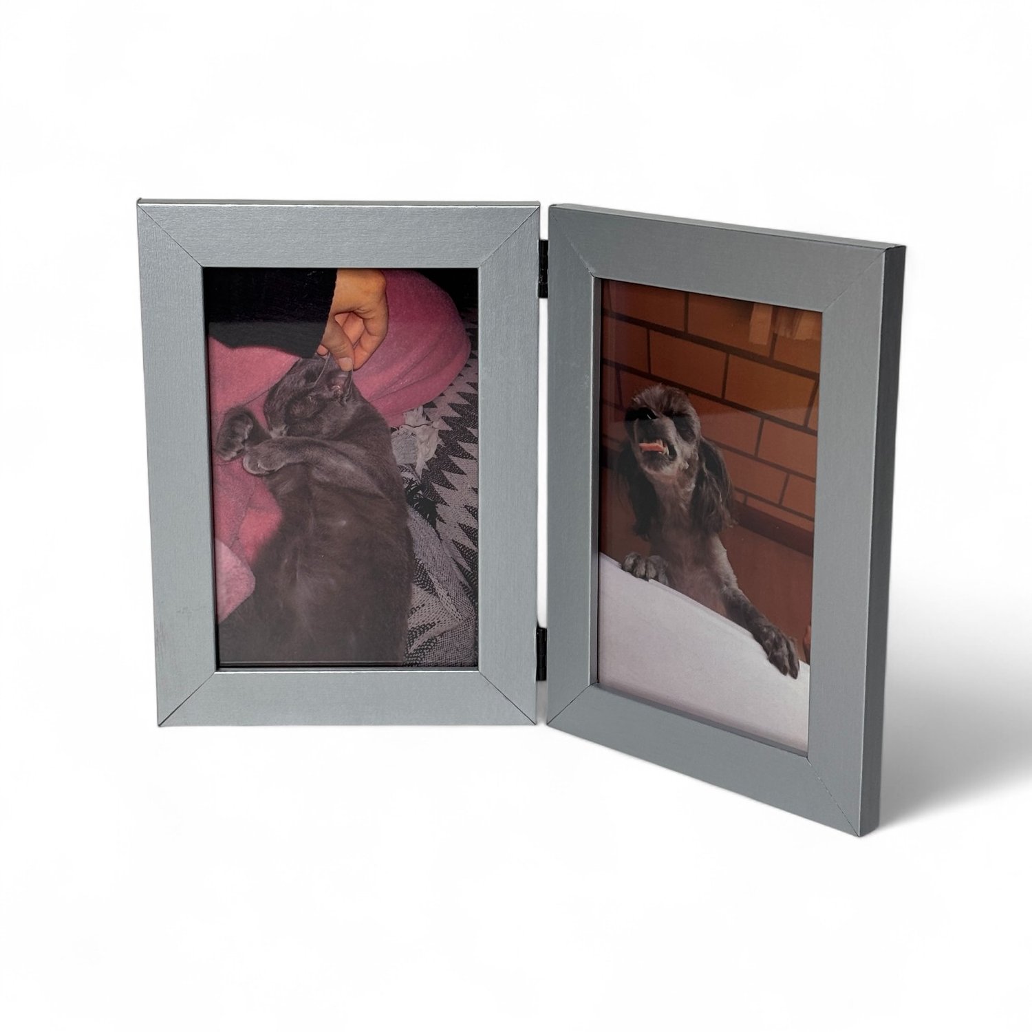 Porta-Retrato Duplo Articulado com Dobradiça Com Fundo em MDF e Frente em Acetato - 2x1