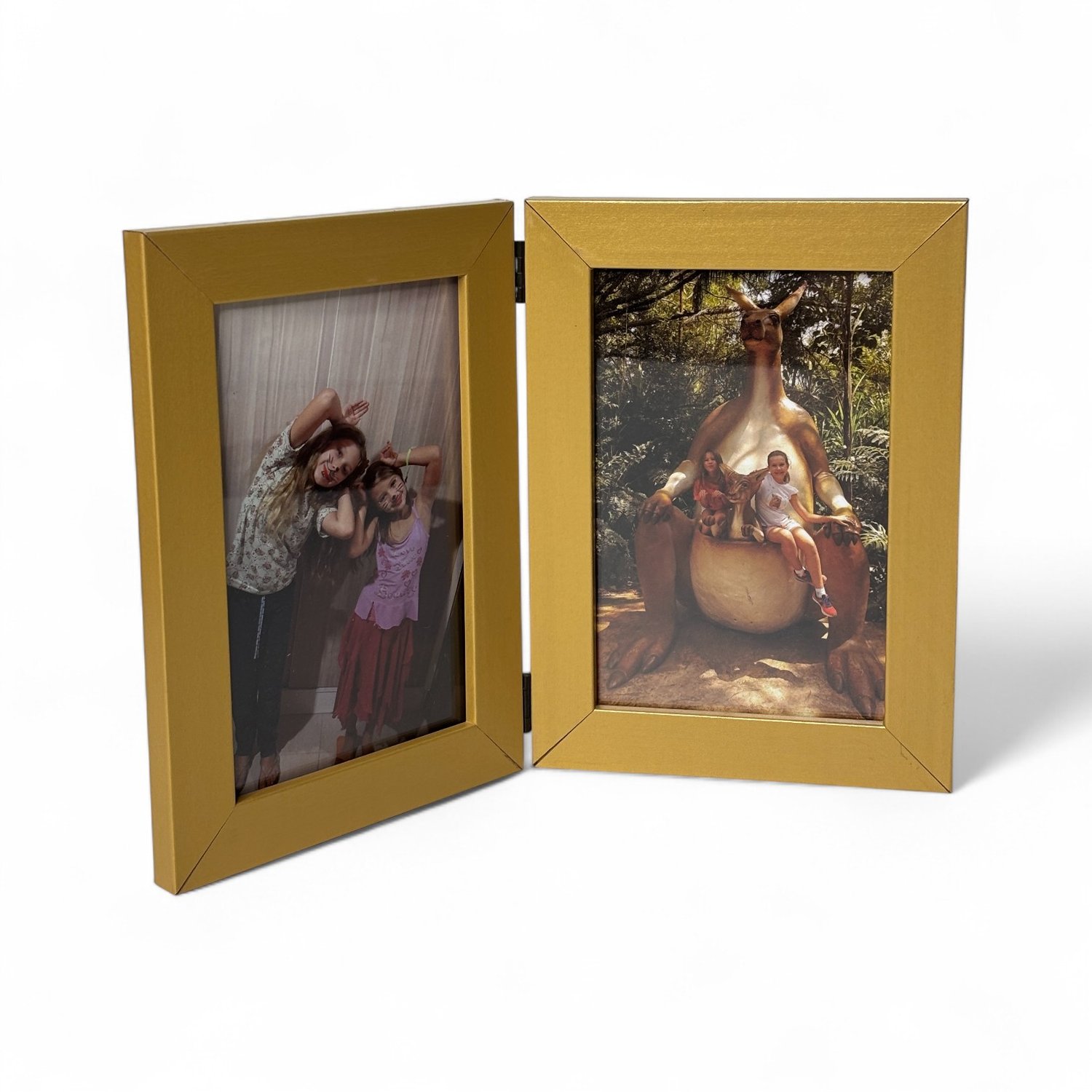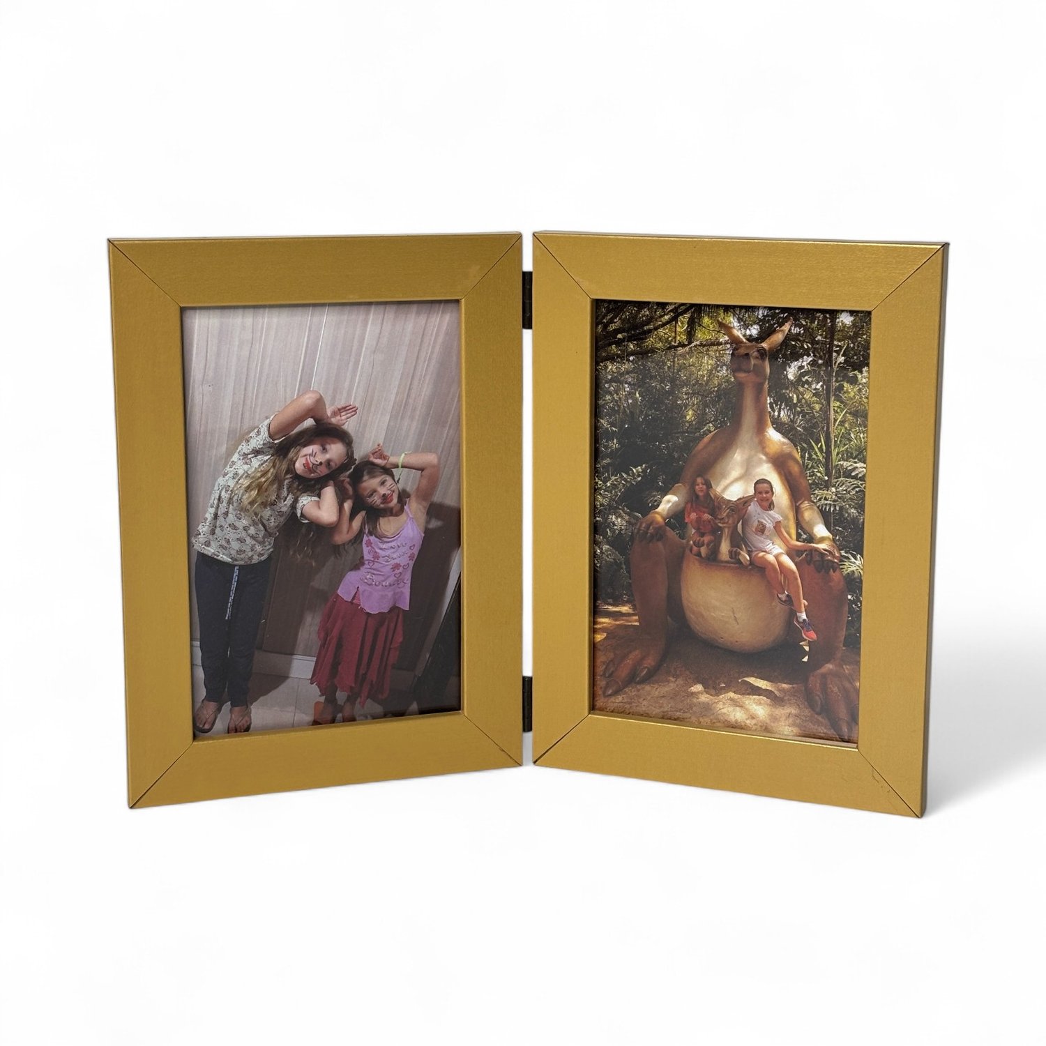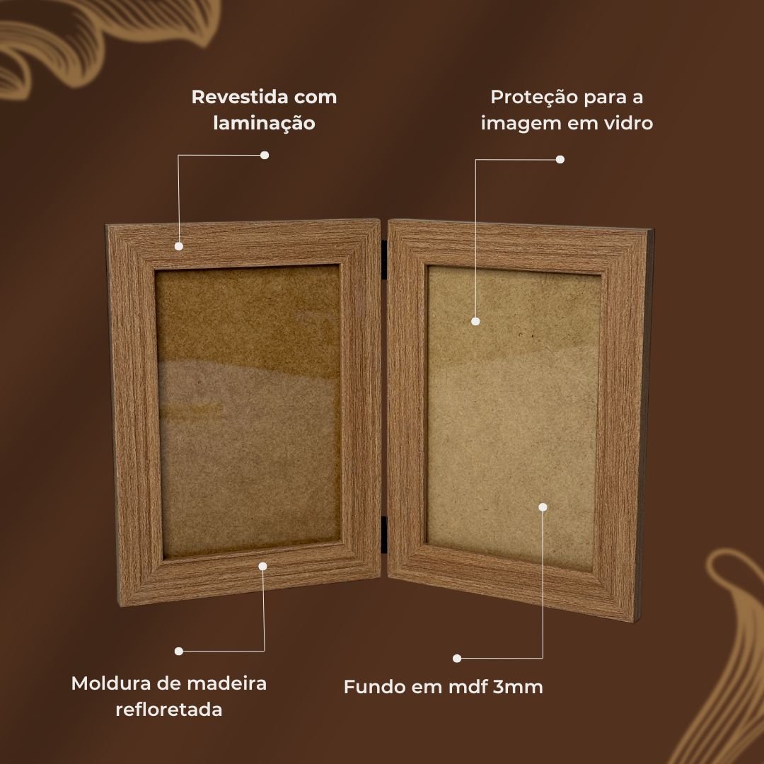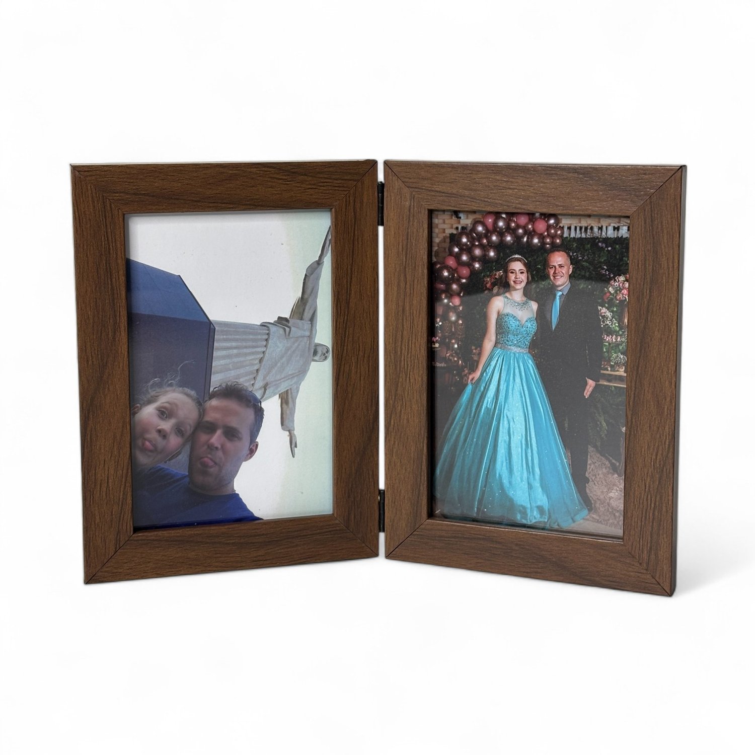 Porta-Retrato Duplo Articulado com Dobradiça Com Fundo em MDF e Frente em Vidro - 2x1