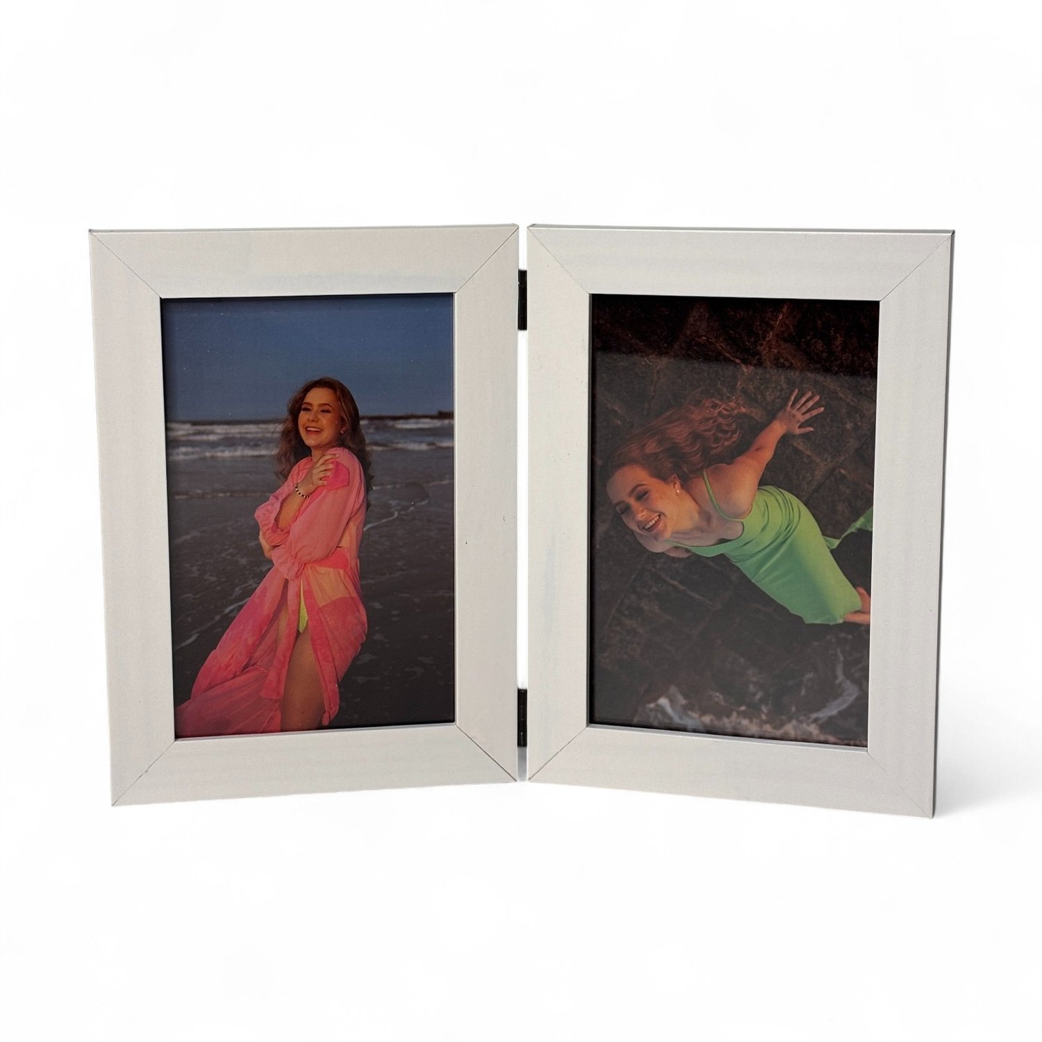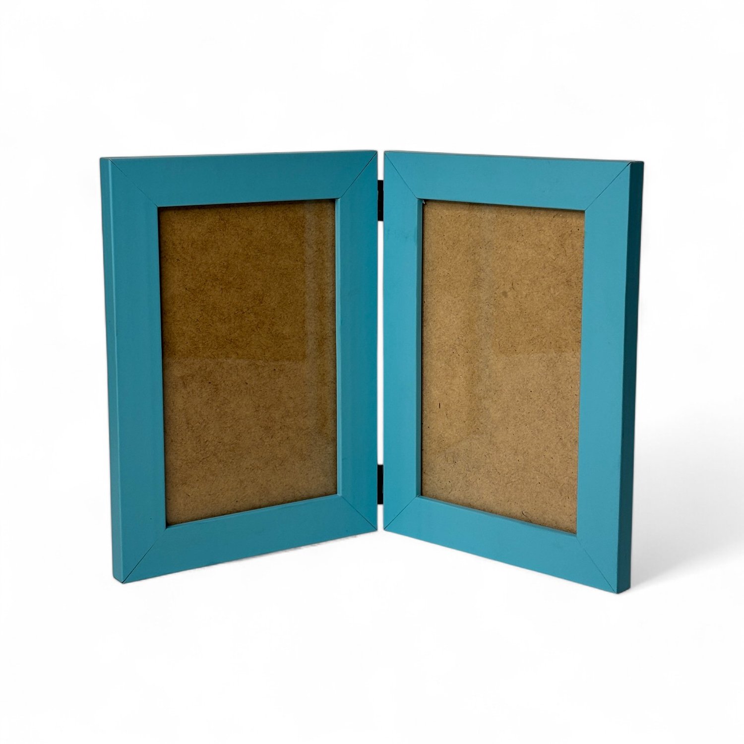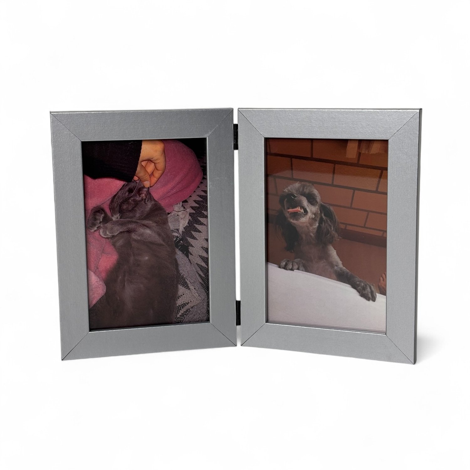 Porta-Retrato Duplo Articulado com Dobradiça Com Fundo em MDF e Frente em Vidro - 2x1