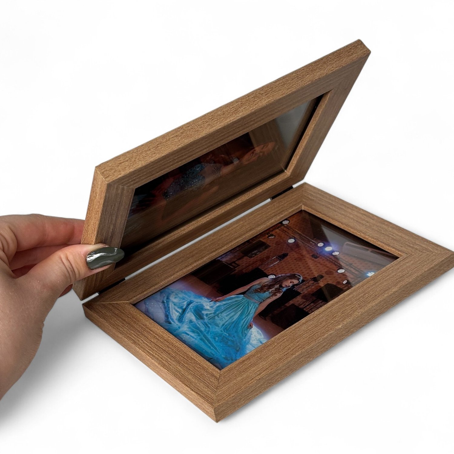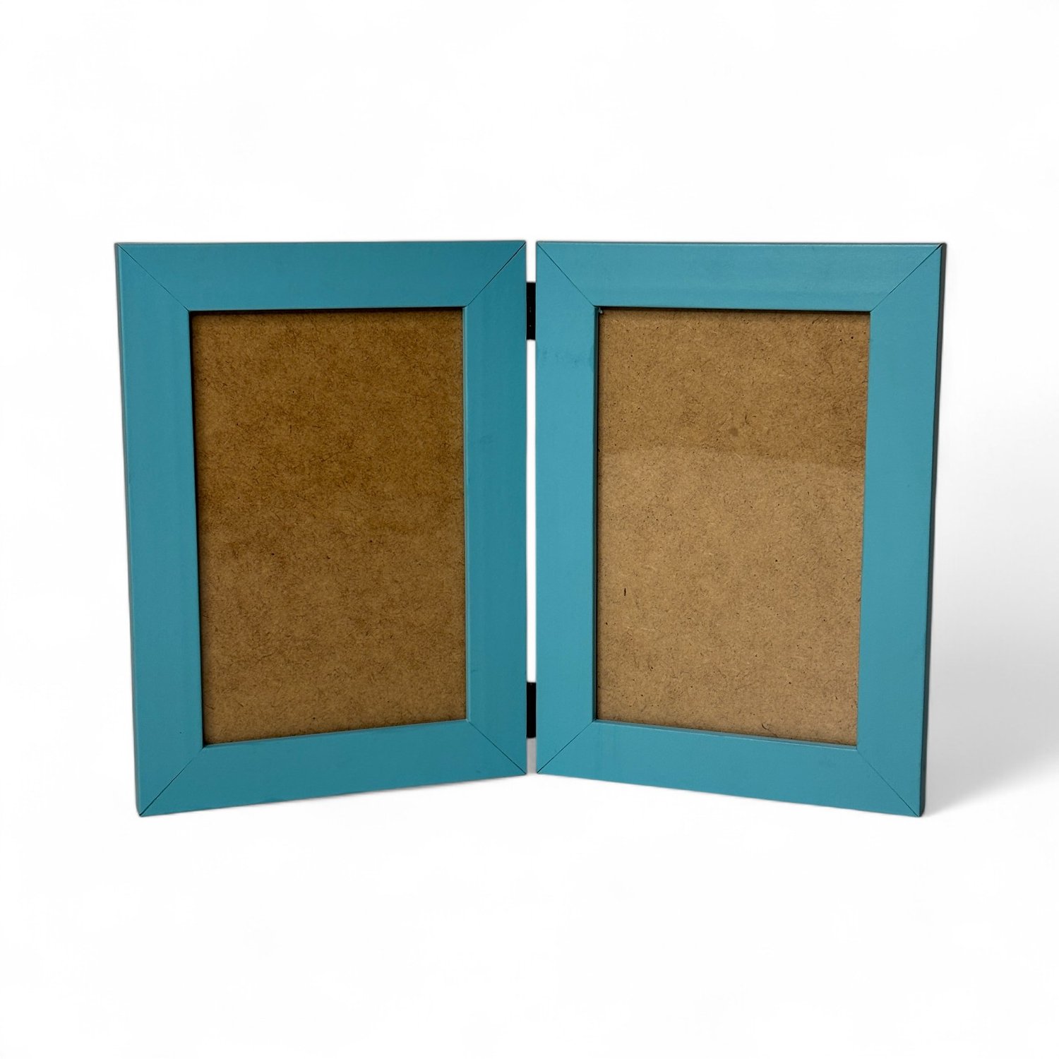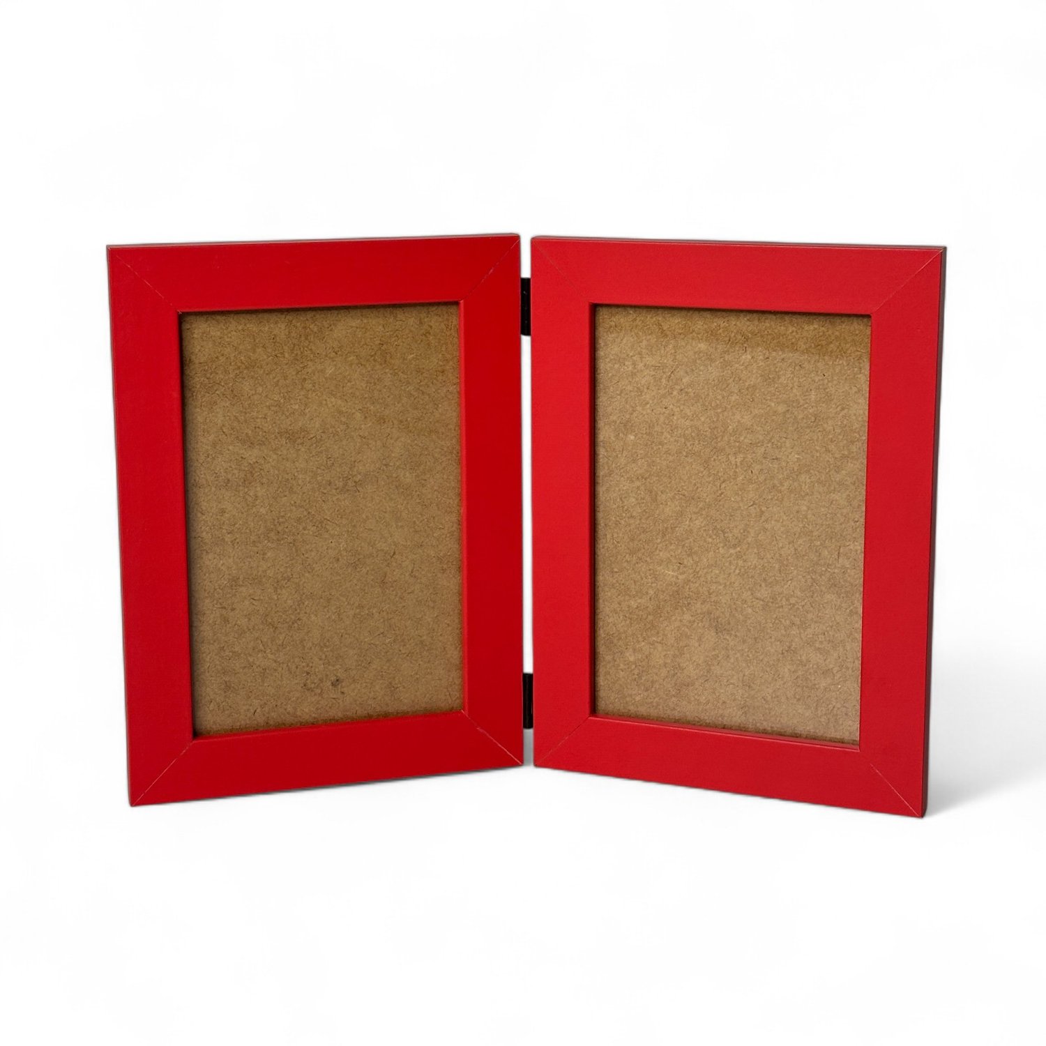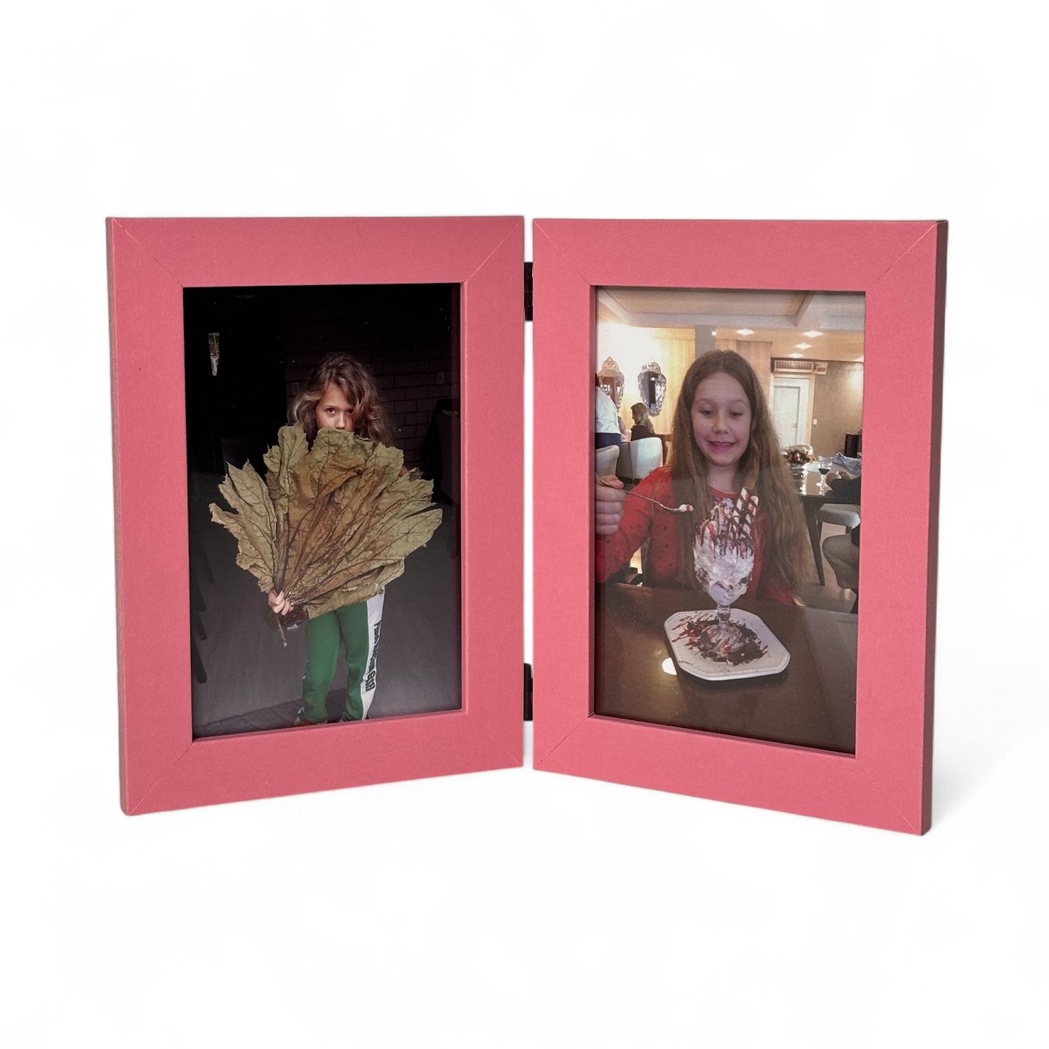 Porta-Retrato Duplo Articulado com Dobradiça Com Fundo em MDF e Frente em Vidro - 2x1