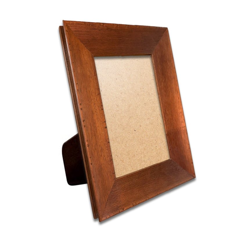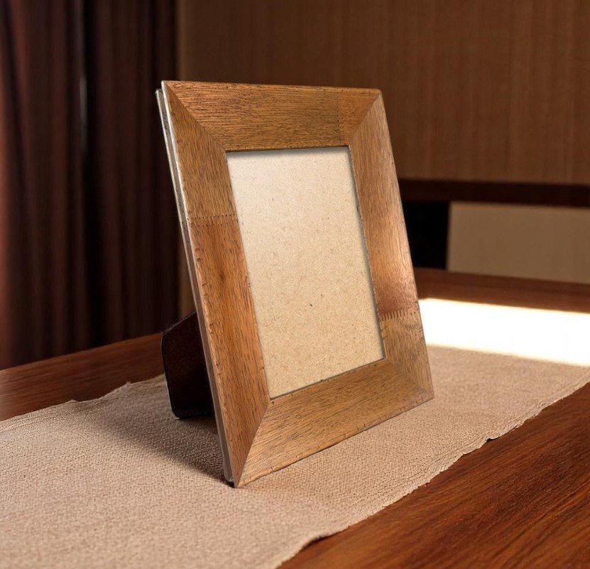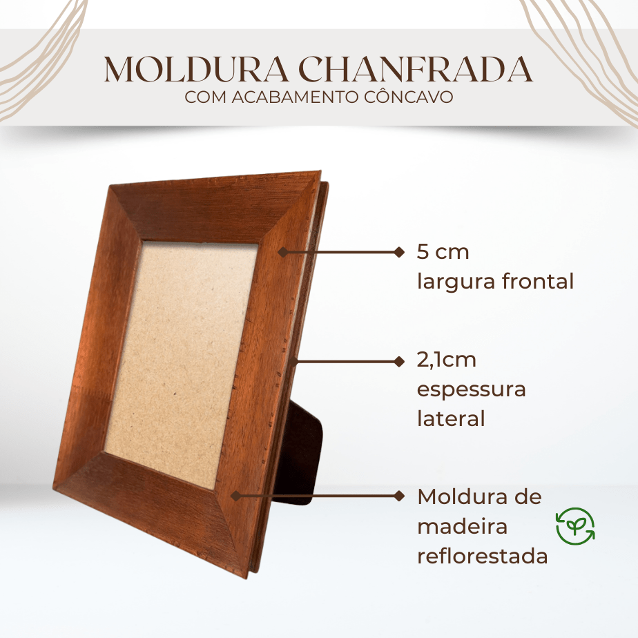 Porta Retrato Moldura Chanfrada com Acabamento Côncavo Estilo Madeira Rústica Com Suporte E Frente Em PVC Antirreflexo - 5x2,1