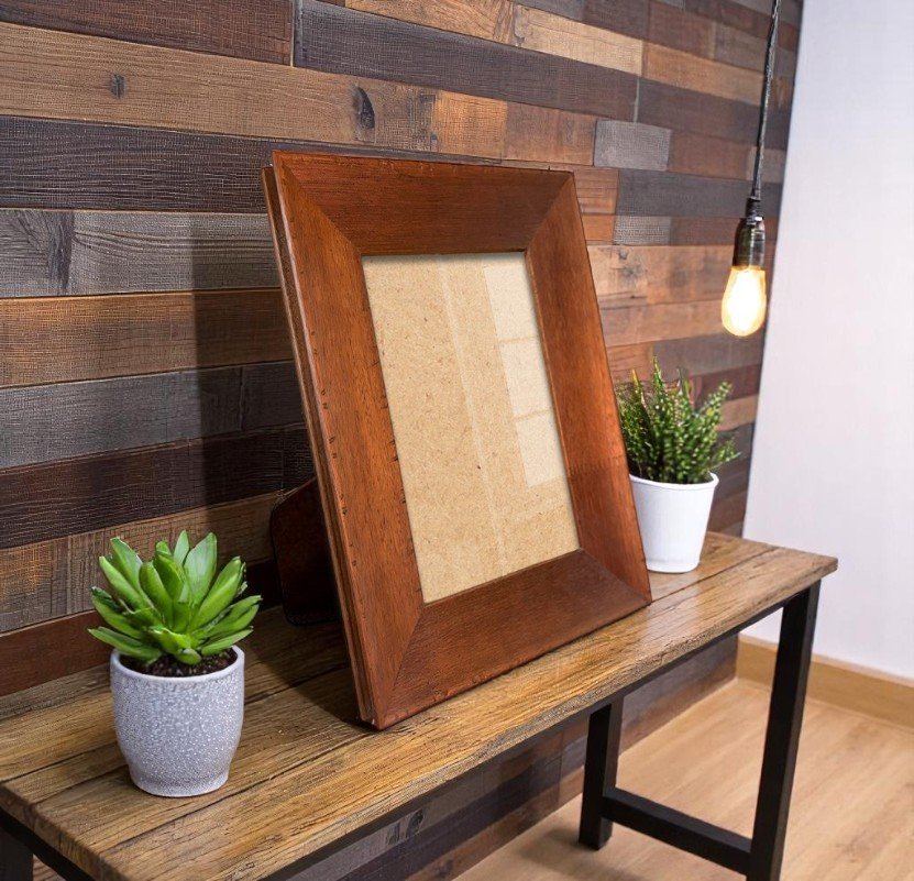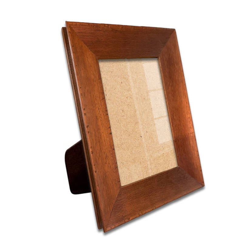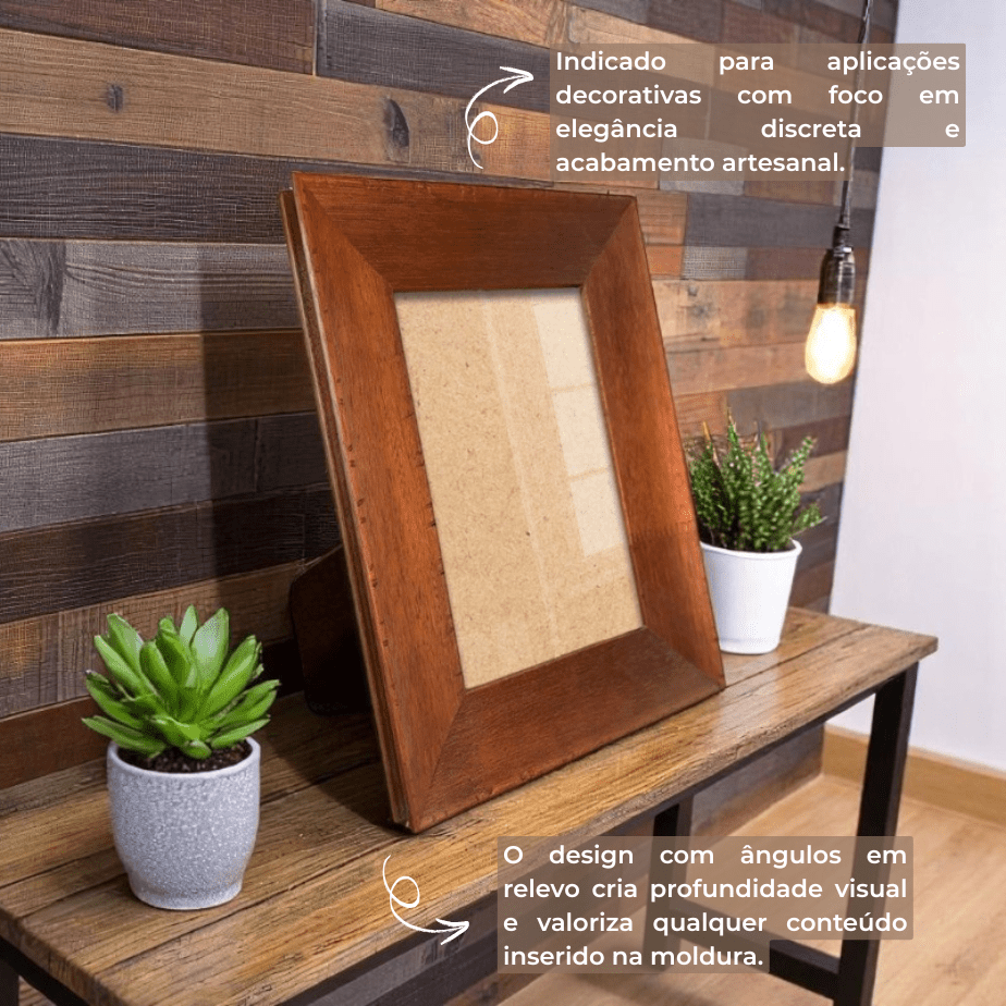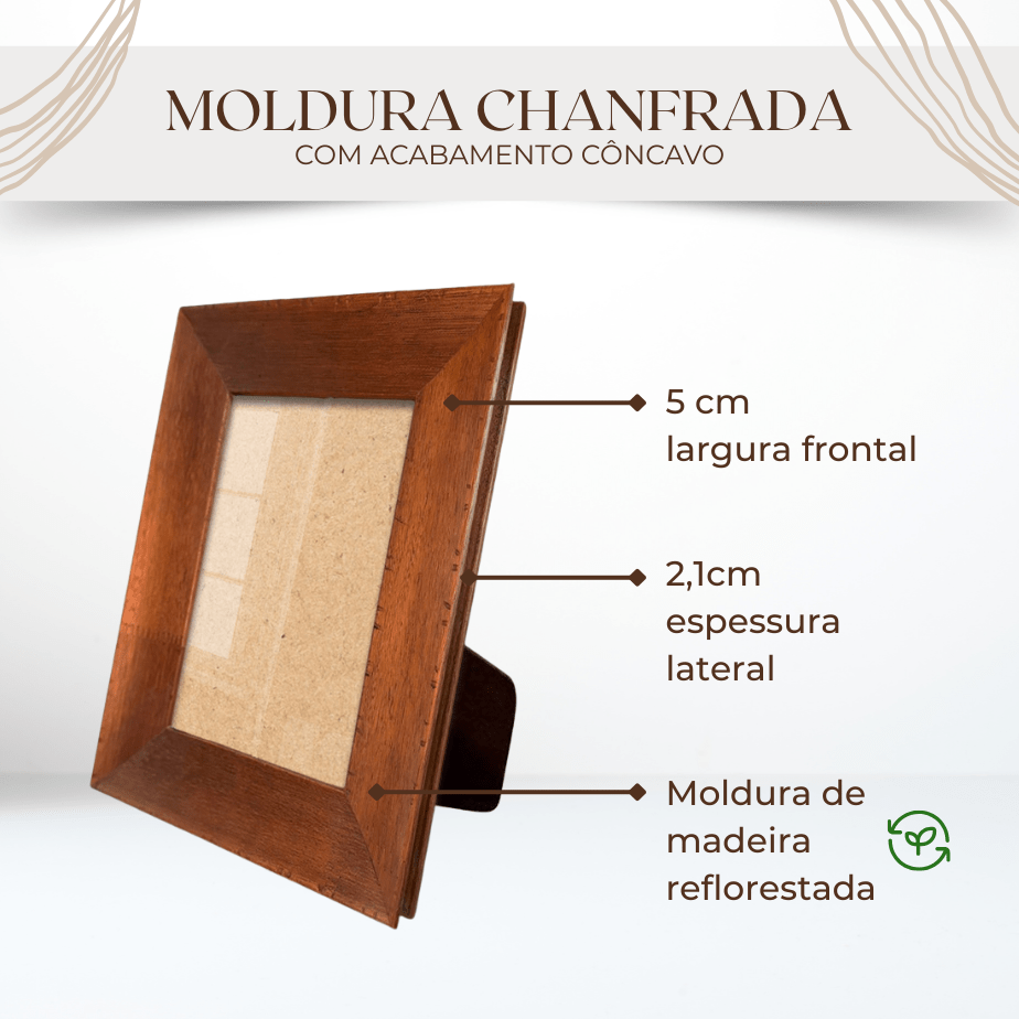 Porta Retrato Moldura Chanfrada com Acabamento Côncavo Estilo Madeira Rústica Com Suporte E Frente Em Acetato - 5x2,1