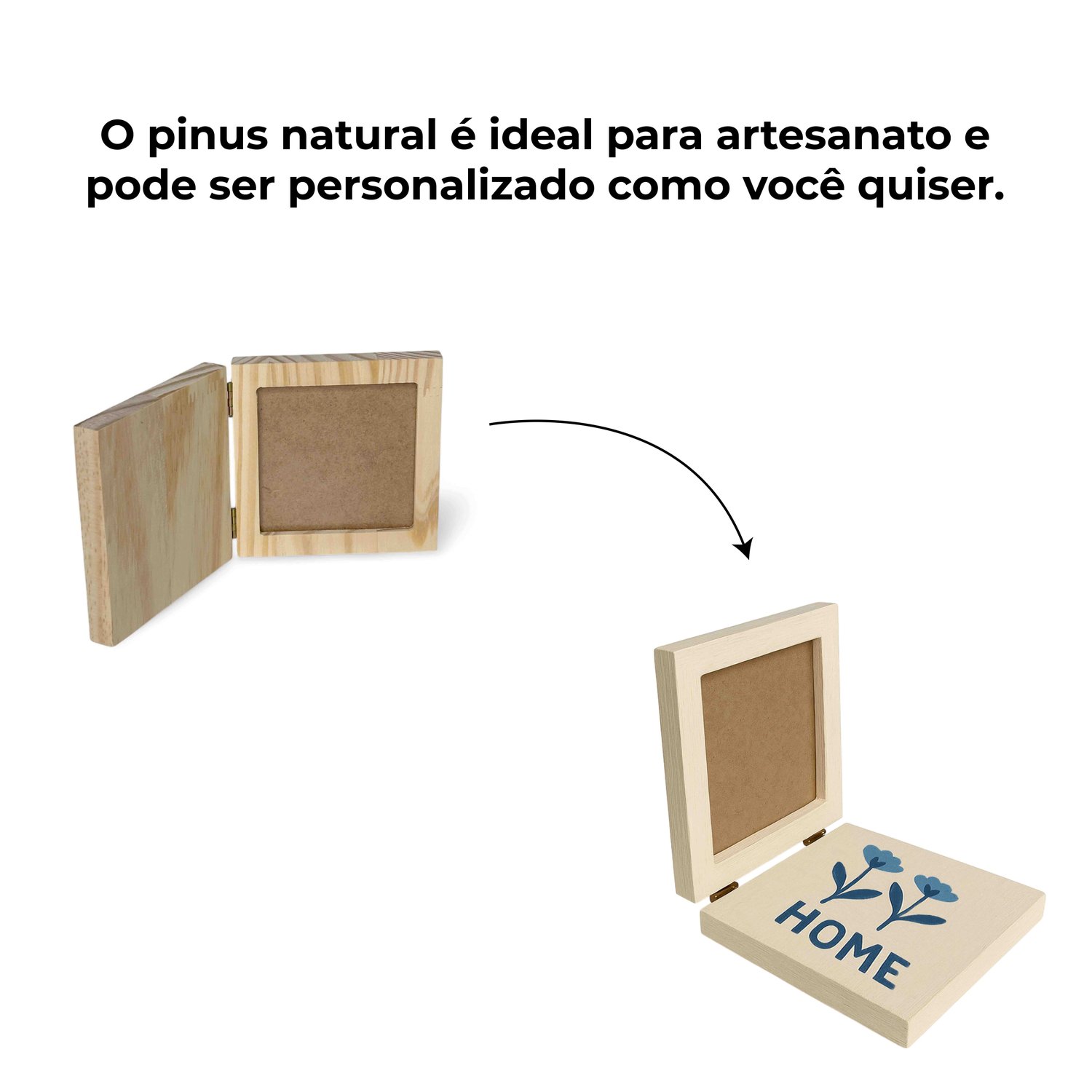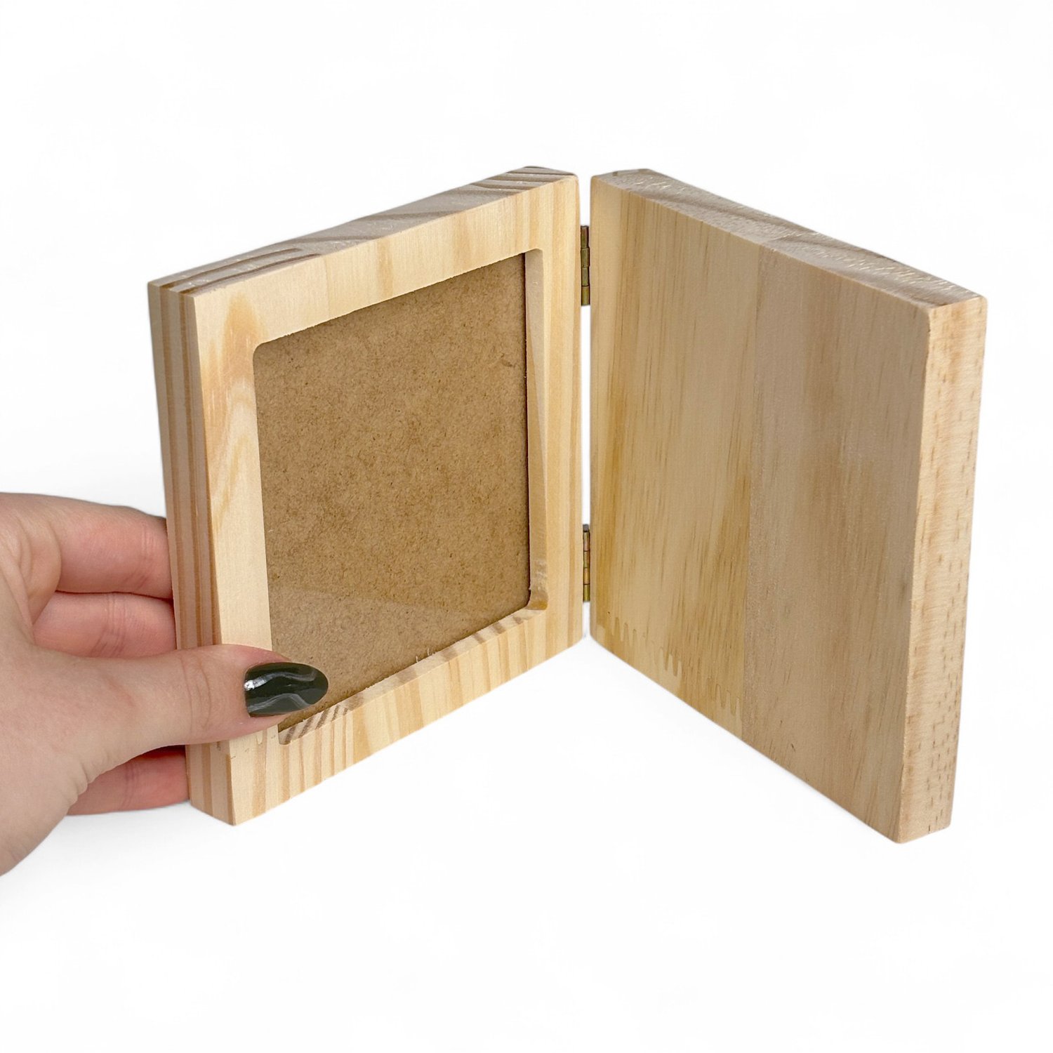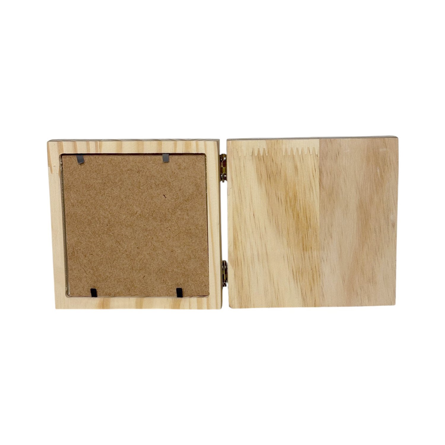 Porta-Retrato Sanfonado Dobrável em Madeira Pinus Com Acetato – Moldura Com Espaço Personalizável