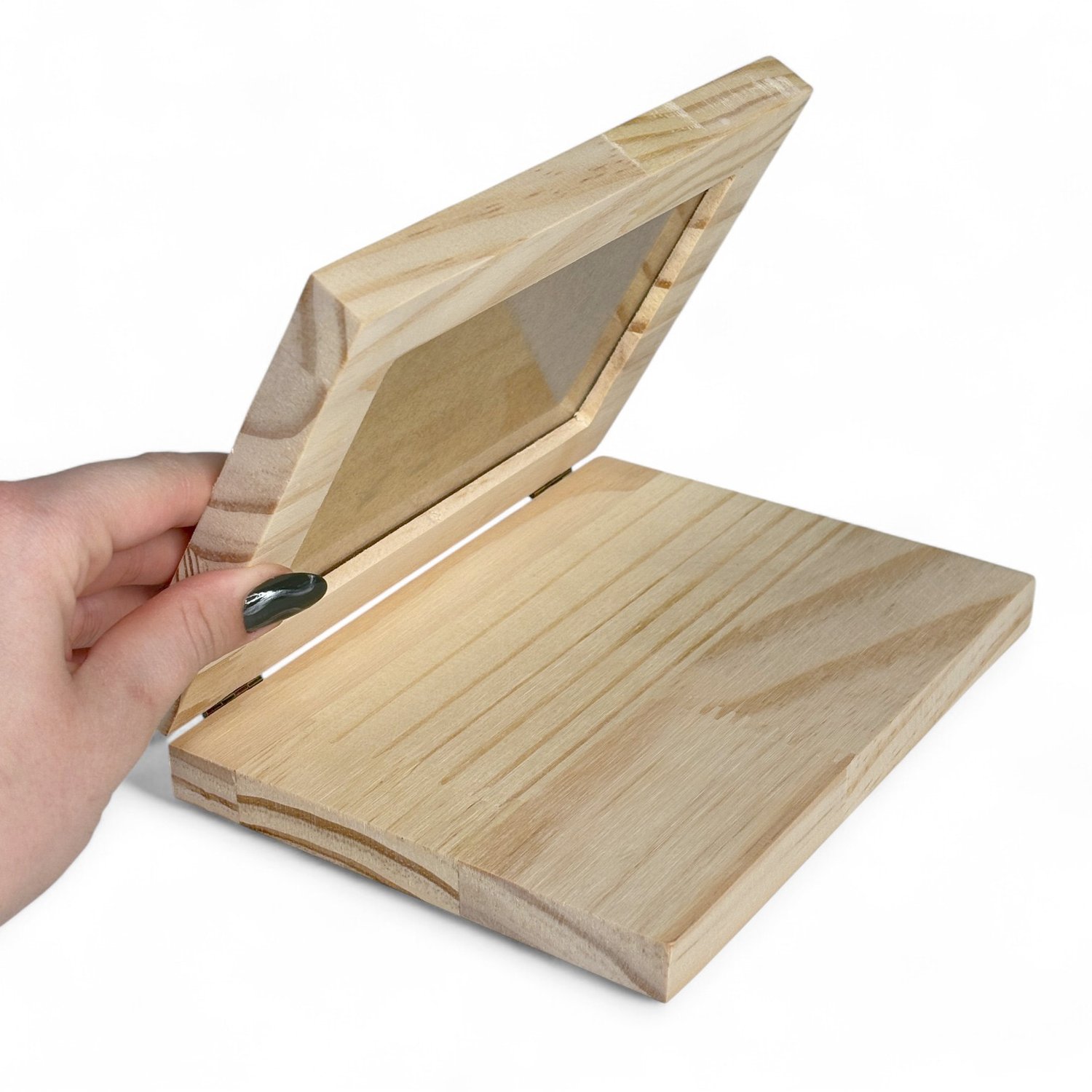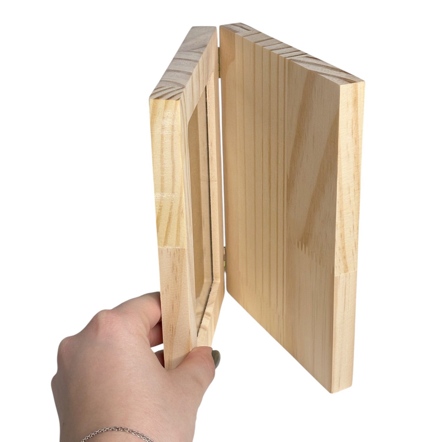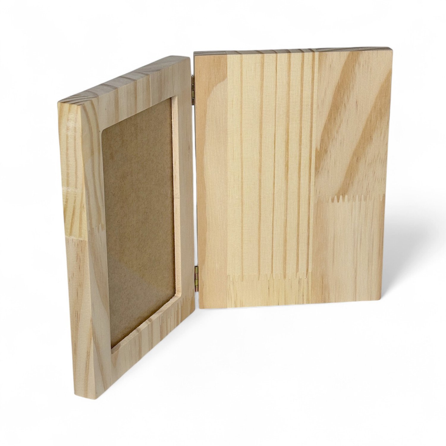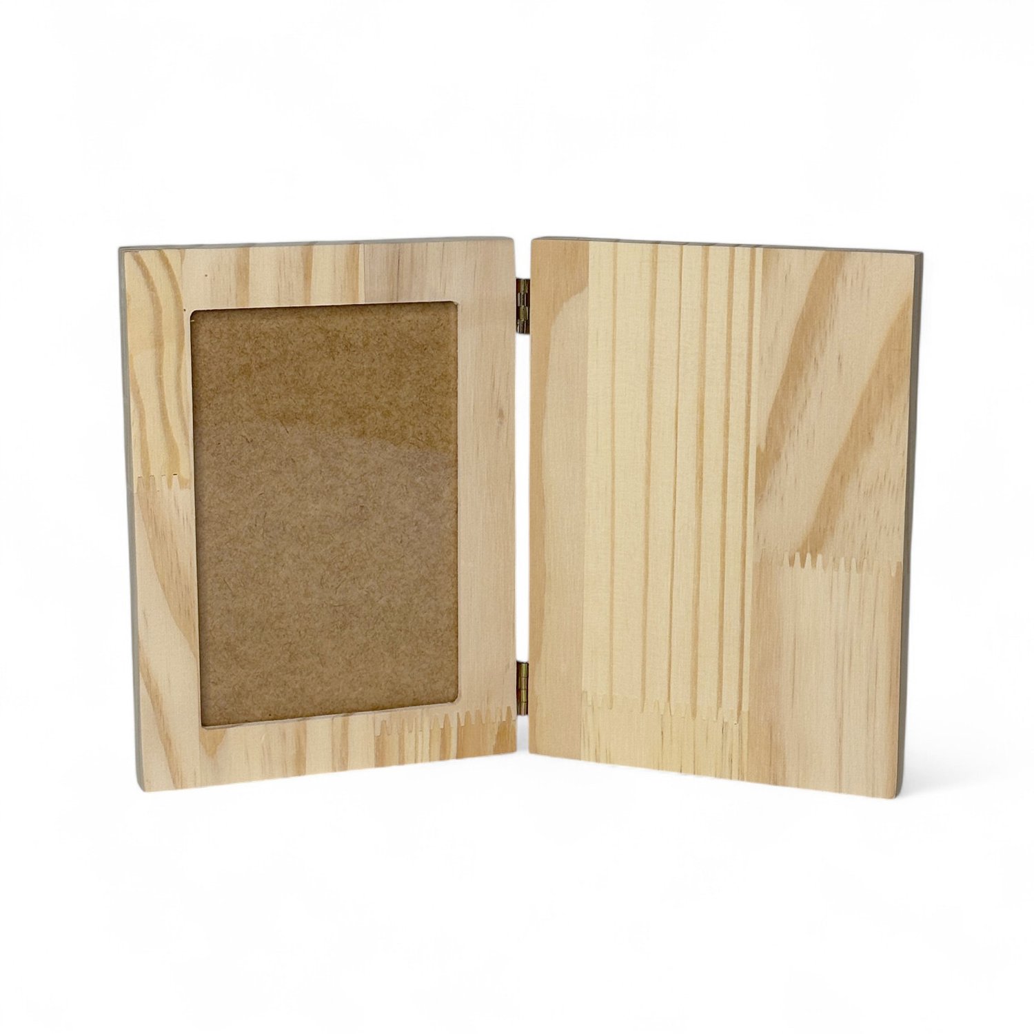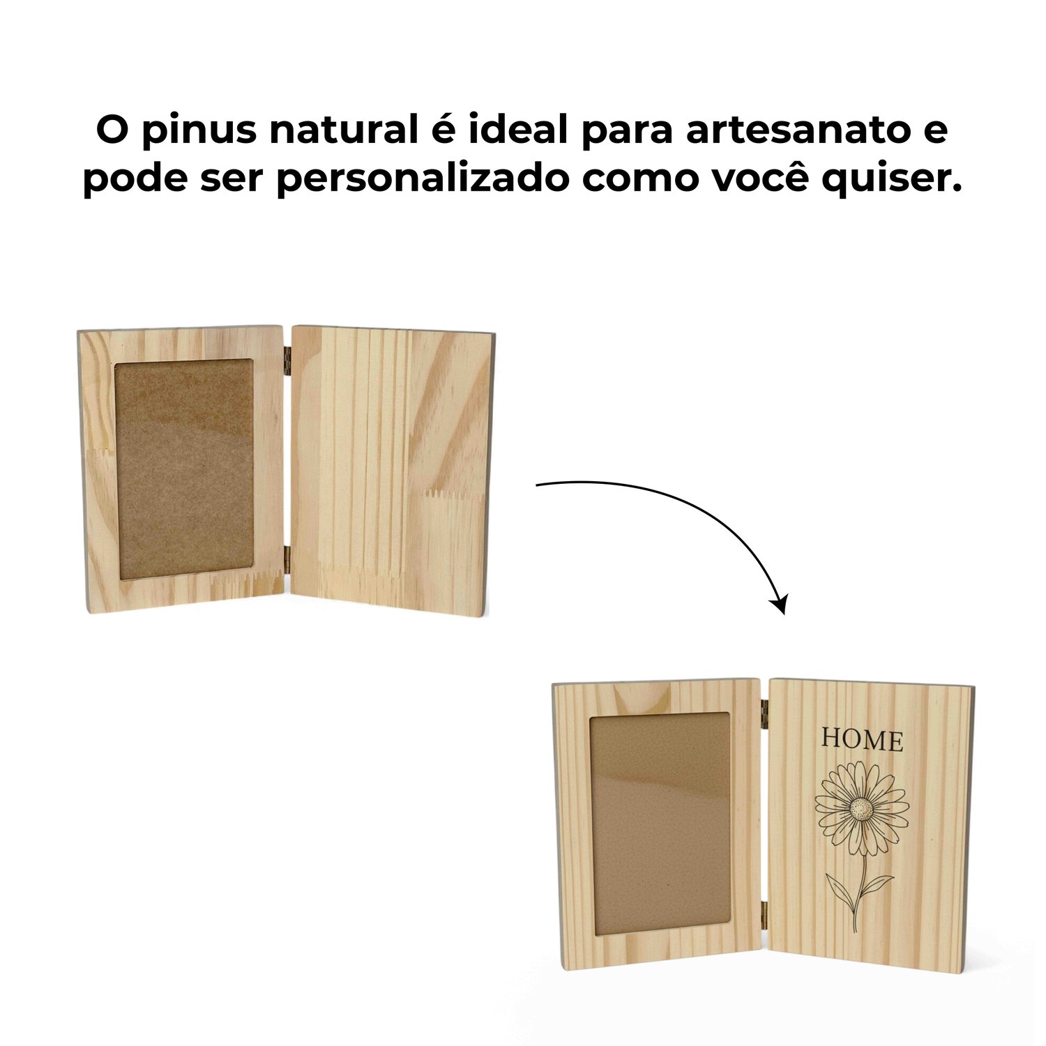 Porta-Retrato Sanfonado Dobrável em Madeira Pinus com Acetato – Com Espaço Personalizável