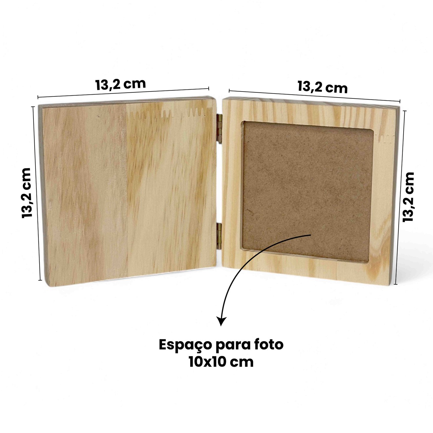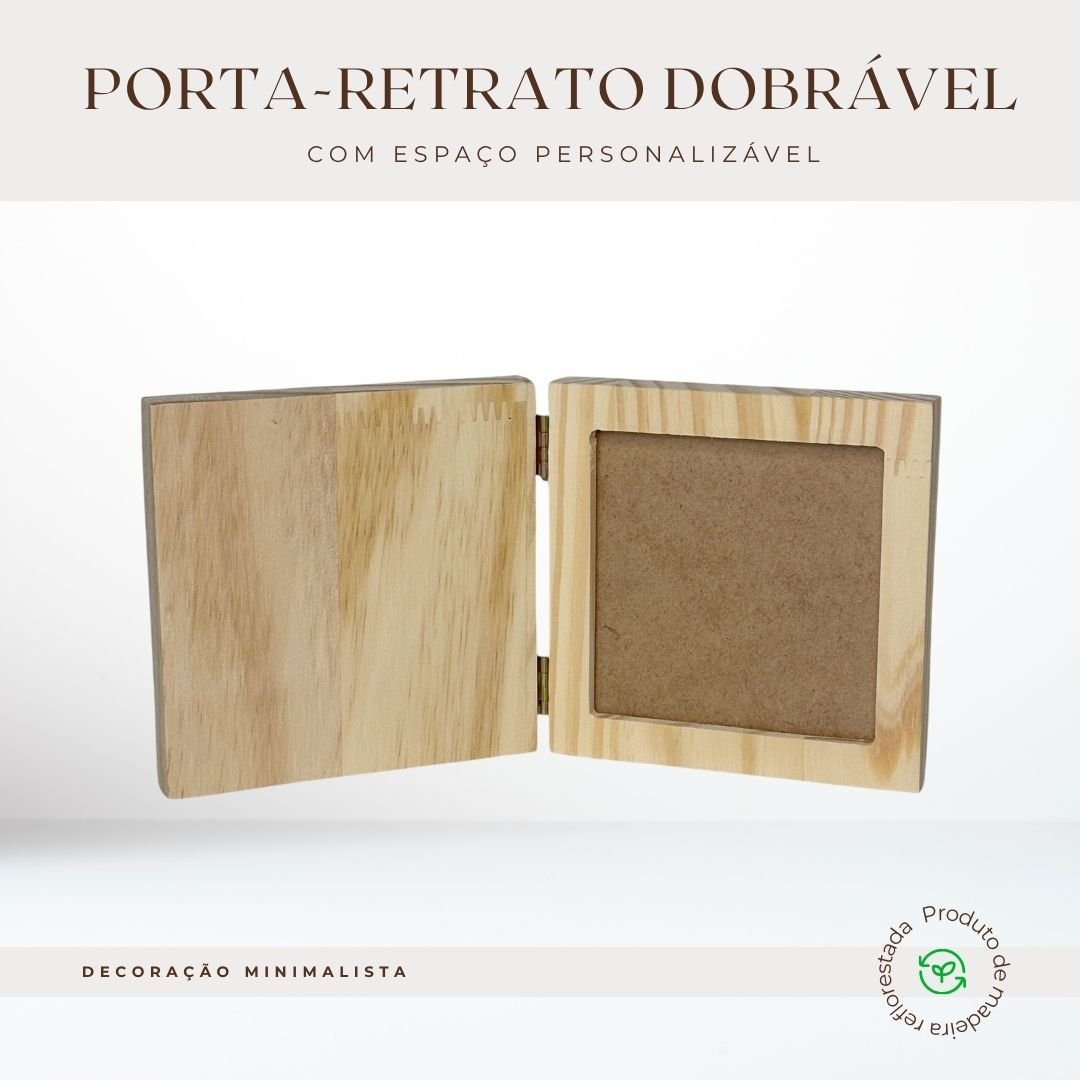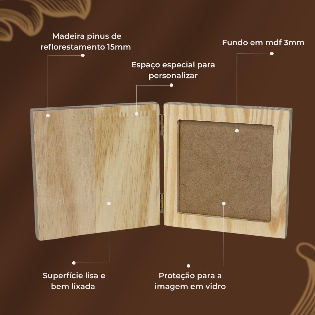 Porta-Retrato Sanfonado Dobrável em Madeira Pinus com Vidro – Com Espaço Personalizável