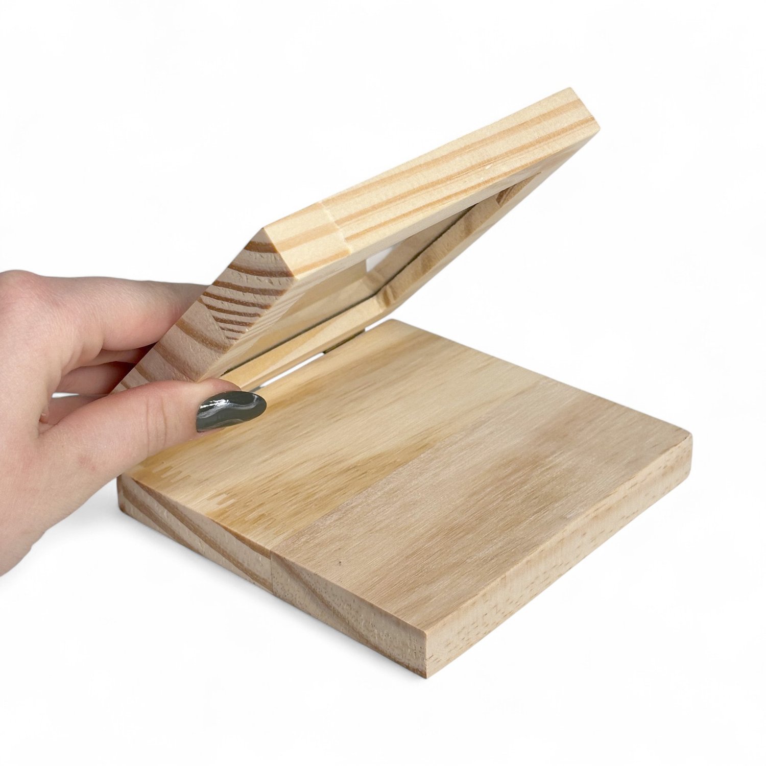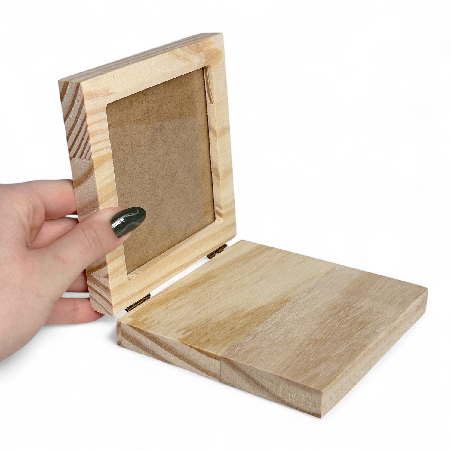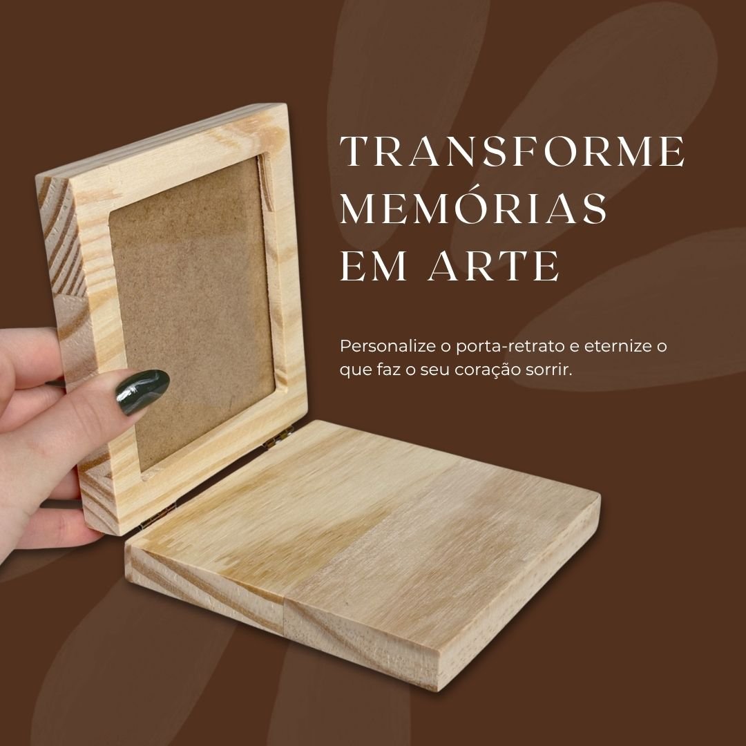 Porta-Retrato Sanfonado Dobrável em Madeira Pinus com Vidro – Com Espaço Personalizável