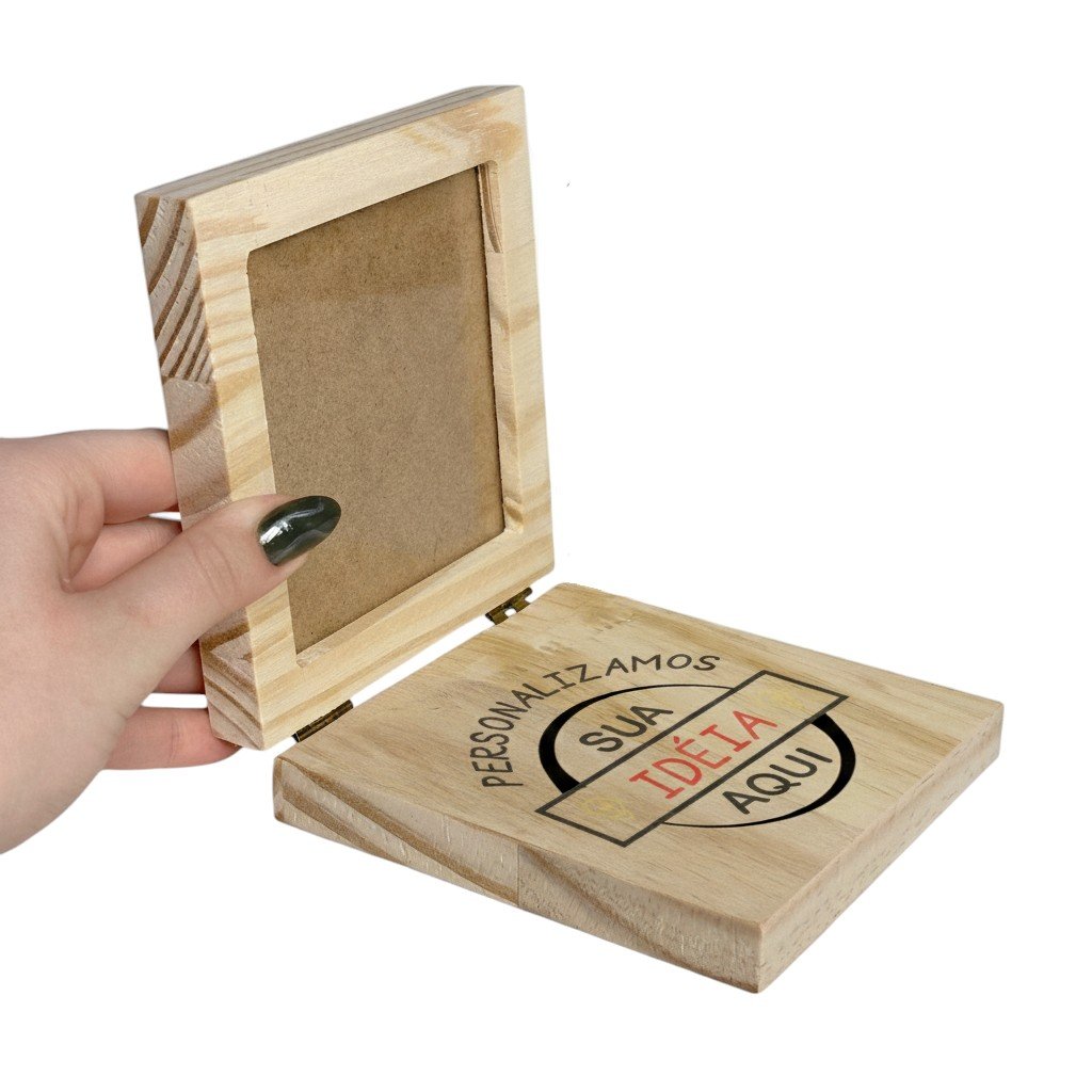 Porta-Retrato Sanfonado Personalizado Dobrável em Madeira Pinus com Vidro com Gravação a Laser ou Impressão UV