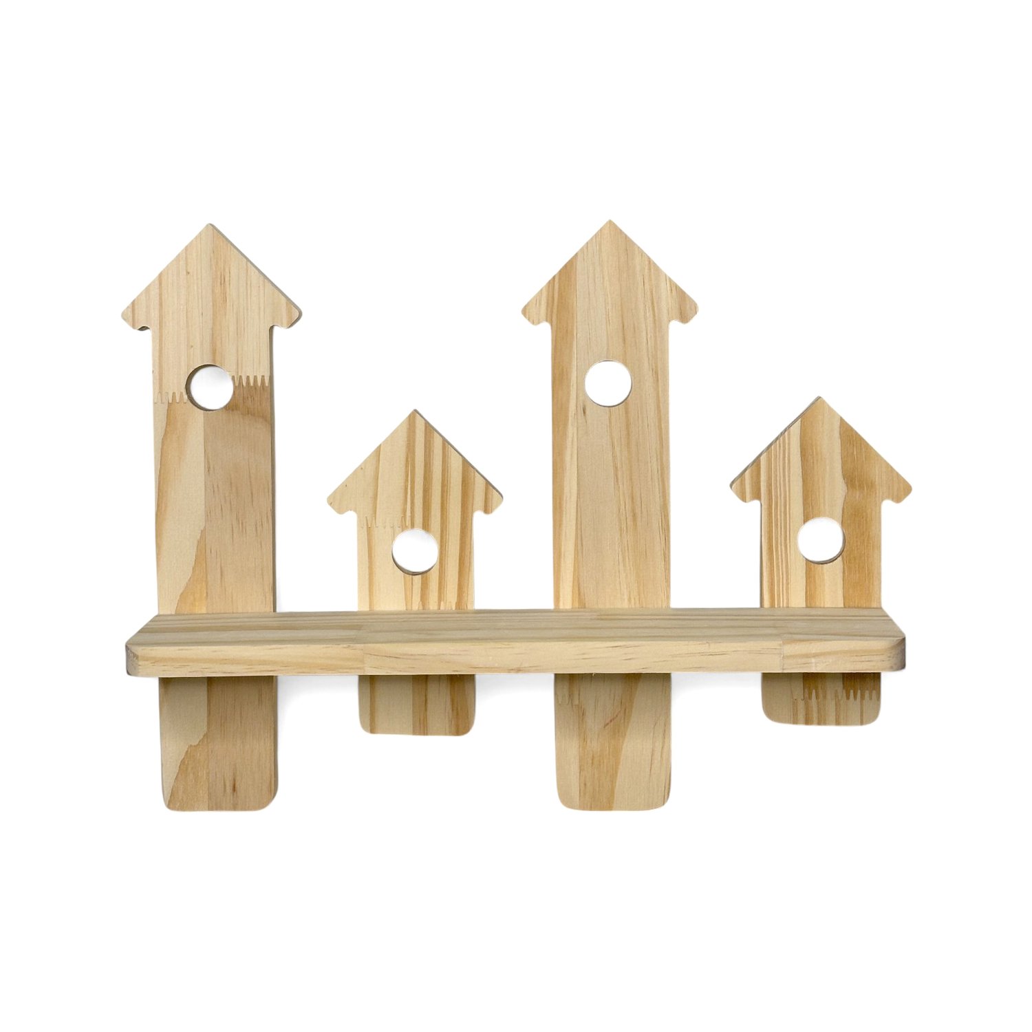 Dê vida às suas paredes com a nossa Prateleira de Parede com Casinhas de Passarinhos em Madeira Pinus, perfeita para transformar qualquer ambiente com charme, organização e personalidade.