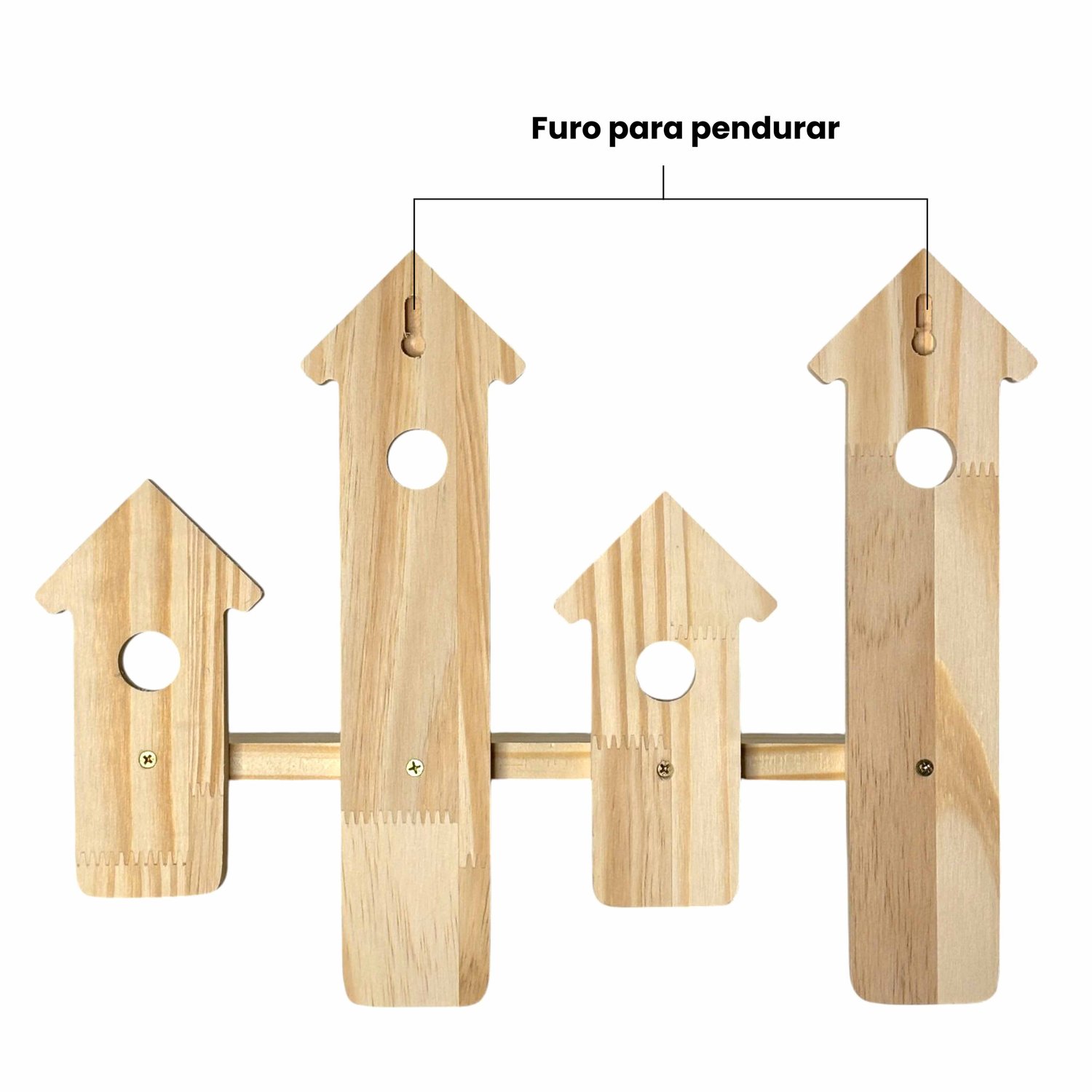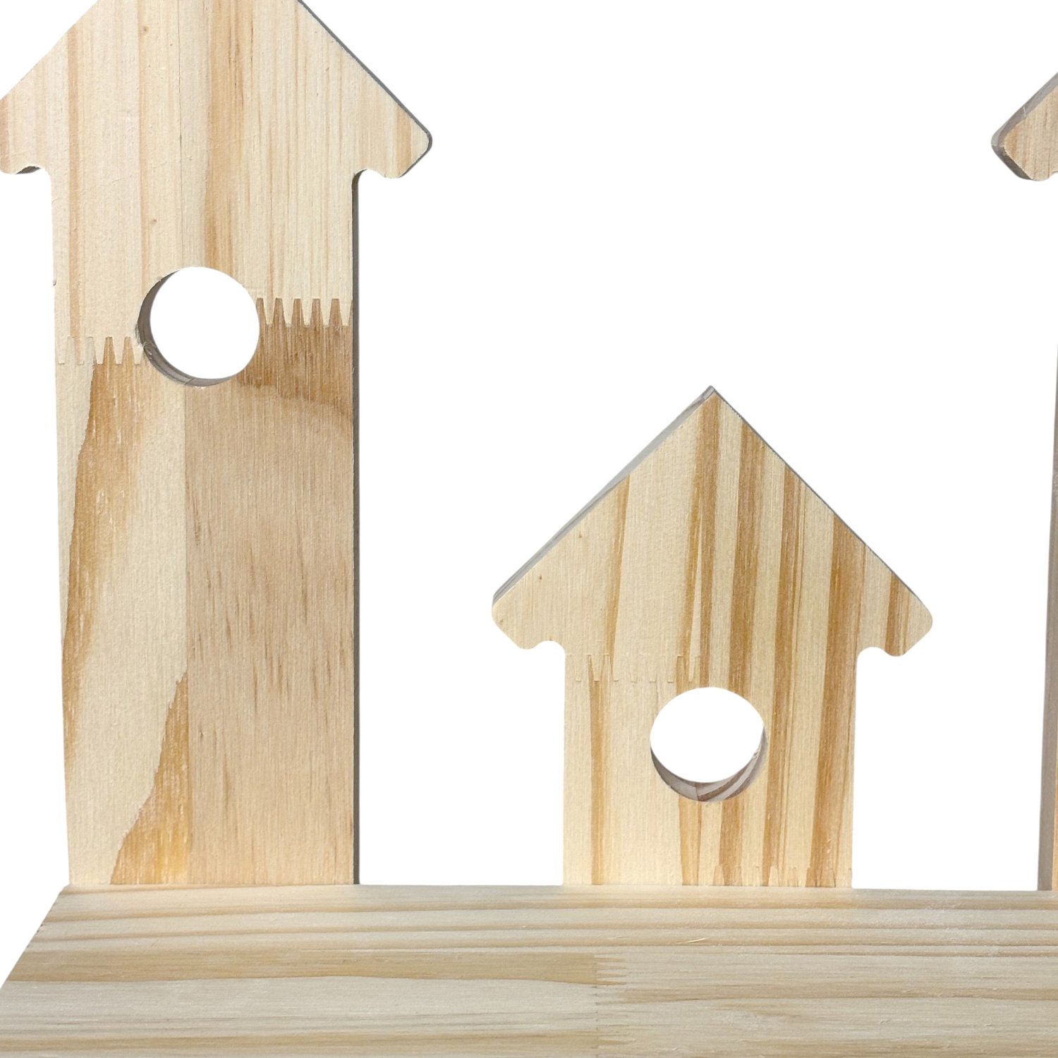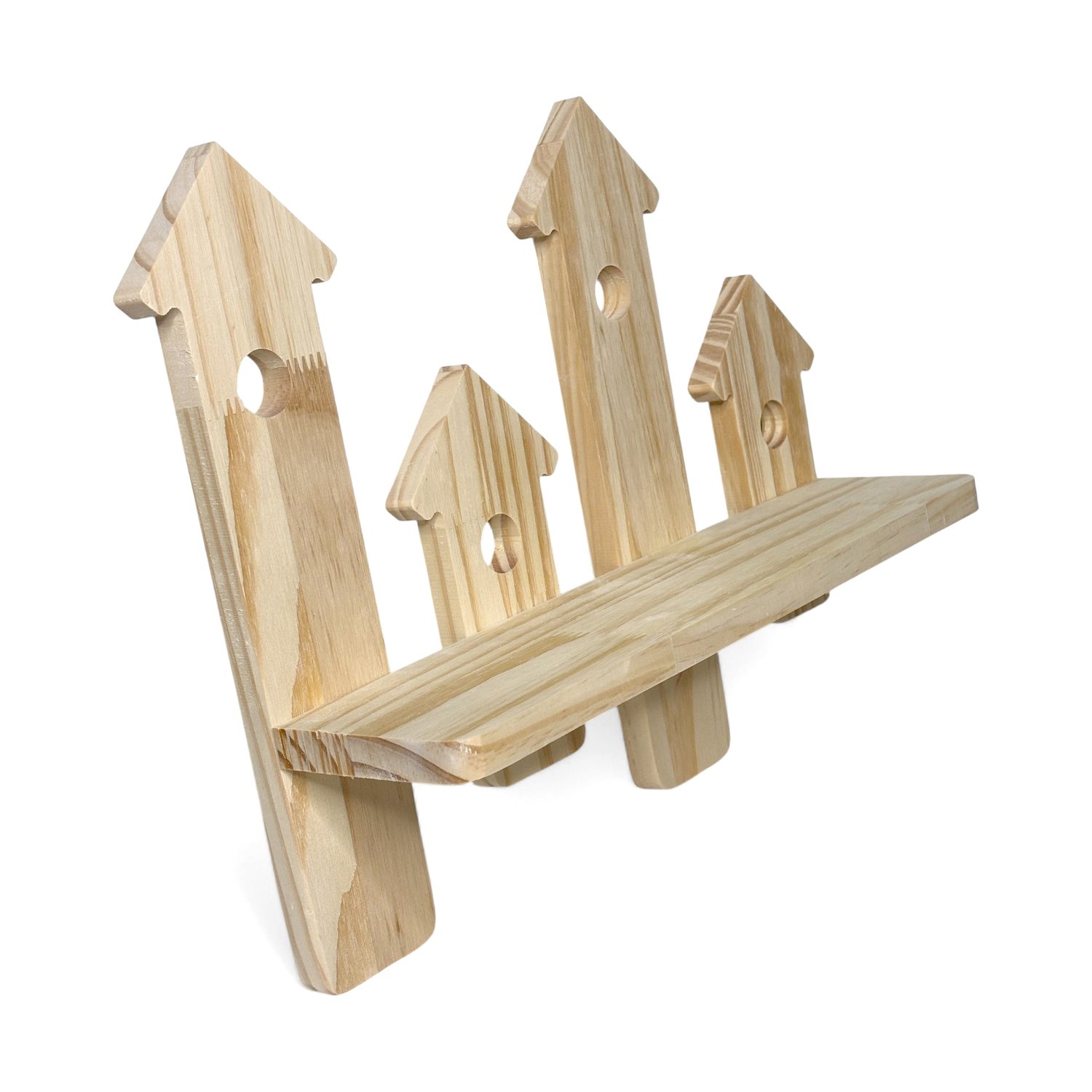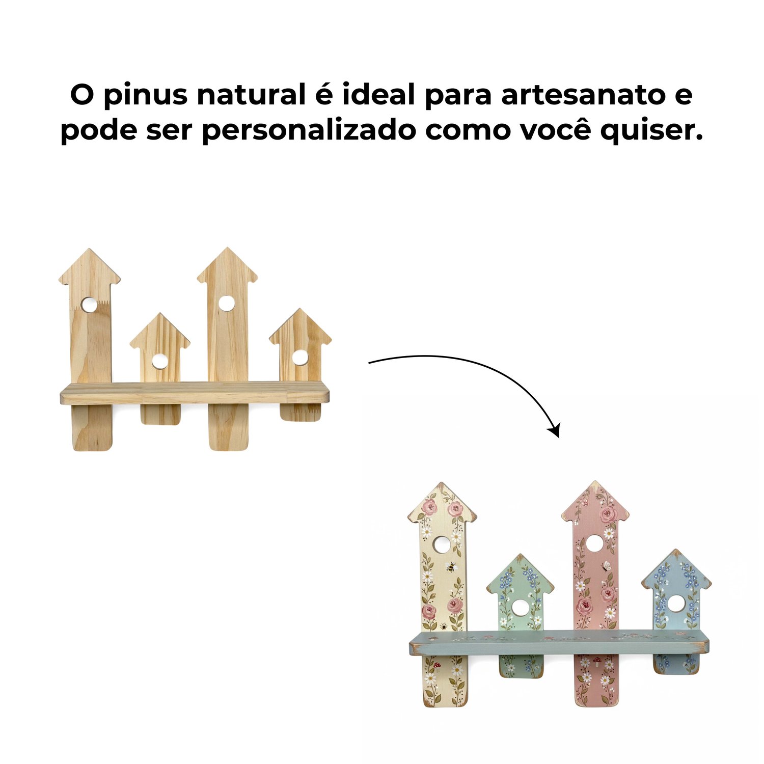 Prateleira de Parede com Casinhas de Passarinhos em Madeira Pinus – Ideal para Artesanato DIY, Decoração de Casa e Jardim