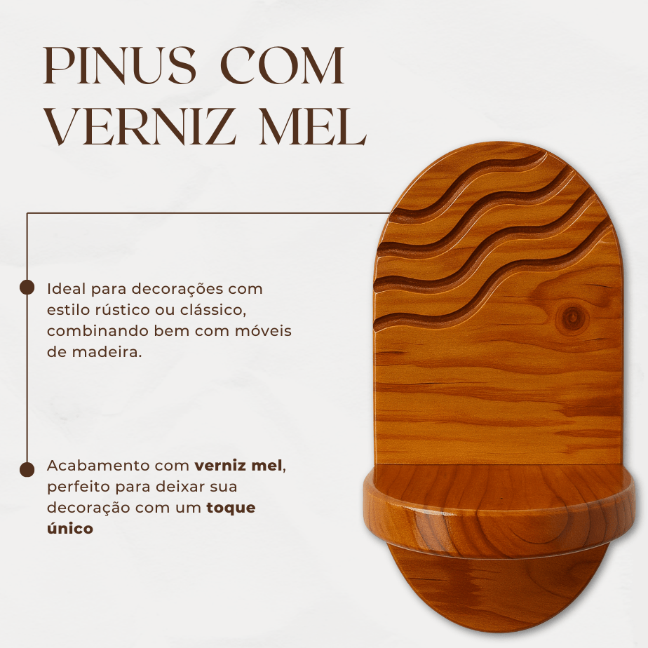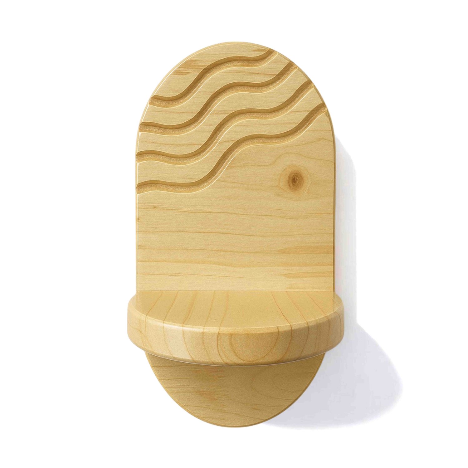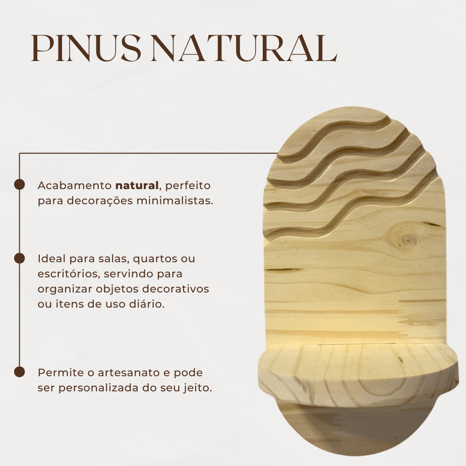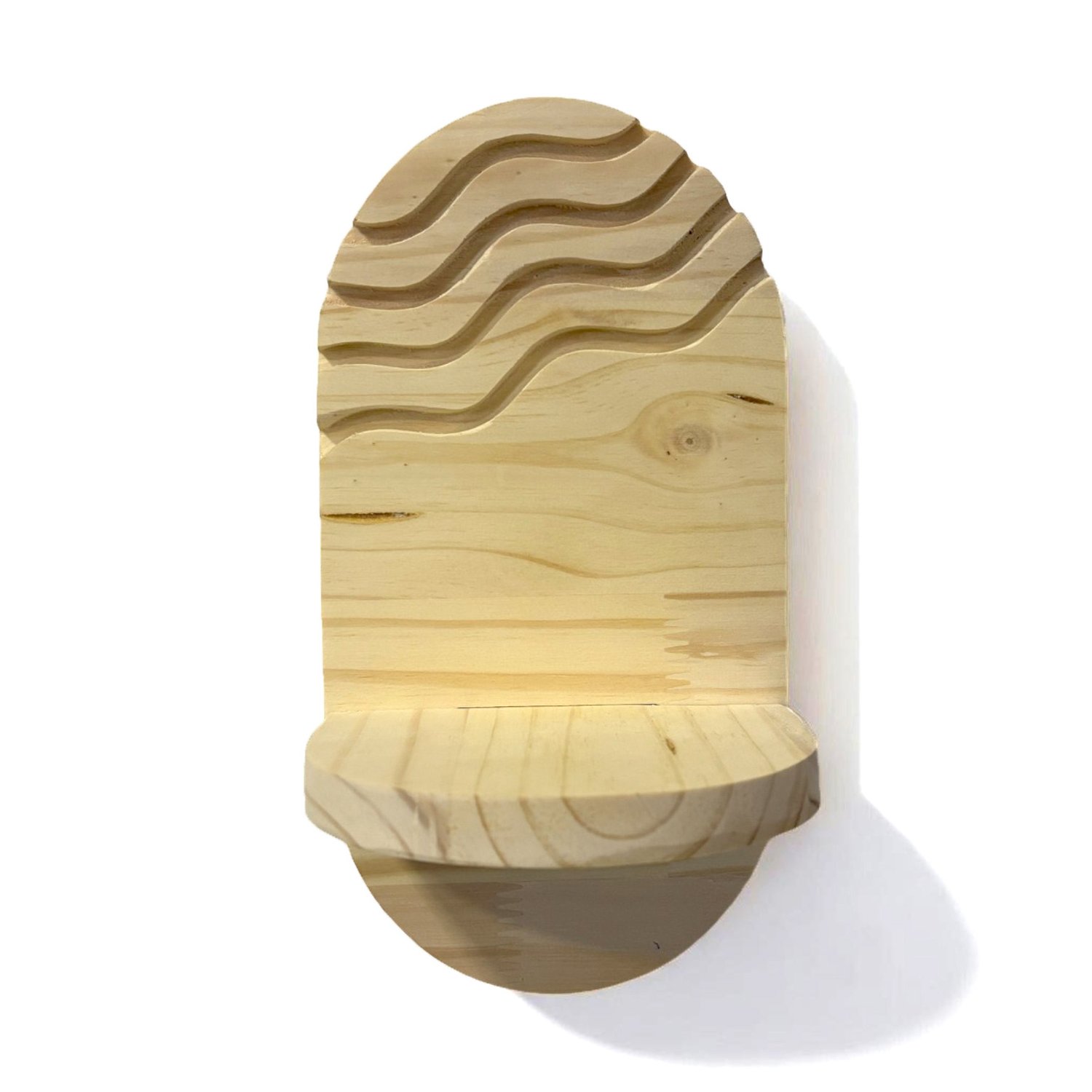 Prateleira Decorativa De Parede Oval Com Frisos Em Madeira Pinus Estilo Japandi