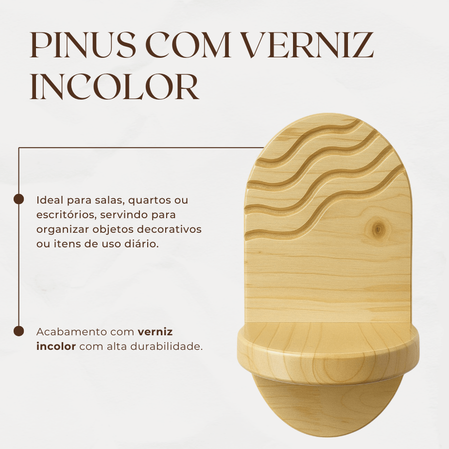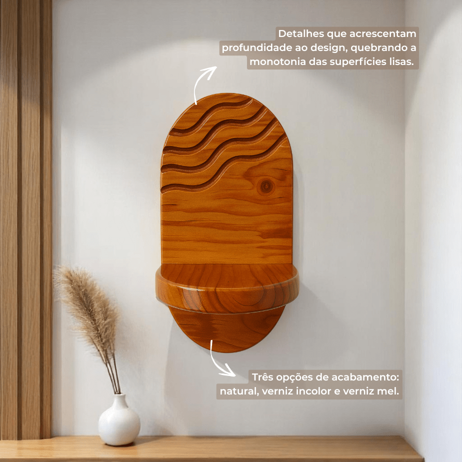 Os frisos orgânicos na peça não apenas trazem leveza visual, mas também criam uma sensação de fluidez e naturalidade, promovendo uma atmosfera serena e equilibrada. Ideal para quem busca sofisticação e tranquilidade, essa prateleira é a escolha perfeita para manter a essência minimalista e acolhedora do estilo Japandi no seu espaço.