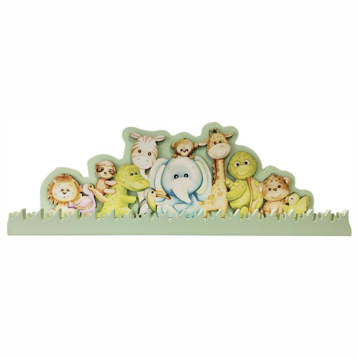 A prateleira é fabricada em mdf 9mm laqueado (pintado) e a parte dos bichinhos é fabricado em mdf 3mm branco com impressão uv de altíssima qualidade e depois colado na prateleira, ficando em alto relevo.