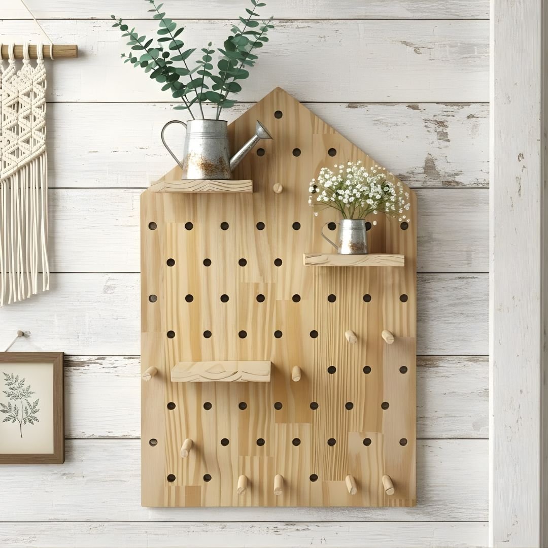Diga adeus à desorganização e dê as boas-vindas a um ambiente que é funcional e esteticamente encantador! A Prateleira Pegboard Casinha em Madeira Pinus é a solução perfeita para quem busca maximizar o espaço vertical com um toque de design escandinavo e lúdico. Cansado de prateleiras fixas que limitam sua criatividade? Nosso Pegboard Casinha resolve o problema da falta de flexibilidade e da bagunça, transformando paredes vazias em um painel de organização totalmente customizável. O formato exclusivo de Casinha não é apenas charmoso; ele serve como um ponto focal acolhedor em qualquer ambiente, de quartos infantis, a escritórios compactos (home office), ou até mesmo para organizar chaves e bolsas na entrada. Feito com Madeira Pinus de Reflorestamento, nosso painel é sinônimo de qualidade e sustentabilidade, com um acabamento lixado que valoriza o tom natural e claro da madeira. A principal vantagem é a modularidade total: você recebe um kit completo com 16 Pinos e 3 Prateleiras de 13,5cm de profundidade. Você pode mudar a disposição dos itens em segundos, sem precisar de ferramentas ou novos furos na parede, adaptando o painel à sua necessidade sempre que quiser. É a união perfeita entre design exclusivo, organização inteligente e a qualidade duradoura da madeira Pinus.