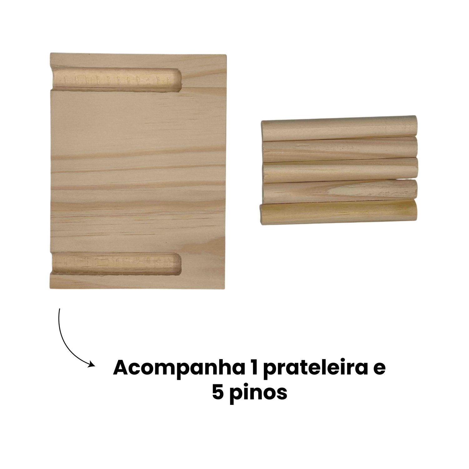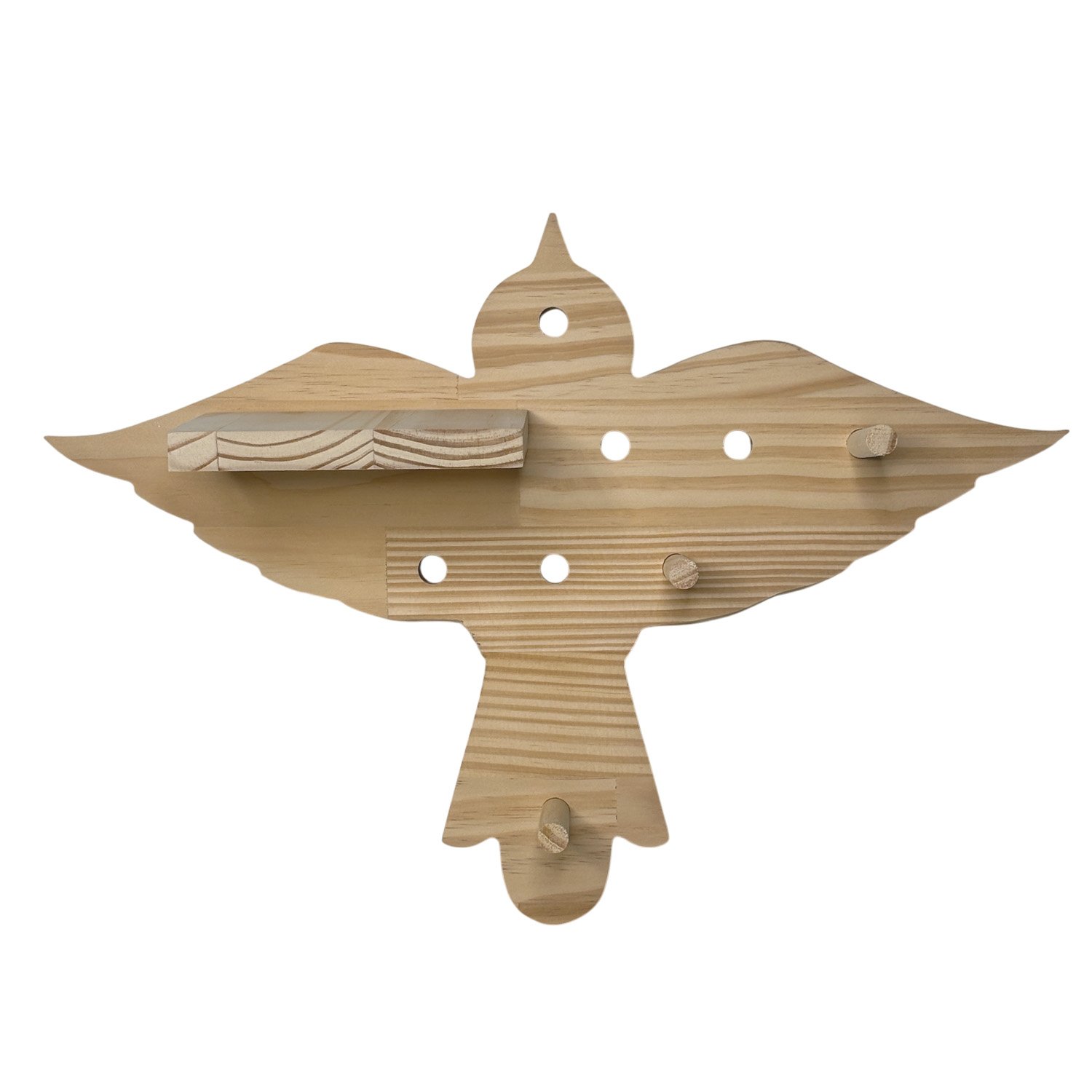 Prateleira Pegboard Pássaro Com 5 Pinos e 1 Prateleira 13,5cm Em Madeira Pinus