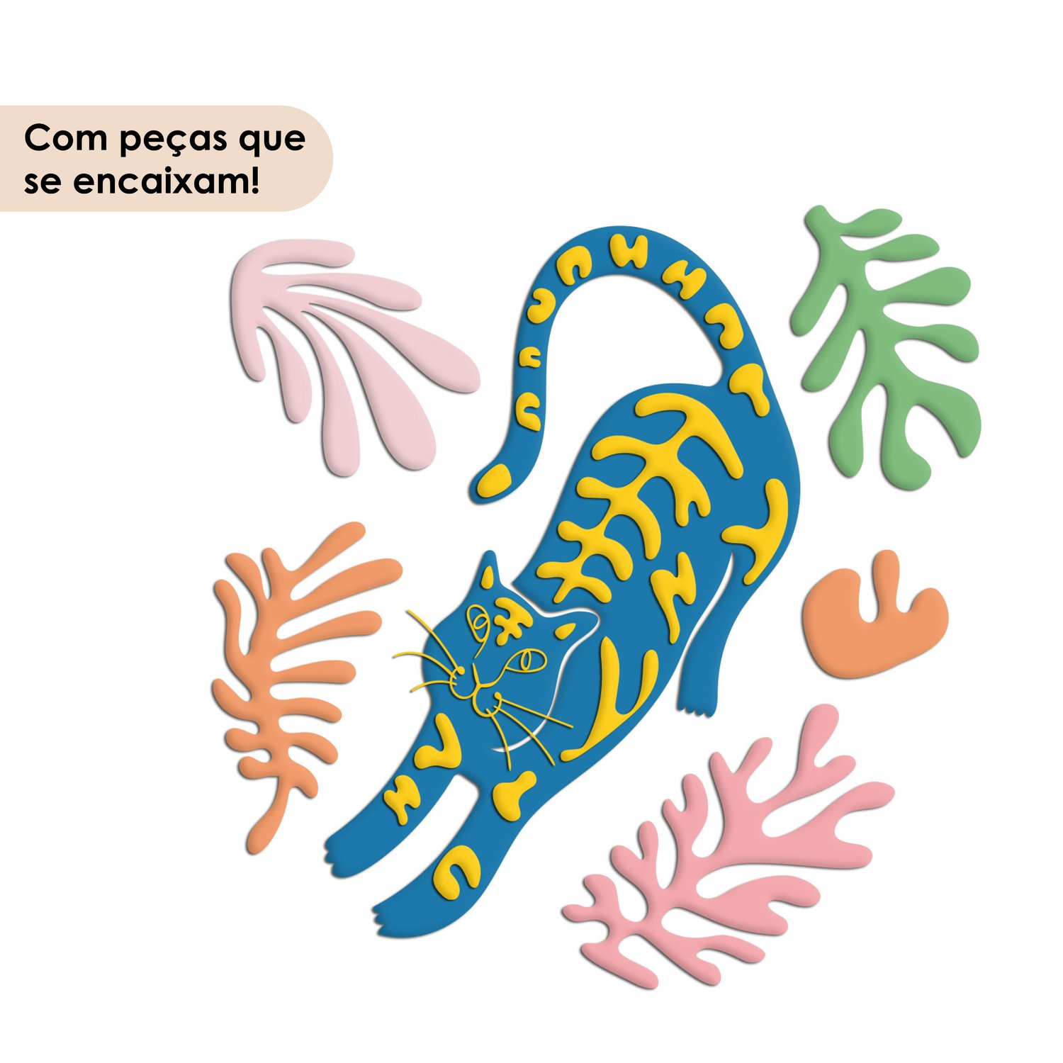 Neste quadro, a essência lúdica do gato é capturada de maneira magistral, refletindo o estilo de Matisse de que a arte deve ser uma celebração da vida. As pinceladas dinâmicas e a disposição harmoniosa das cores saturadas trazem movimento e energia à obra. Conhecido por ser um dos pioneiros do Fauvismo, Matisse revolucionou a arte com seu uso ousado de cores intensas e formas simplificadas, que buscavam não apenas representar a realidade, mas evocar emoções profundas.Essa peça única não só transforma qualquer ambiente, mas também homenageia o legado duradouro de Matisse, que continua a inspirar artistas e amantes da arte ao redor do mundo. Leve para casa um pedaço dessa genialidade e deixe a cor e a emoção do estilo Matisse invadirem o seu espaço!