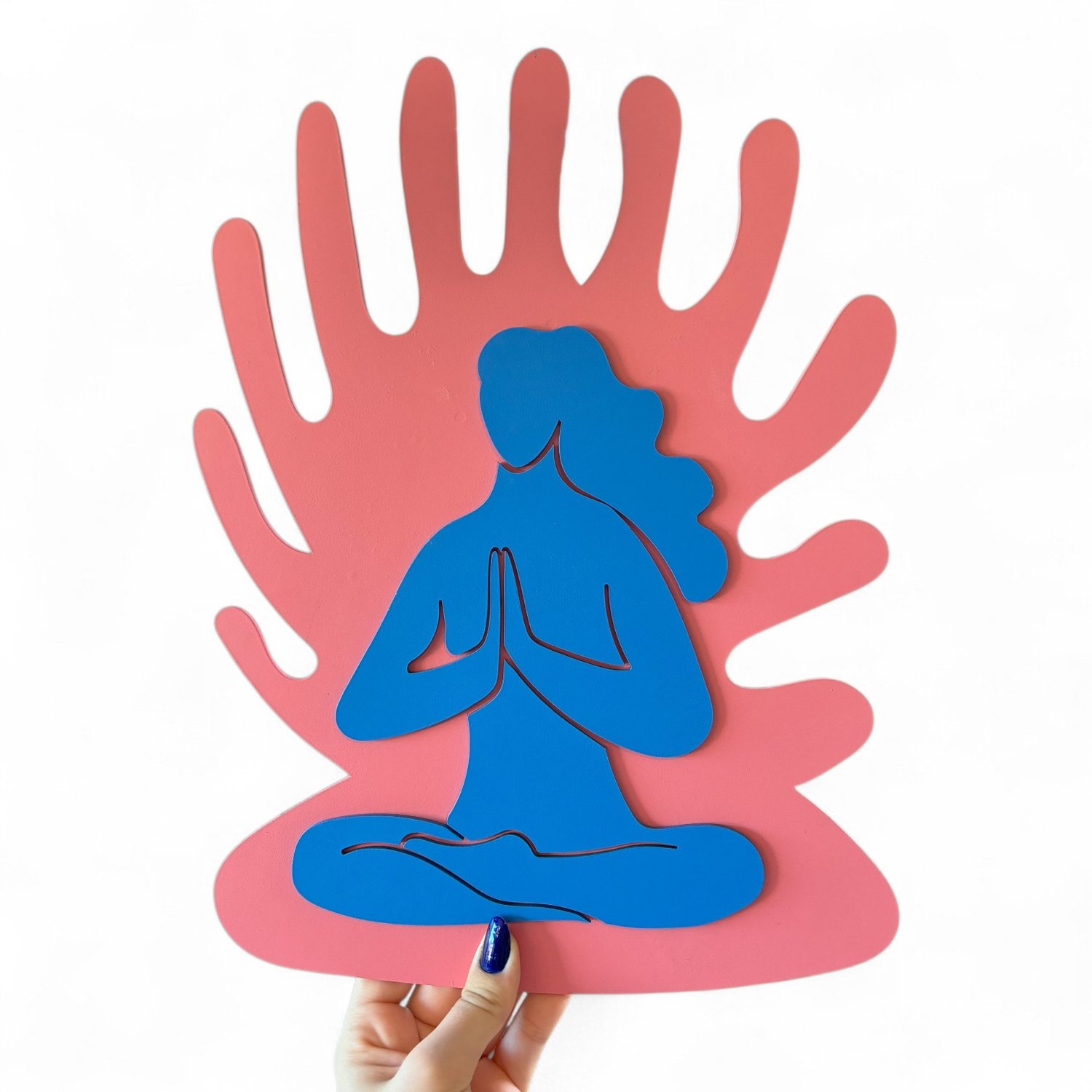 Neste quadro, a figura meditativa reflete serenidade e introspecção, enquanto as formas orgânicas ao seu redor evocam a conexão entre a meditação e a natureza. Com suas pinceladas fluidas e cores vibrantes, a peça promove uma atmosfera de harmonia e beleza. É inspirada no vibrante estilo de Henri Matisse, um dos principais representantes do Fauvismo, revolucionou a arte moderna com sua abordagem ousada ao uso de cores saturadas e formas simplificadas. Sua obra busca não apenas representar a realidade, mas evocar emoções profundas, transformando a percepção do espectador. O Fauvismo, que emergiu no início do século XX, destacava o uso expressivo da cor como elemento central, rompendo com as convenções realistas da pintura. Essa liberdade de expressão permitiu que Matisse explorasse novas combinações cromáticas, criando obras que transmitem uma sensação de alegria e vivacidade.