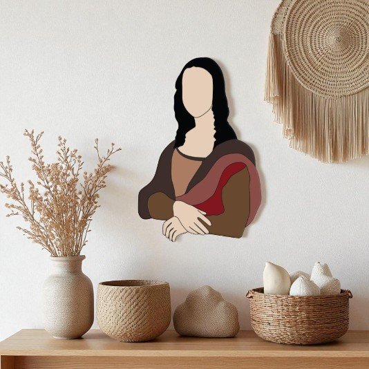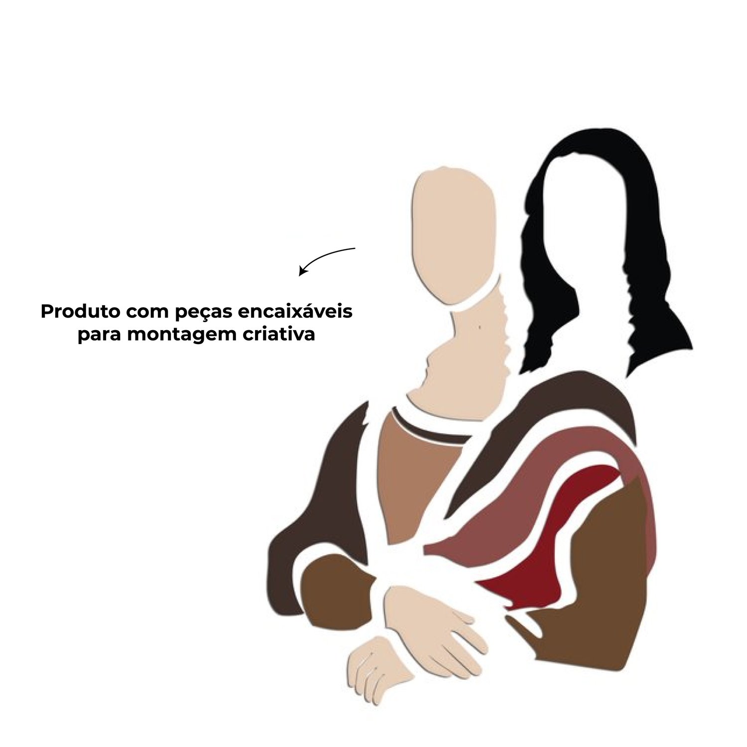O quadro é inspirado na obra "Mona Lisa", pintada por Leonardo da Vinci entre 1503 e 1506, é uma das obras mais famosas do mundo. Acredita-se que tenha sido encomendada por Francesco del Giocondo em homenagem à sua esposa, Lisa Gherardini. Utilizando a técnica do óleo e o sfumato, Leonardo criou uma figura com uma expressão enigmática, cujo sorriso intrigante tem fascinado espectadores por séculos. A obra ganhou notoriedade ainda maior após ser roubada do Museu do Louvre em 1911 e recuperada em 1913, consolidando seu status de ícone cultural. Atualmente, a "Mona Lisa" é exibida no Louvre e continua a atrair milhões de visitantes, simbolizando a beleza e o mistério, além de refletir a genialidade de Leonardo da Vinci.