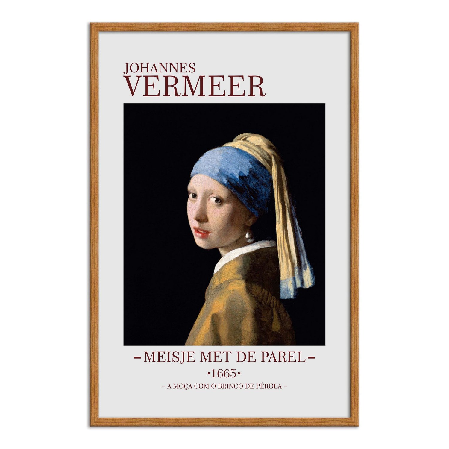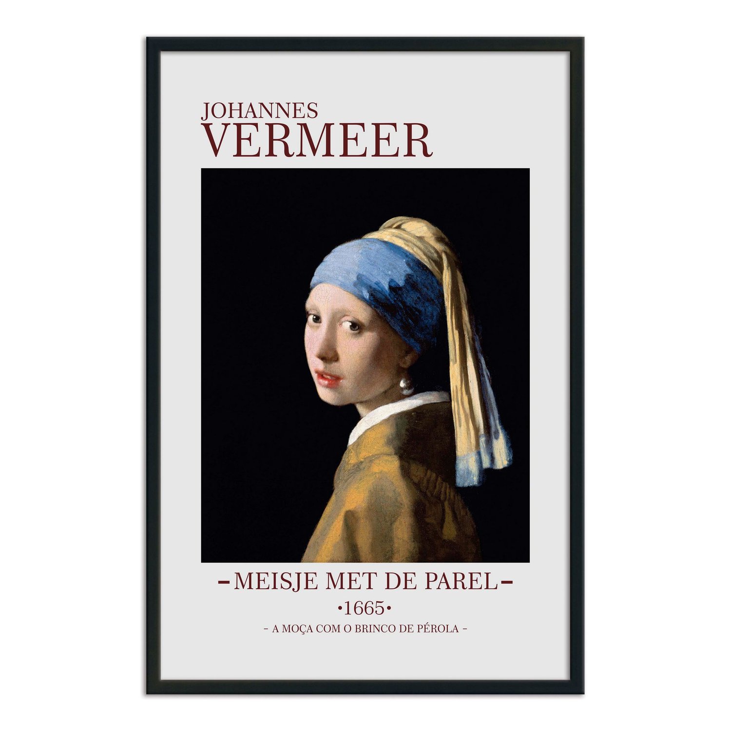 A obra “Moça com Brinco de Pérola” é com certeza a mais famosa de Vermeer, mas, ao contrário do que muitos pensam, ela não é um retrato, e sim um tronie, uma pintura de uma figura imaginária. Neste quadro percebemos porque Johannes é chamado de “O mestre da luz”, já que, se olhar com atenção, a moça não possui sobrancelhas e nem a ponte do nariz, mas com apenas algumas manchas, Vermeer nos faz ver o que ele quer. Atualmente, o quadro está exposto na Galeria Real de Pinturas Mauritshuis em Haia, Países Baixos.
