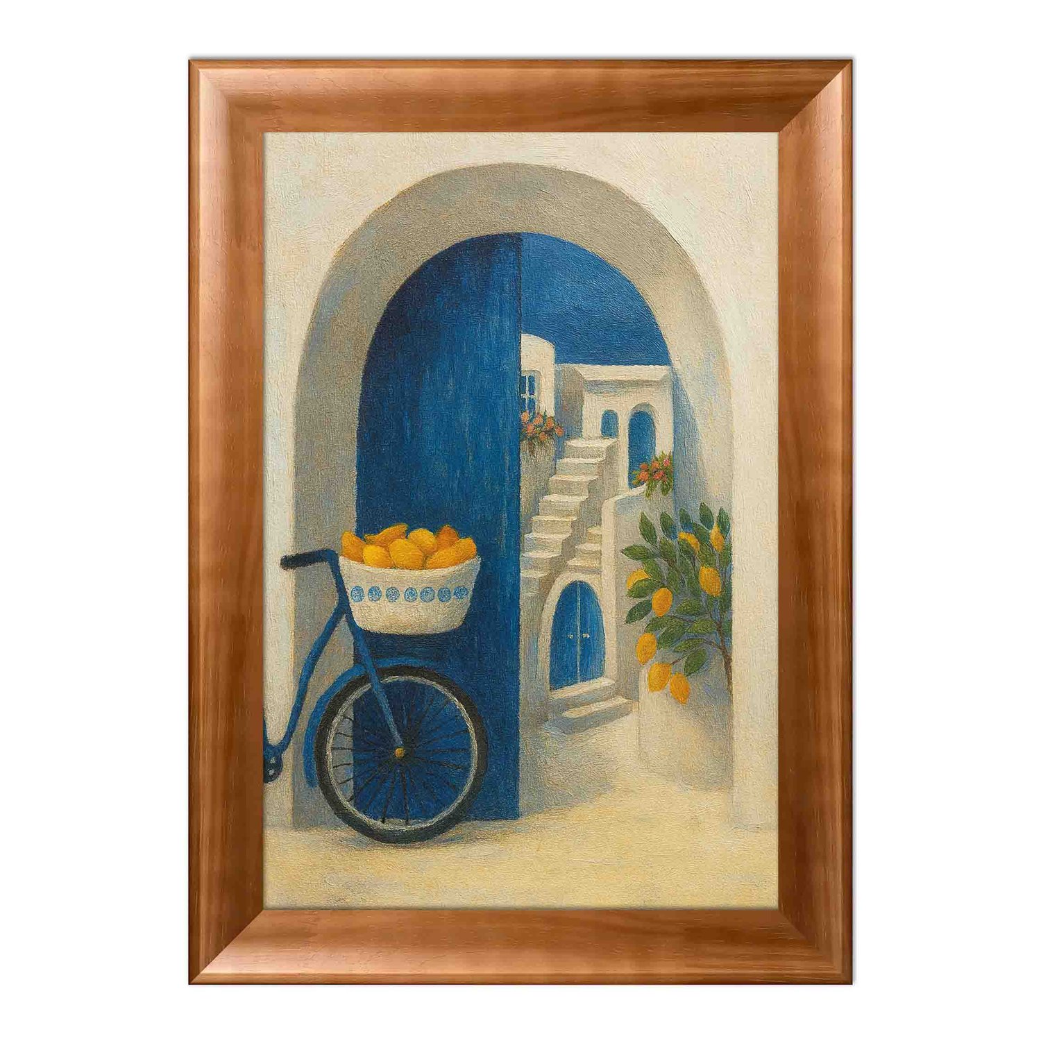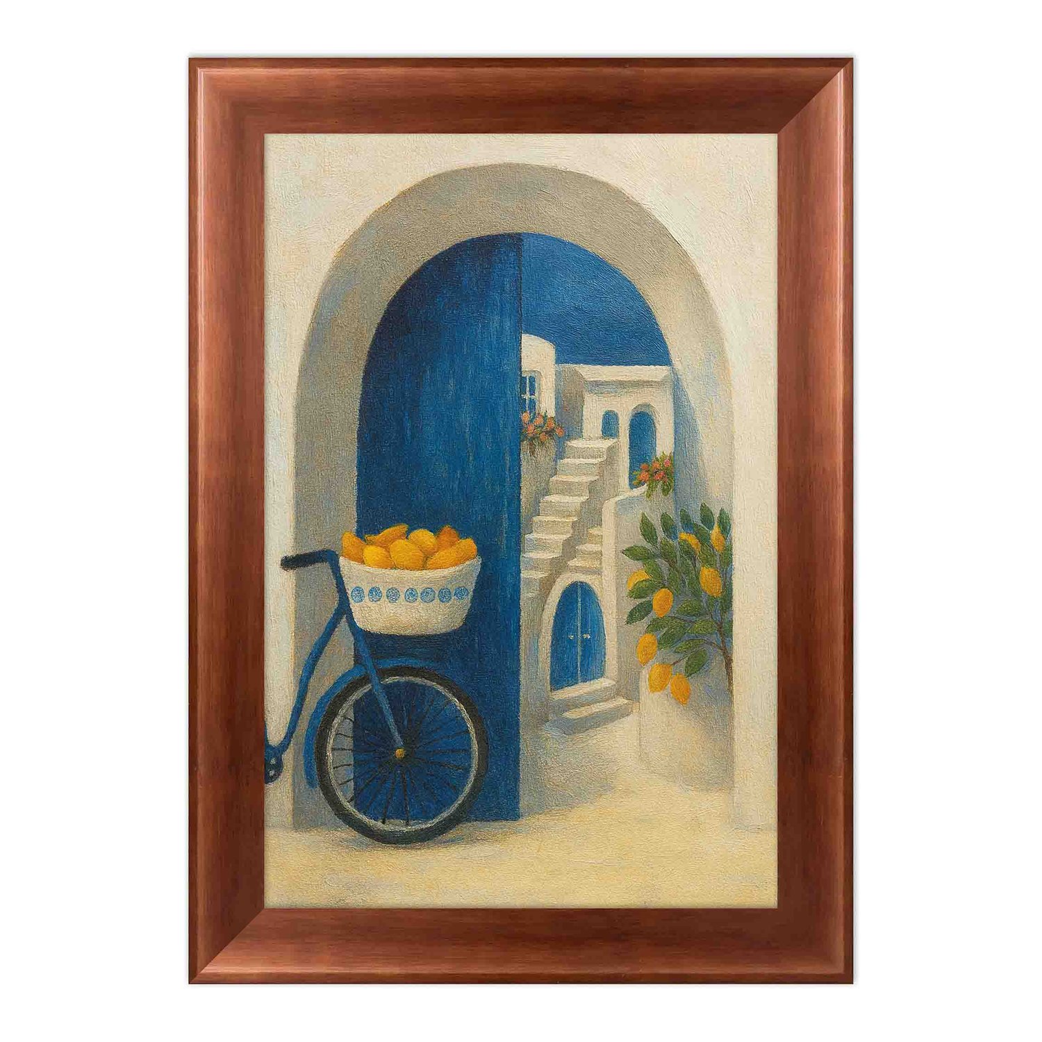 Traga energia, cor e movimento ao seu ambiente com o Quadro Decorativo Arco Ciclático e Portal Azul Bicicleta com Limões em Contraste com a Escadaria Branca. Uma obra que combina alegria mediterrânea, charme artesanal e composição fotográfica reinterpretada em estilo pictórico, perfeita para quem busca decoração vibrante, inspiradora e cheia de personalidade. A cena apresenta uma bicicleta carregando limões frescos, posicionada diante de um arco azul e escadaria branca, evocando a atmosfera ensolarada e descontraída das vielas costeiras do Mediterrâneo. O contraste entre o amarelo vivo dos limões e o azul profundo do portal cria impacto visual e sensação de frescor, enquanto os elementos arquitetônicos conferem profundidade e equilíbrio à composição. Produzido com impressão de alta qualidade e acabamento refinado, o quadro garante cores intensas, nitidez e durabilidade, tornando-se um ponto de destaque em cozinhas, salas de jantar, salas de estar, varandas, cafeterias, bistrôs e espaços gourmet. Seu estilo único combina a leveza pop com inspiração clássica mediterrânea, criando uma atmosfera acolhedora e alegre. Versátil e charmoso, harmoniza-se com móveis claros, paletas neutras ou detalhes coloridos, acrescentando personalidade e frescor a qualquer ambiente. Uma escolha perfeita para quem deseja transformar paredes em janelas para o Mediterrâneo, celebrando cores, luz e o prazer da vida ao ar livre.