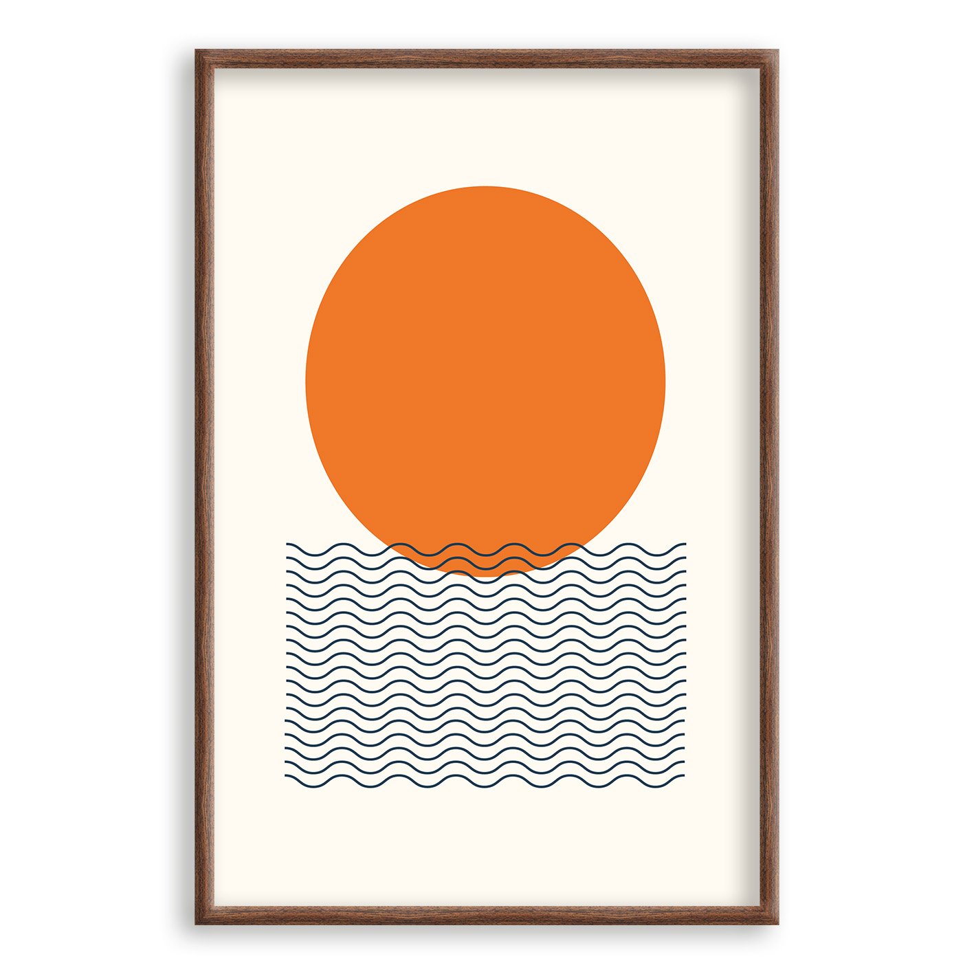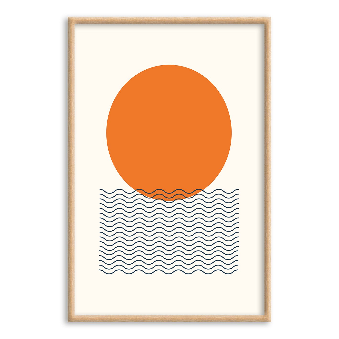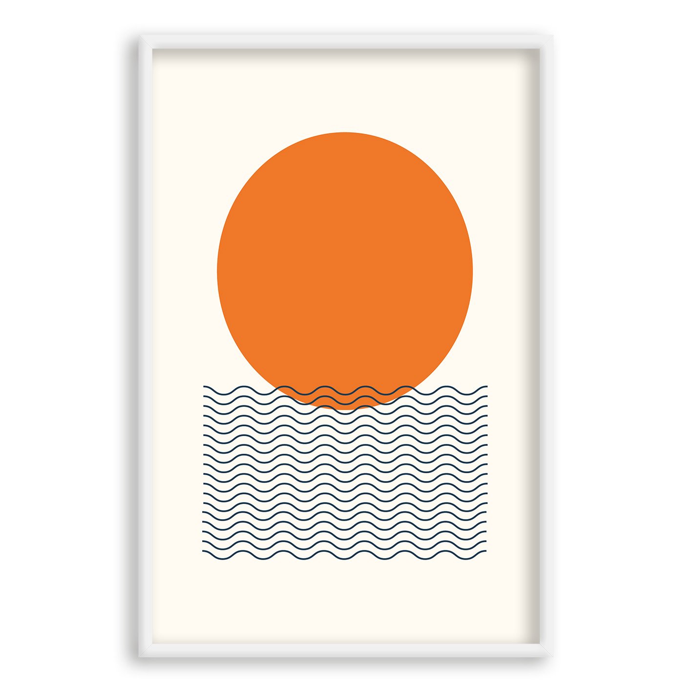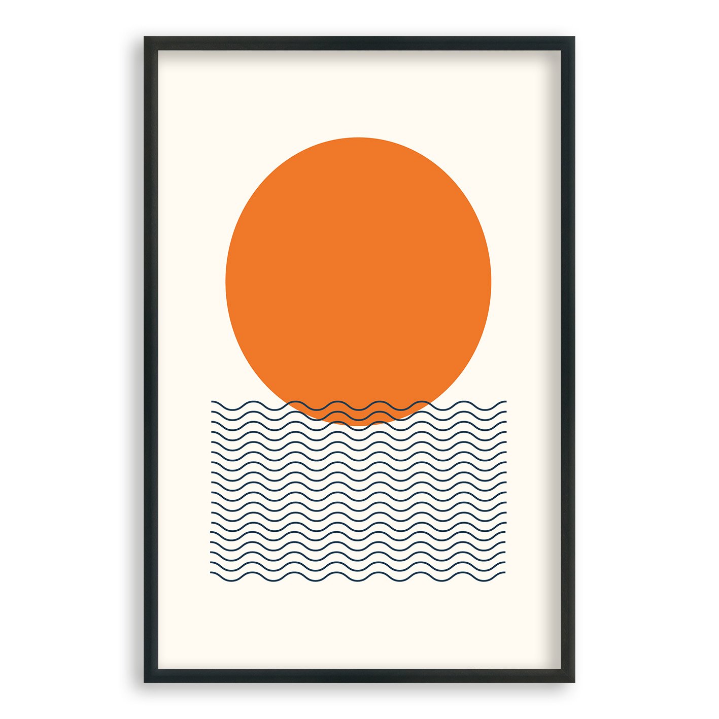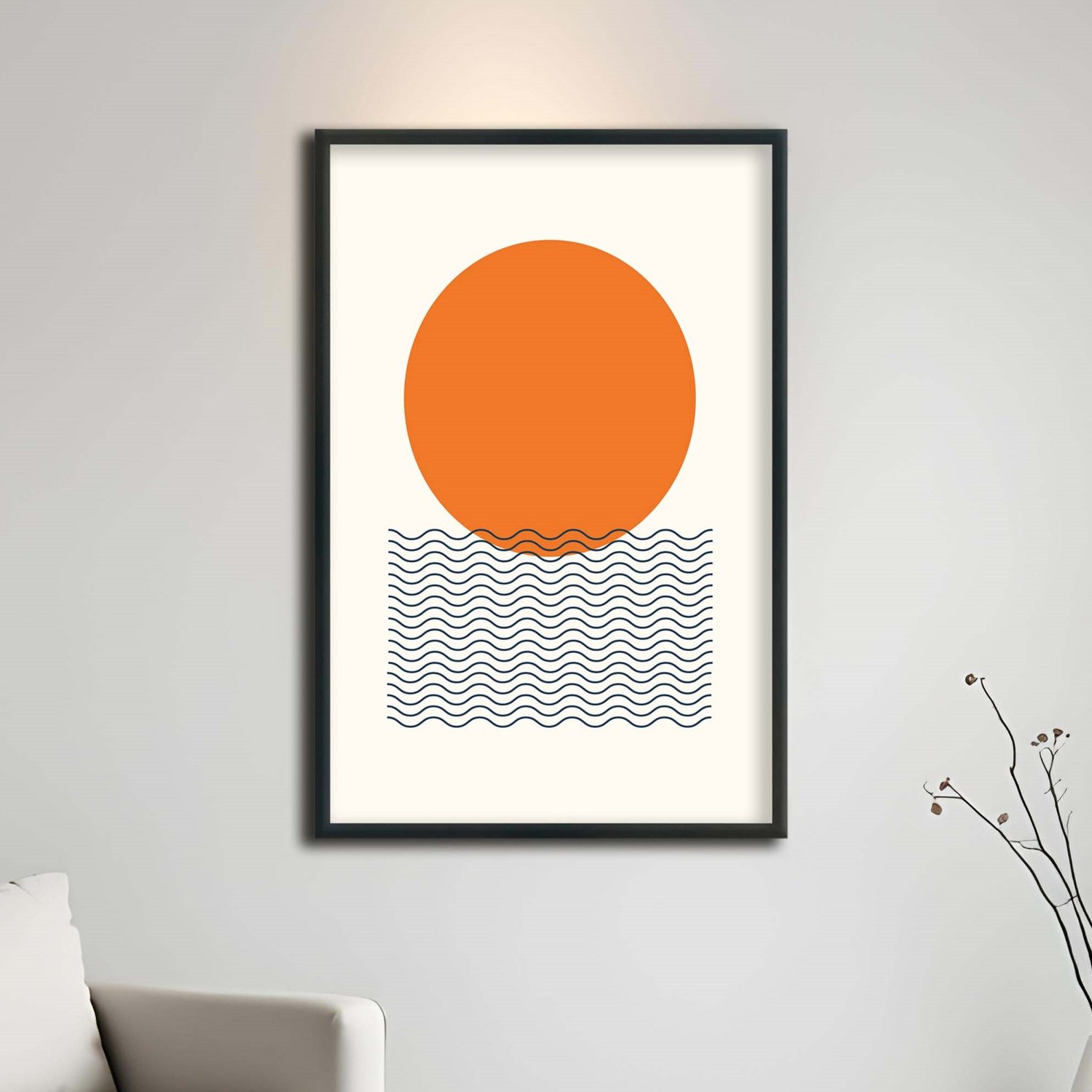 Quadro Decorativo Bauhaus Círculo Laranja E Ondas