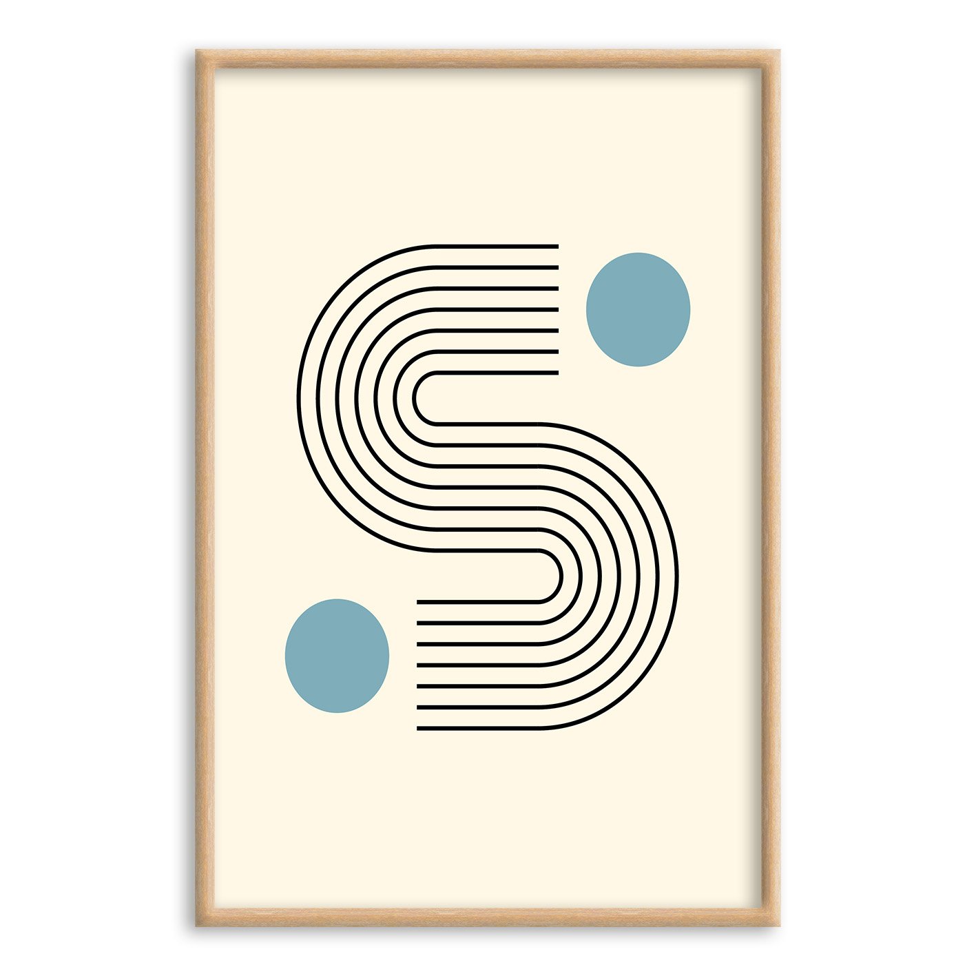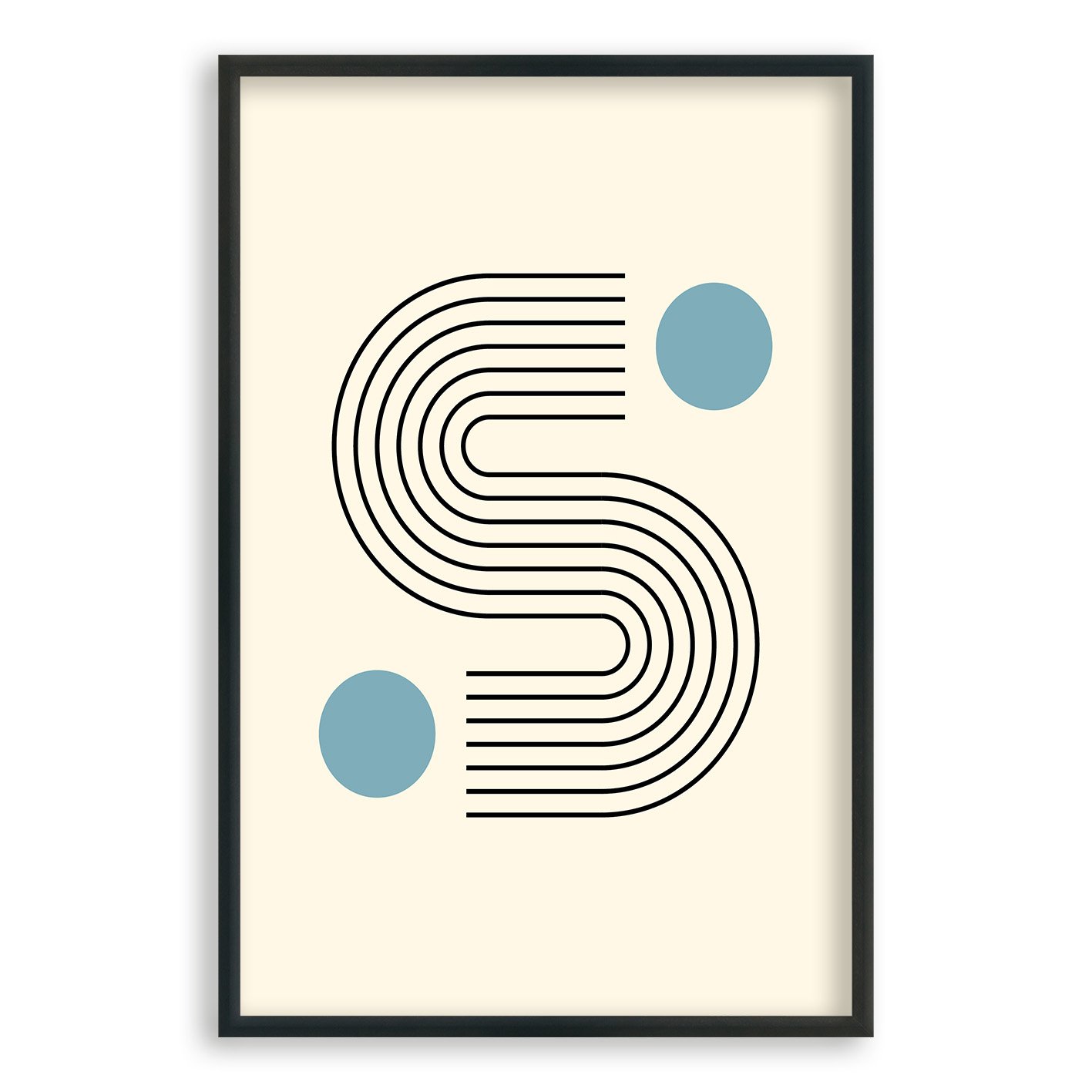 Quadro Decorativo Bauhaus Curvas E Círculos Azuis
