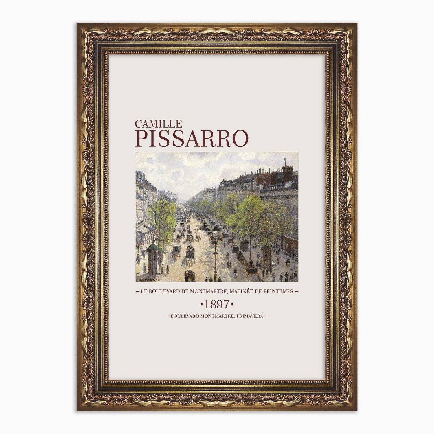 Esta obra retrata a rua Boulevard Montmartre em uma manhã de primavera. Ela faz parte da coleção de 14 obras da rua Montmartre, que acabaram sendo todas vendidas separadamente.