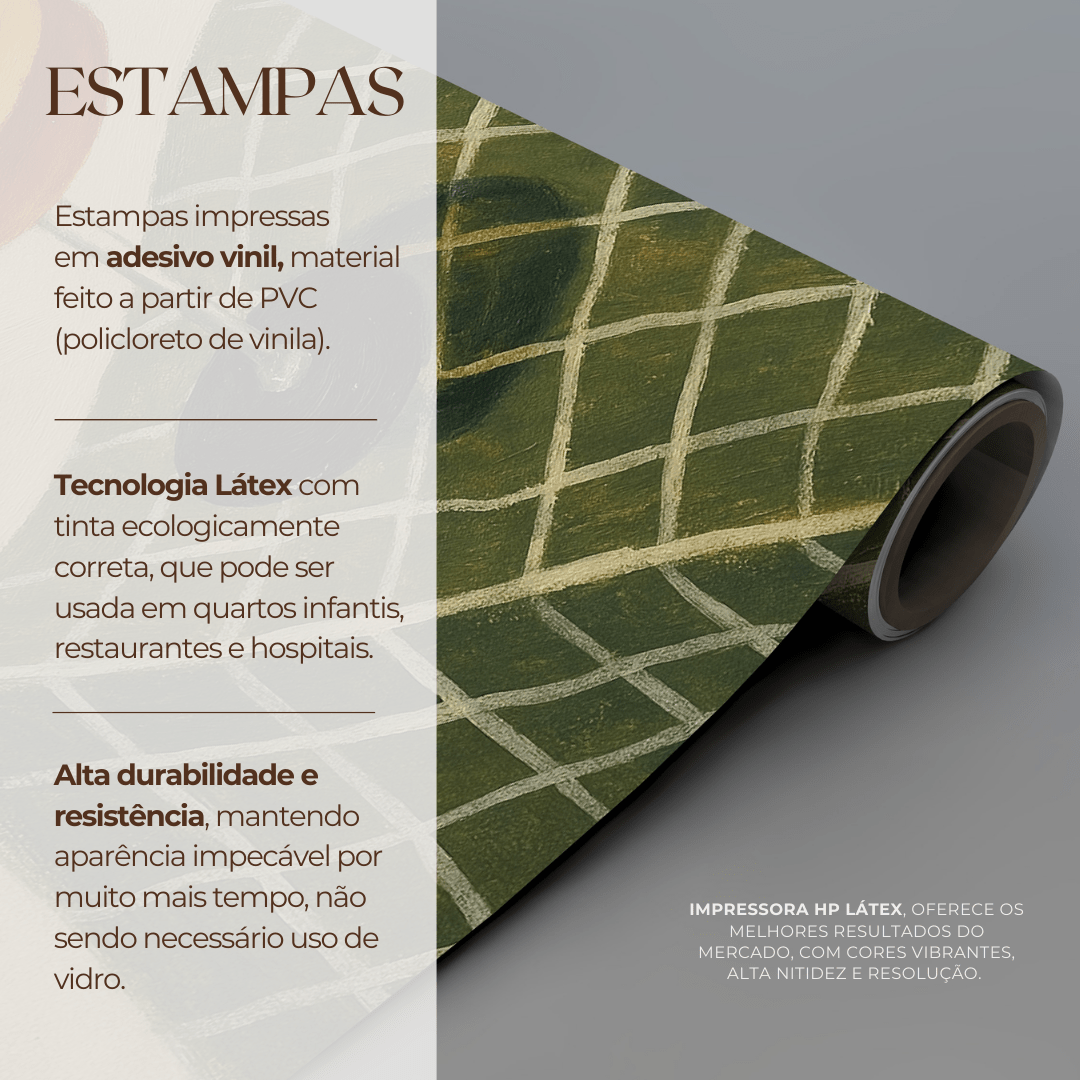 Material: Estampas em adesivo vinil, fundo em mdf 3mm, moldura natural envernizada;