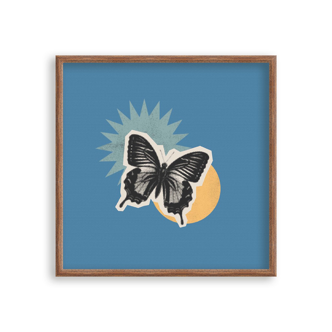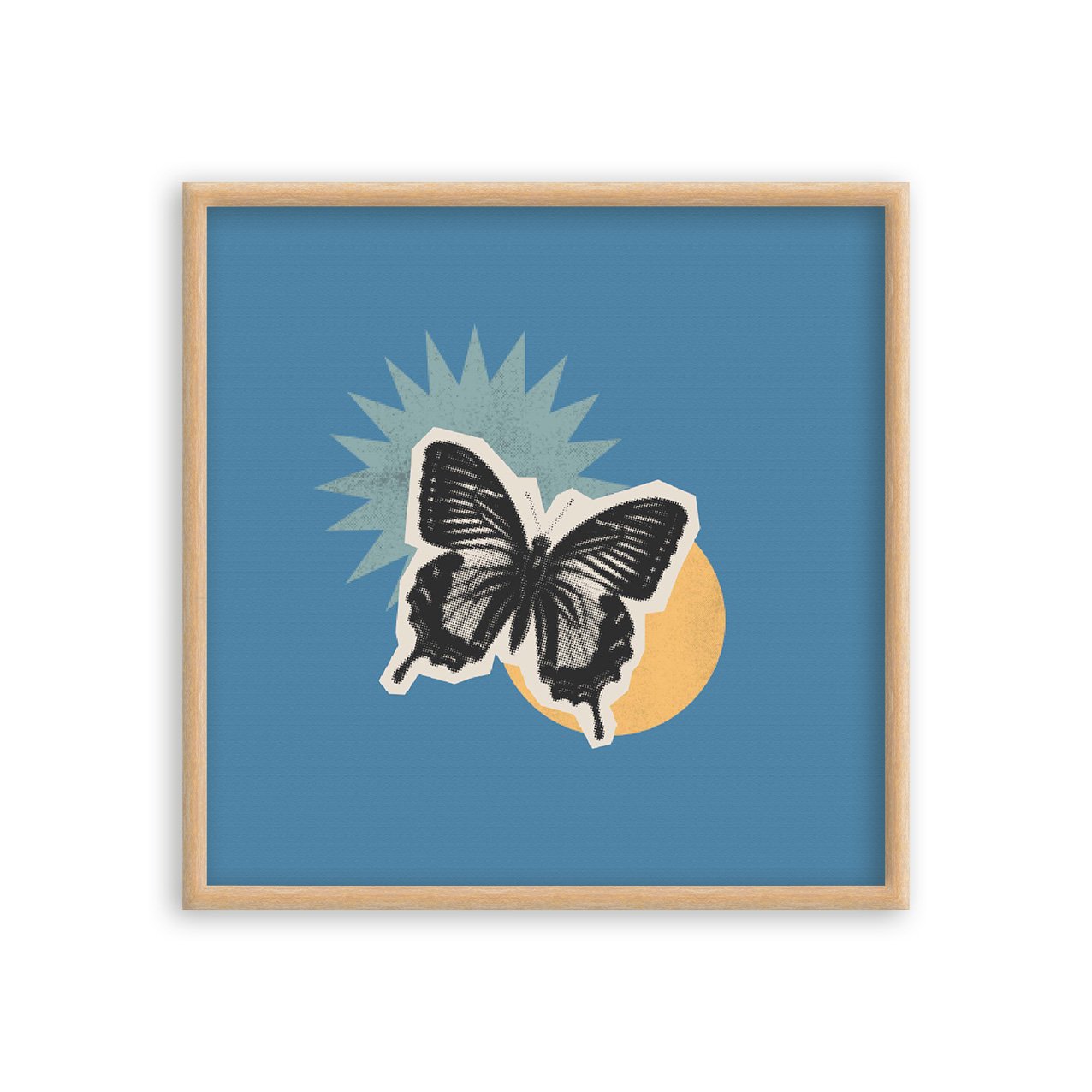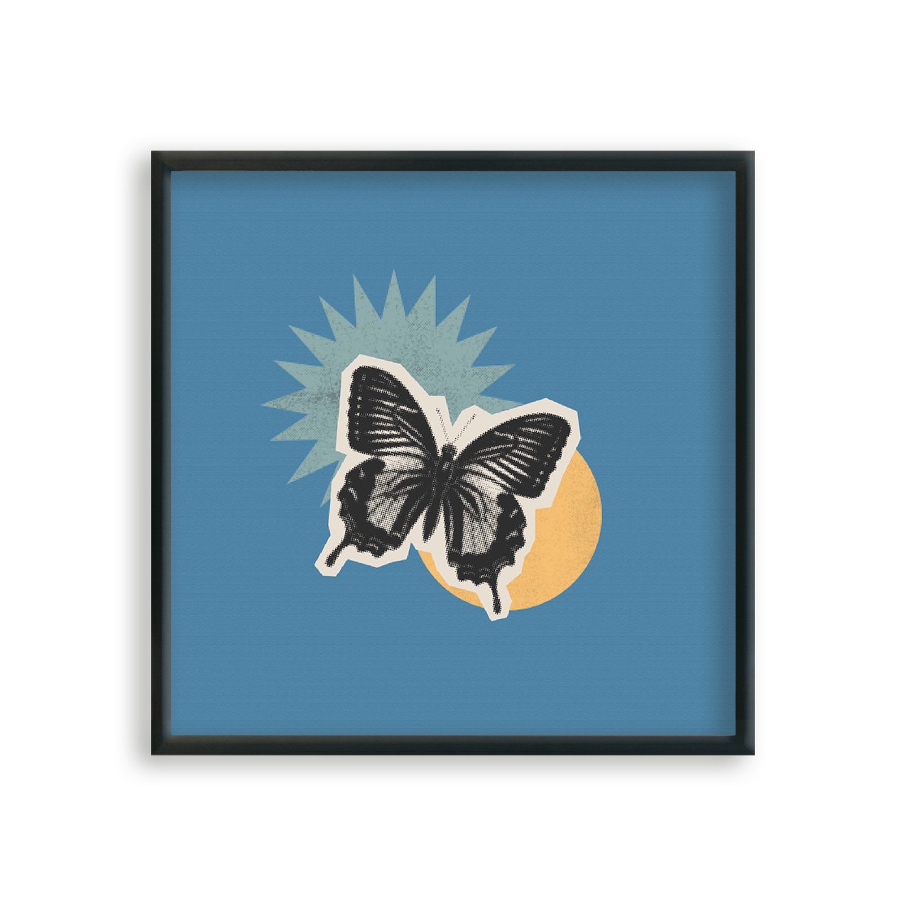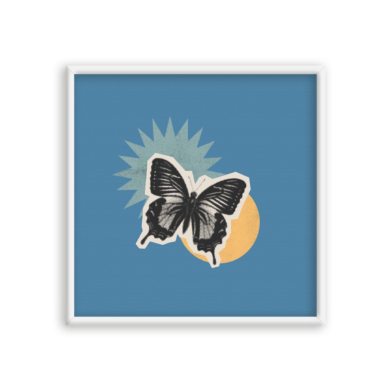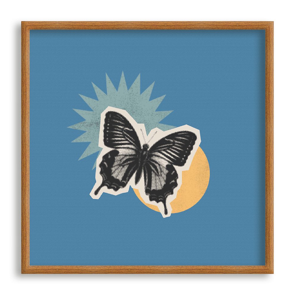 Quadro Decorativo Colagem Abstrata Com Borboleta E Formas Geométricas