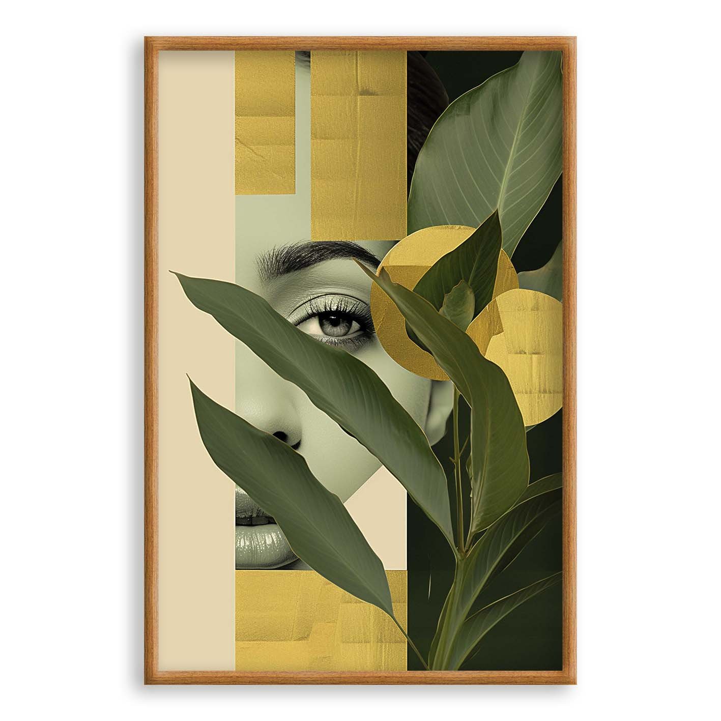 Quadro Decorativo Colagem Abstrata Folhas Verdes