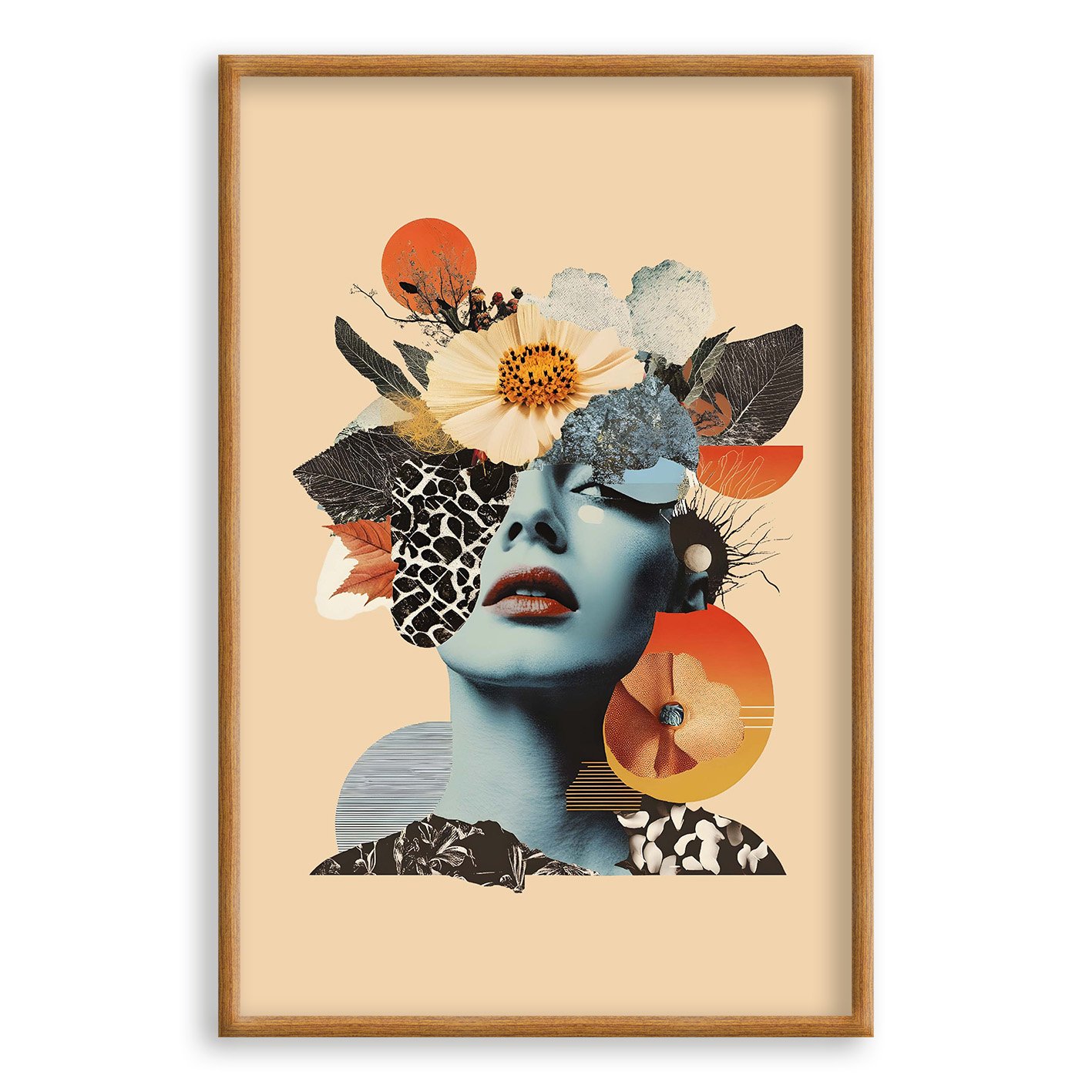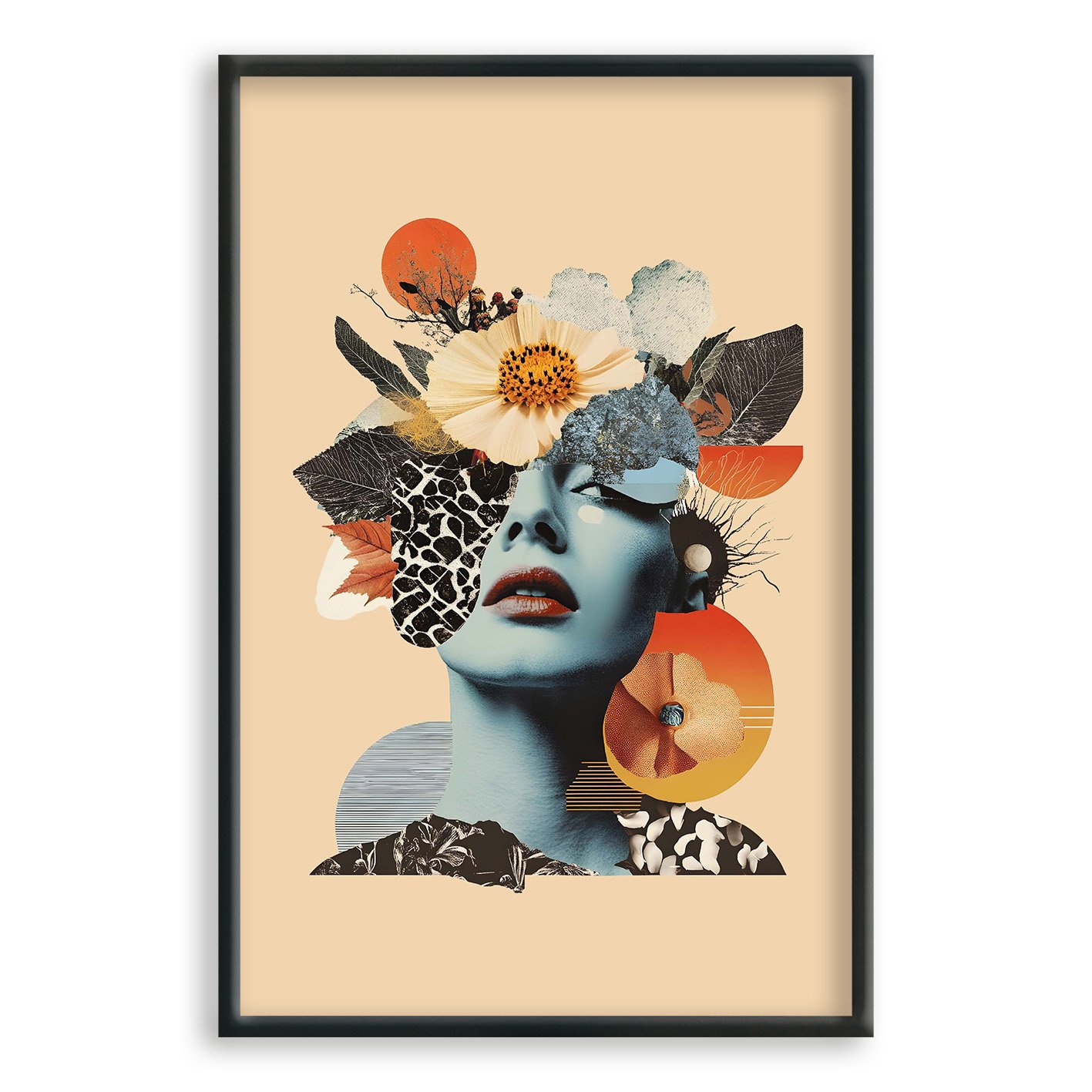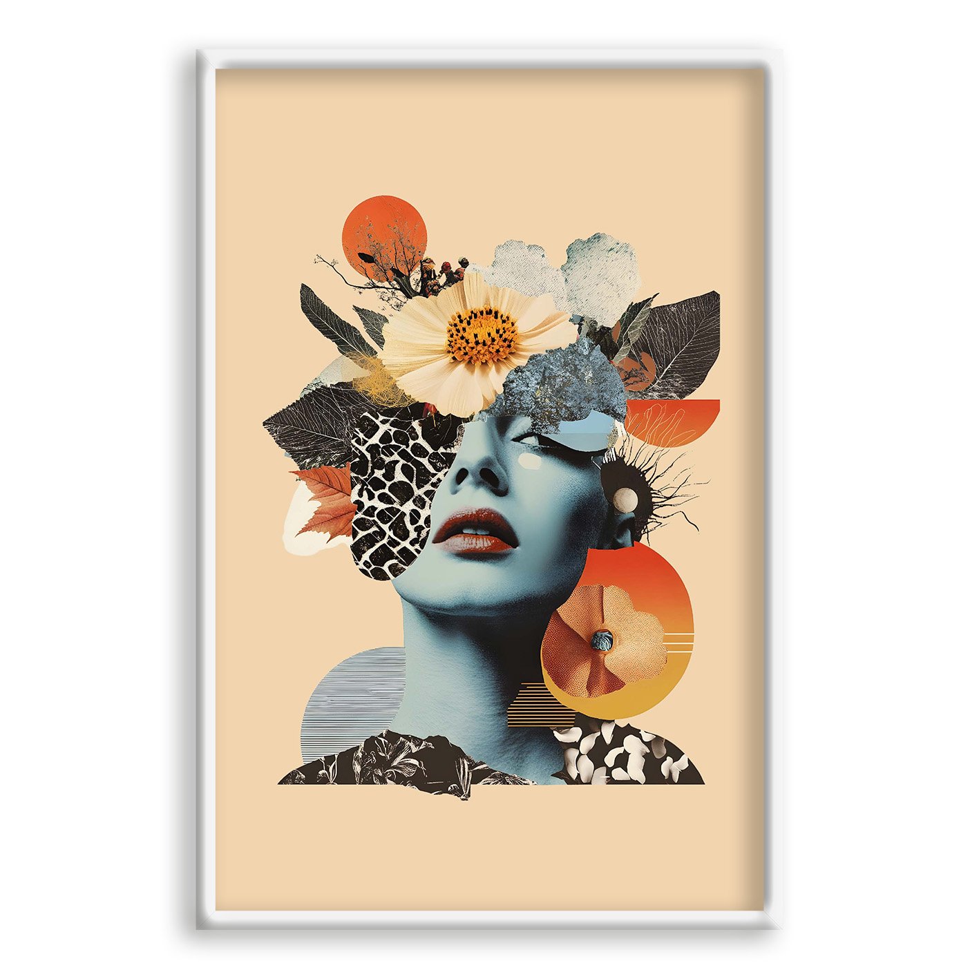 Quadro Decorativo Colagem Abstrata Mulher Com Flores