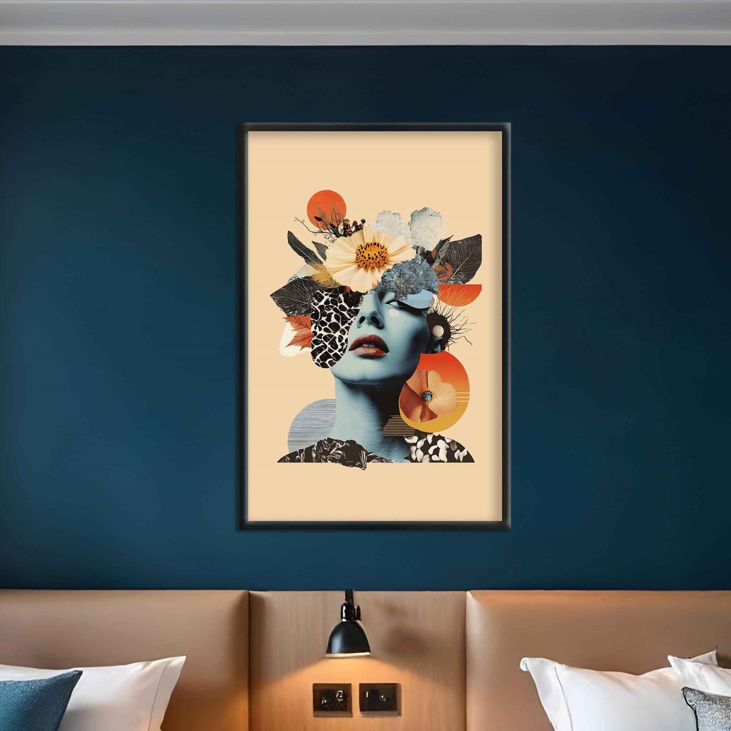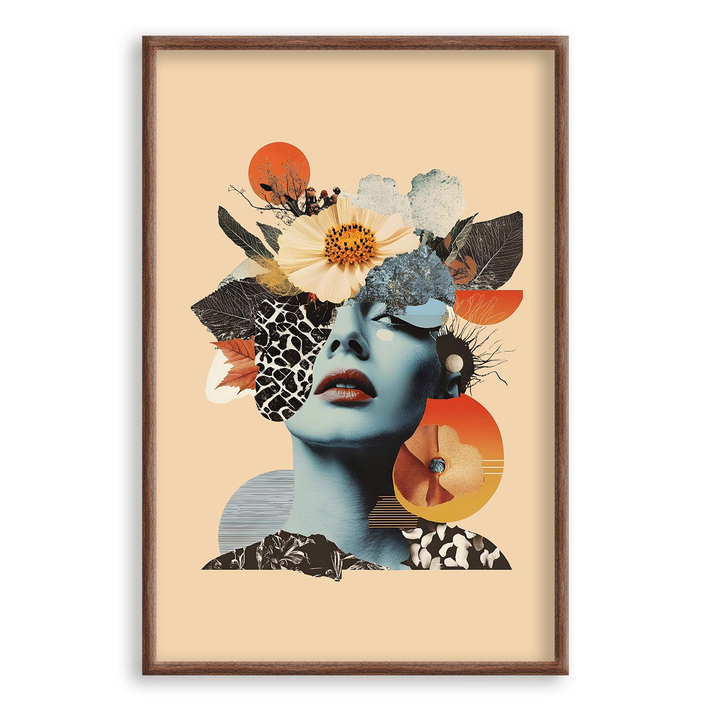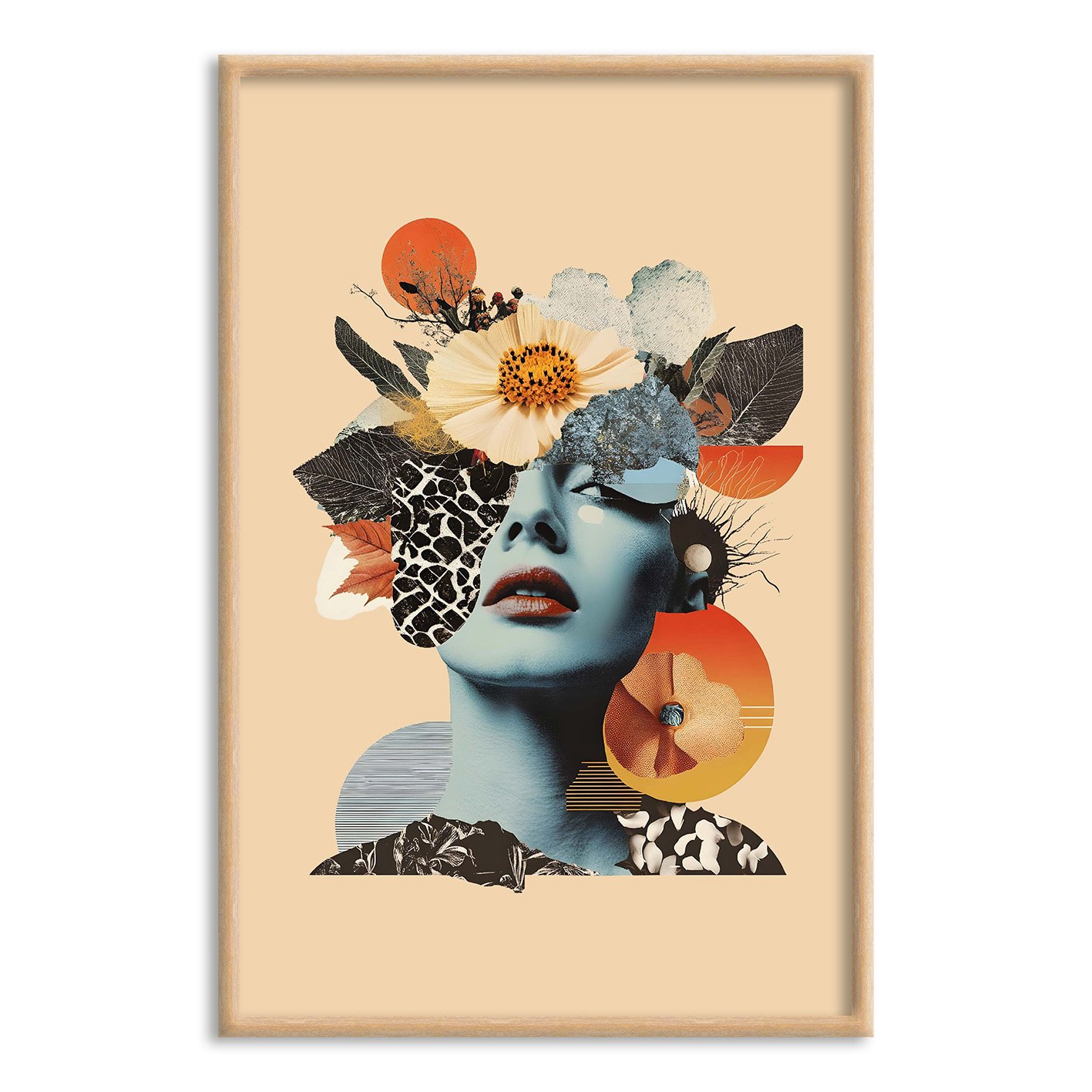 Quadro Decorativo Colagem Abstrata Mulher Com Flores
