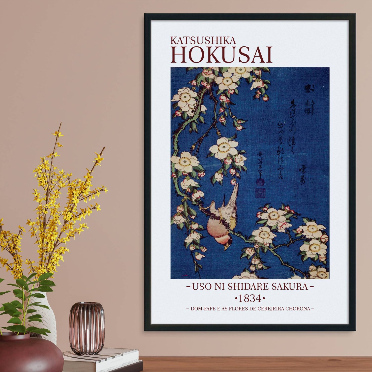 Na obra, Hokusai concilia a beleza da natureza com a arte japonesa, utilizando uma paleta de cores suaves e detalhadas, sendo conhecido pela sua capacidade de captar os simbolismos da paisagem japonesa e da vida diária. As flores de cerejeira na cultura japonesa significam a beleza efêmera da vida. Então, esta obra não retrata apenas a natureza, mas também a reflexão sobre a beleza fugaz que caracteriza a existência.