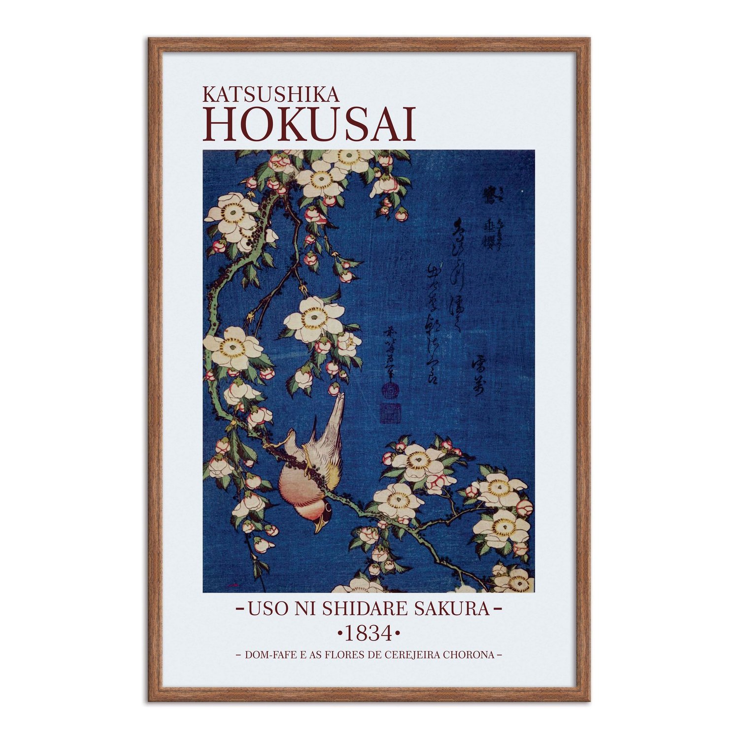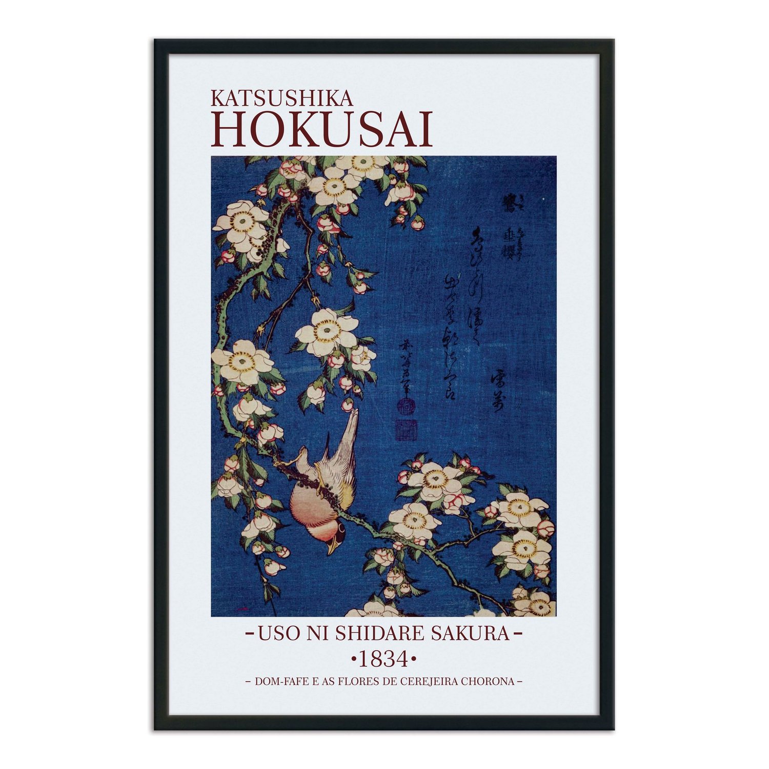 Inscrito no canto superior direito está um verso curto de dezessete sílabas (hokku) de Bunrai'an Setsuman, um poeta haicai da escola Setsumon, significa: