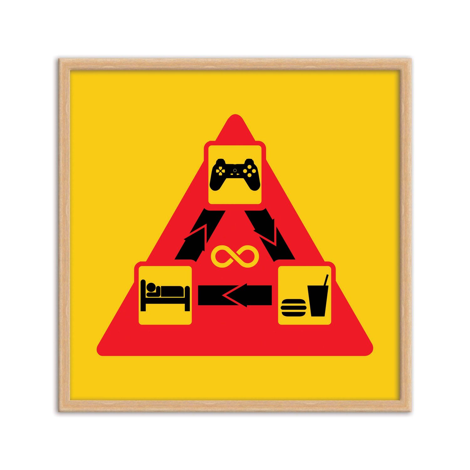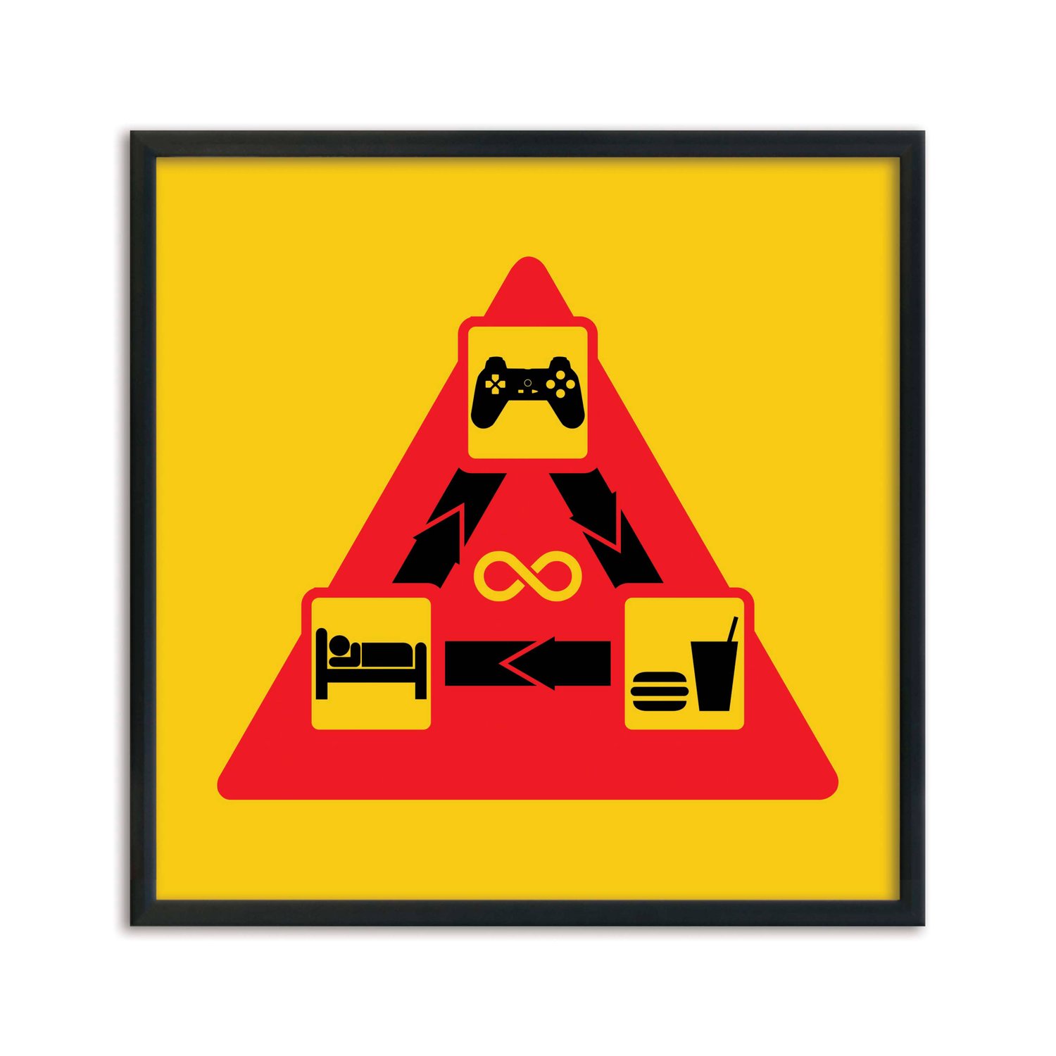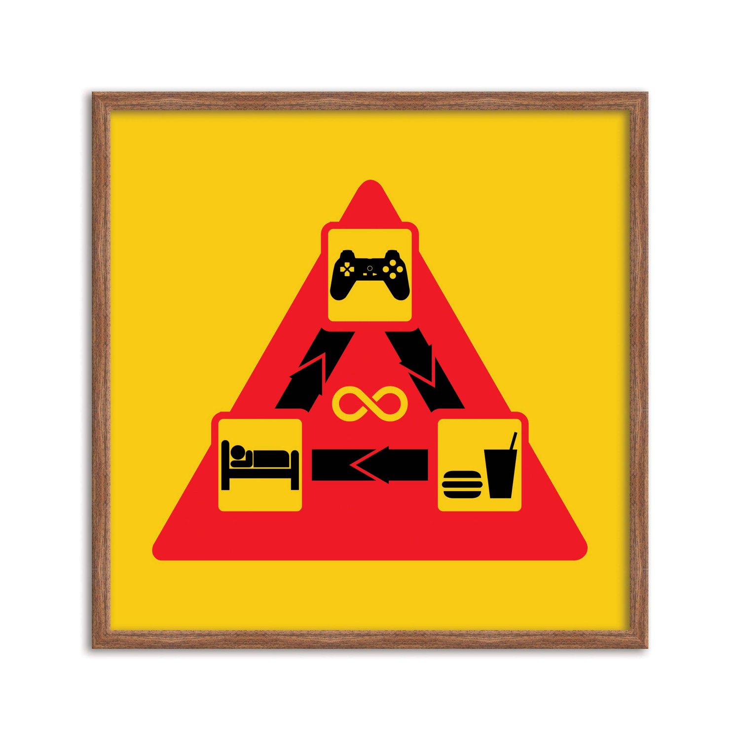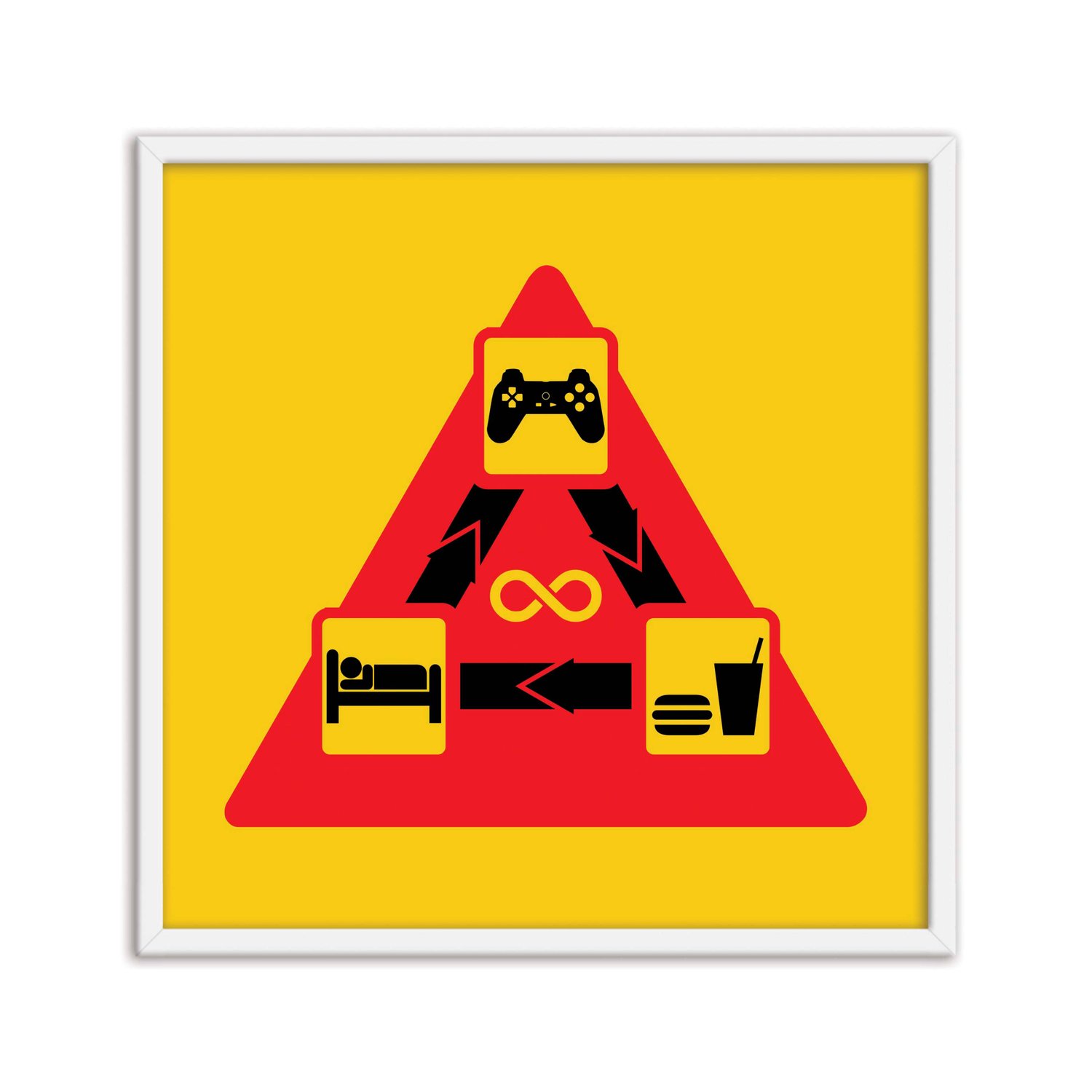 Quadro Decorativo Gamer Geek e Nerd Ciclo Infinito Jogar Comer Dormir Jogar