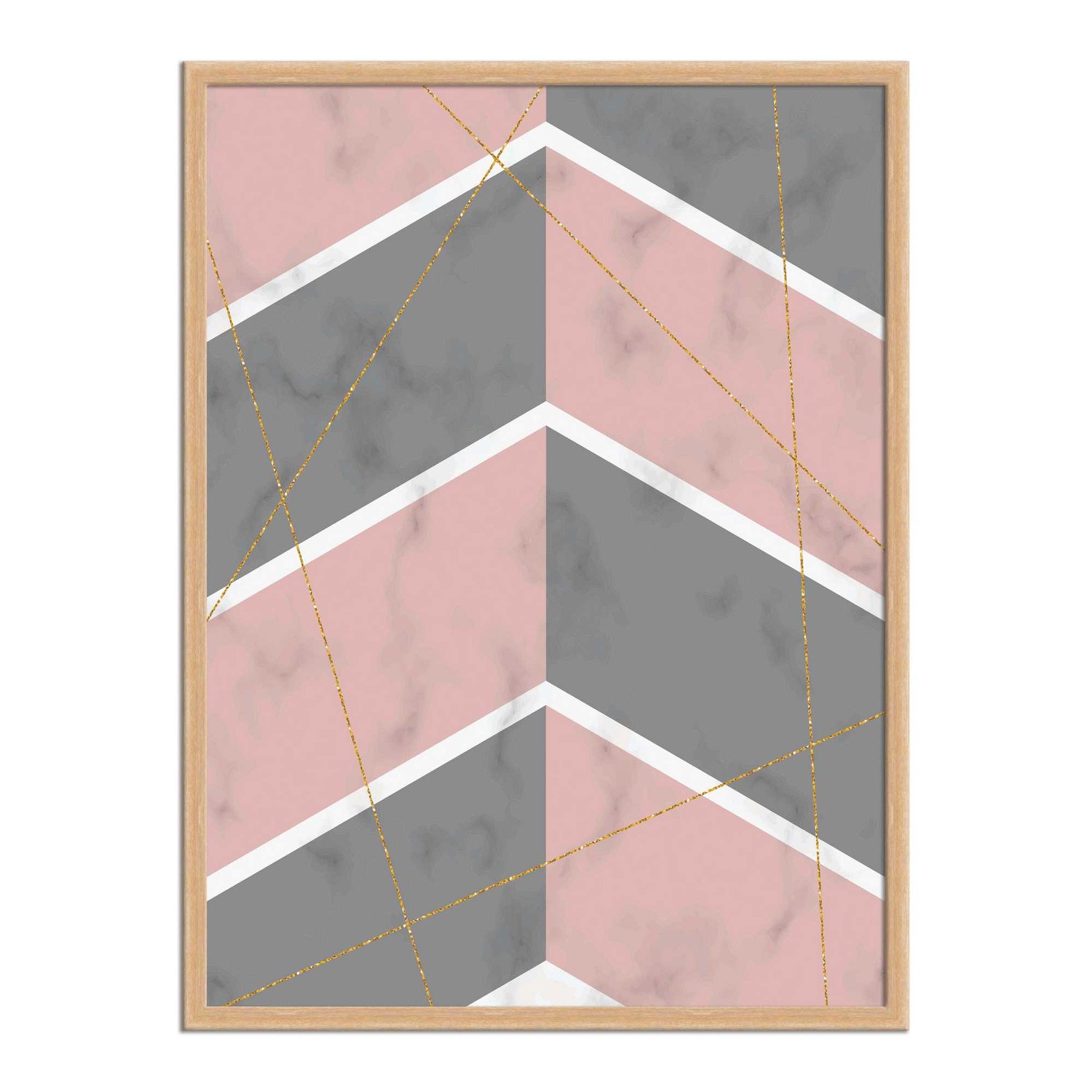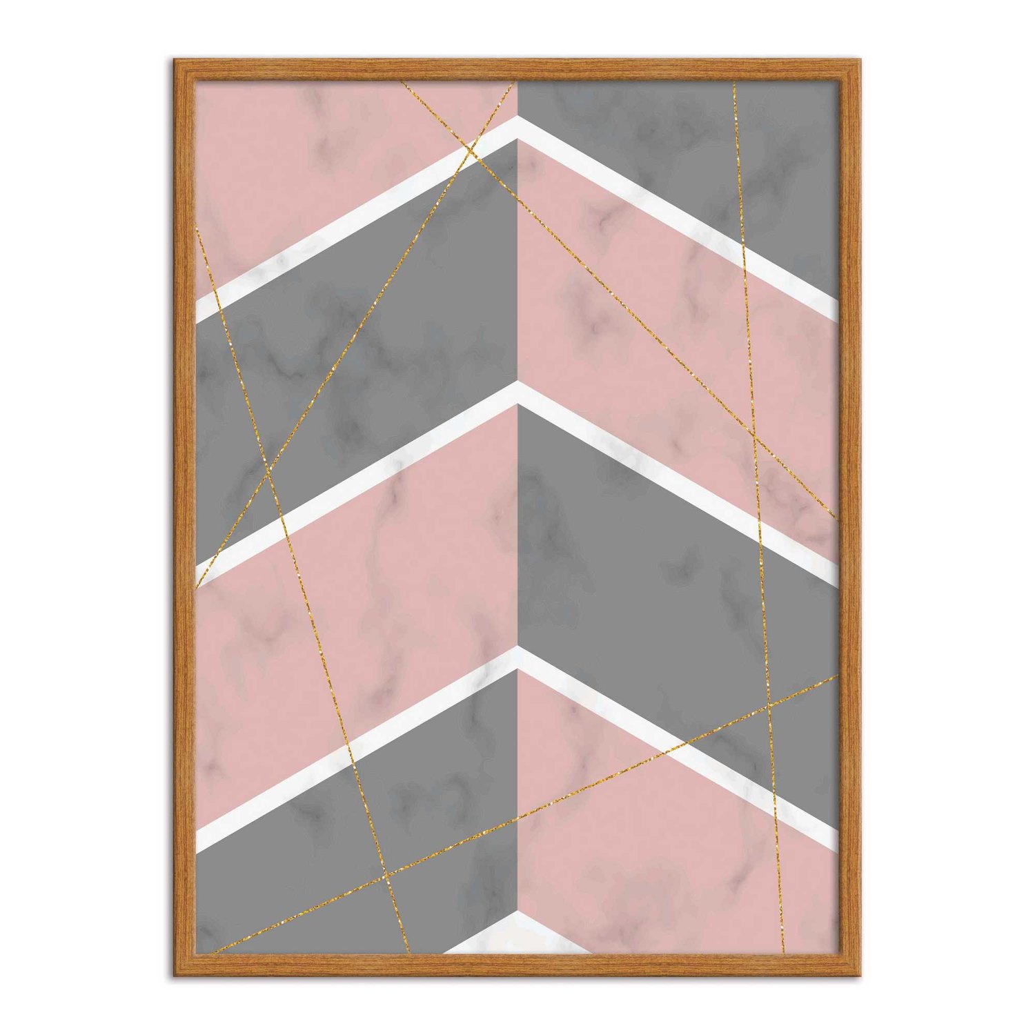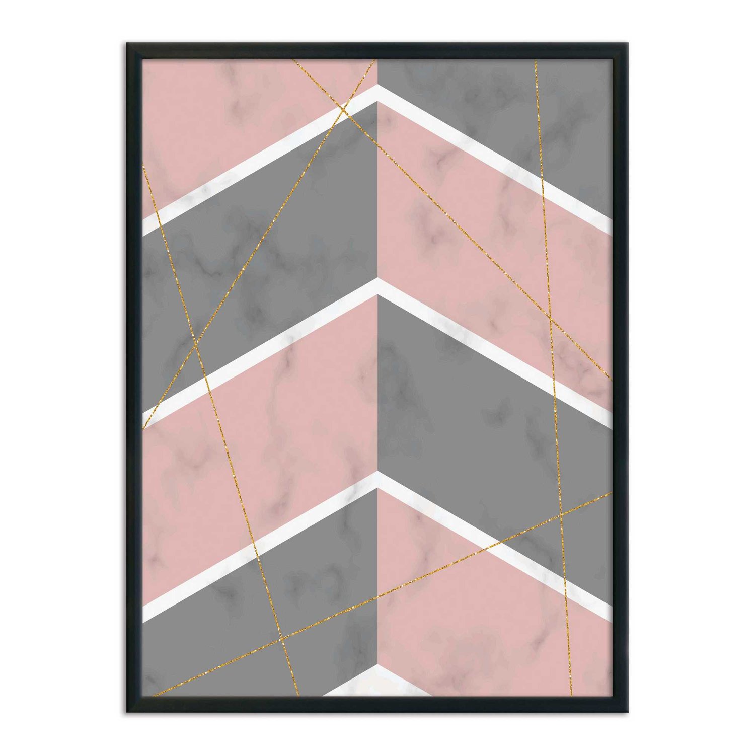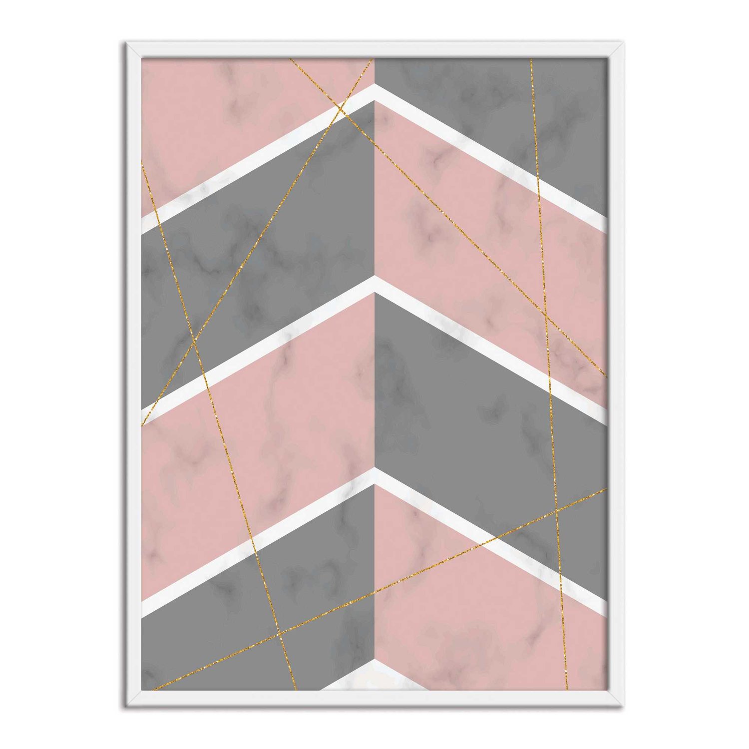 Quadro Decorativo Geométrico Cinza Com Rosa