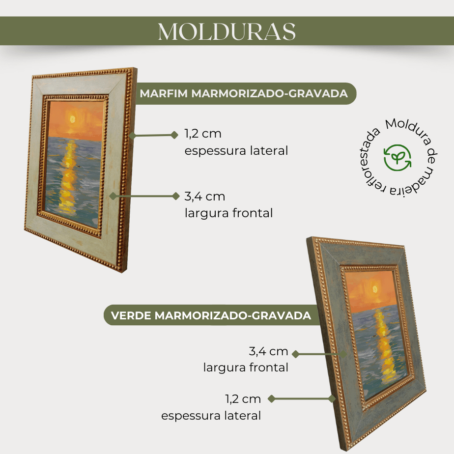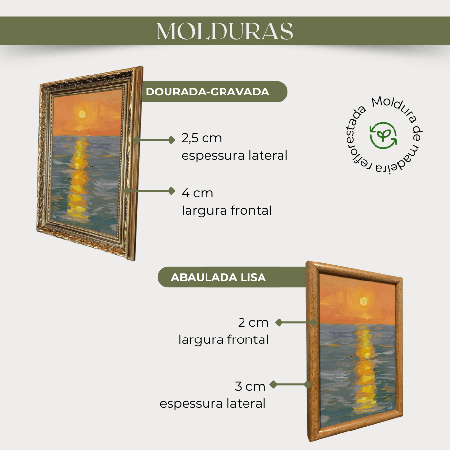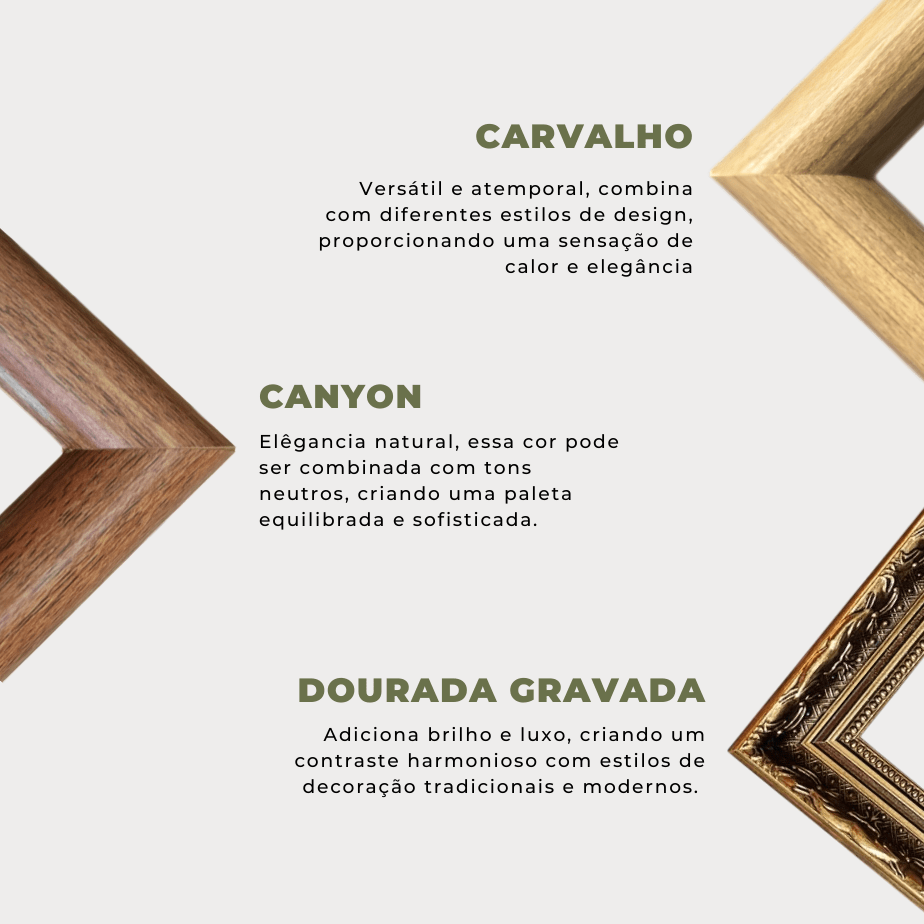 Finalize seu ambiente com elegância. Escolha a moldura que traduz seu estilo e transforme sua parede em uma expressão de sofisticação.