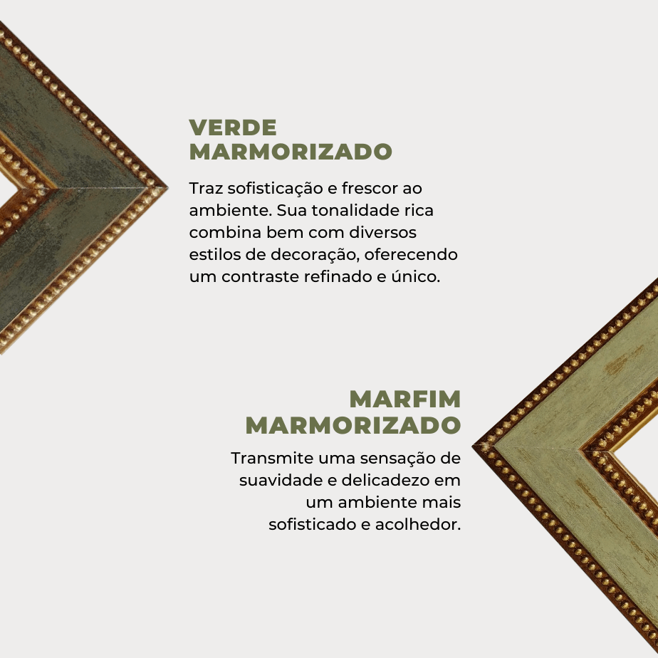- Moldura Gravada Dourada - Um clássico reinventado. Transmite luxo, autoridade estética e personalidade, criando impacto imediato sem excessos.