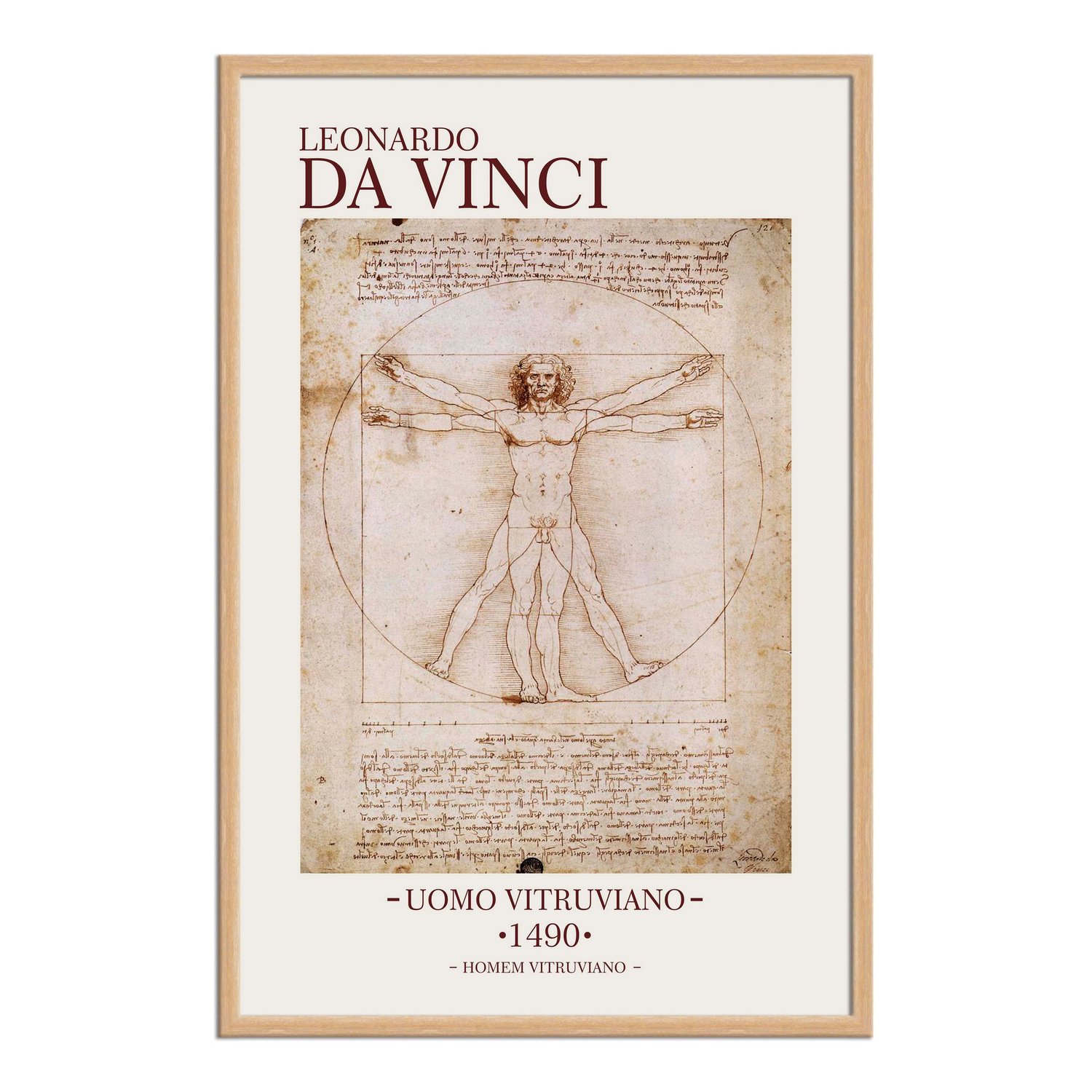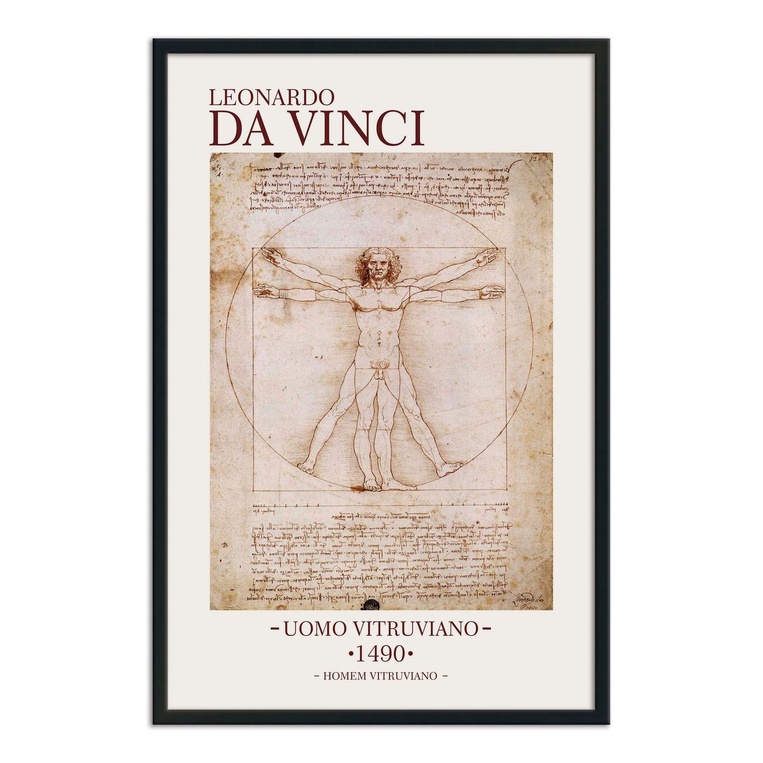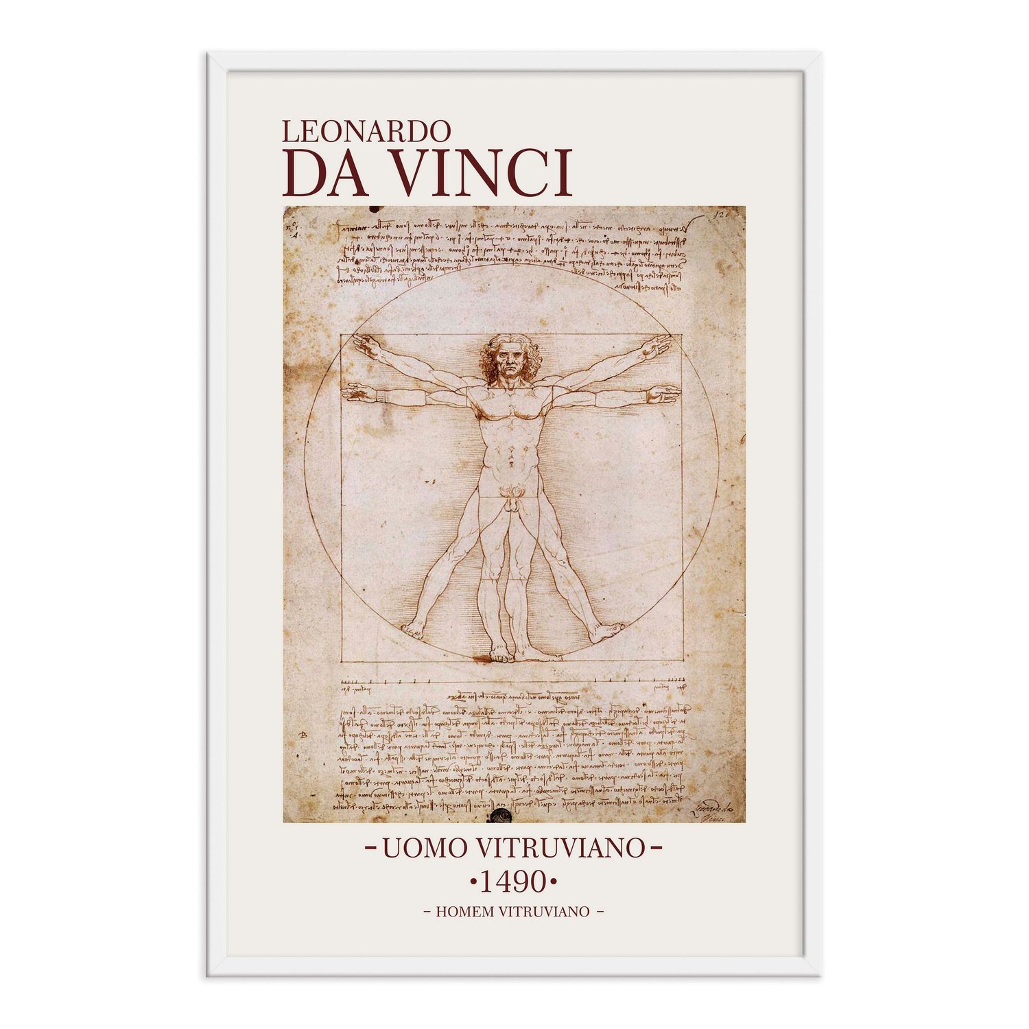 O “Homem Vitruviano” é, provavelmente, o esboço mais famoso de Da Vinci, acompanhado de notas feitas pelo artista em um de seus diários, baseado na obra do arquiteto romano Vitrúvio, que tinha a crença de que o corpo humano poderia ser um modelo de proporções perfeitas para a arquiteturas. Atualmente o esboço está na Gallerie dell'Accademia, em Veneza, na Itália.