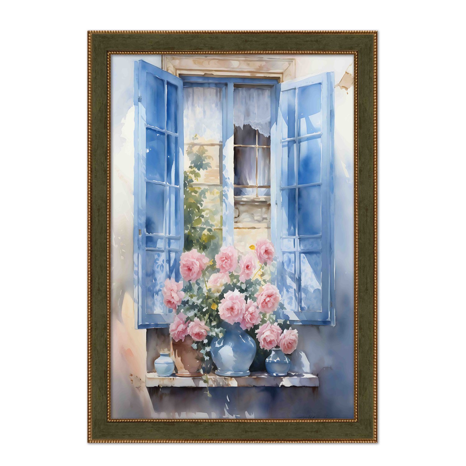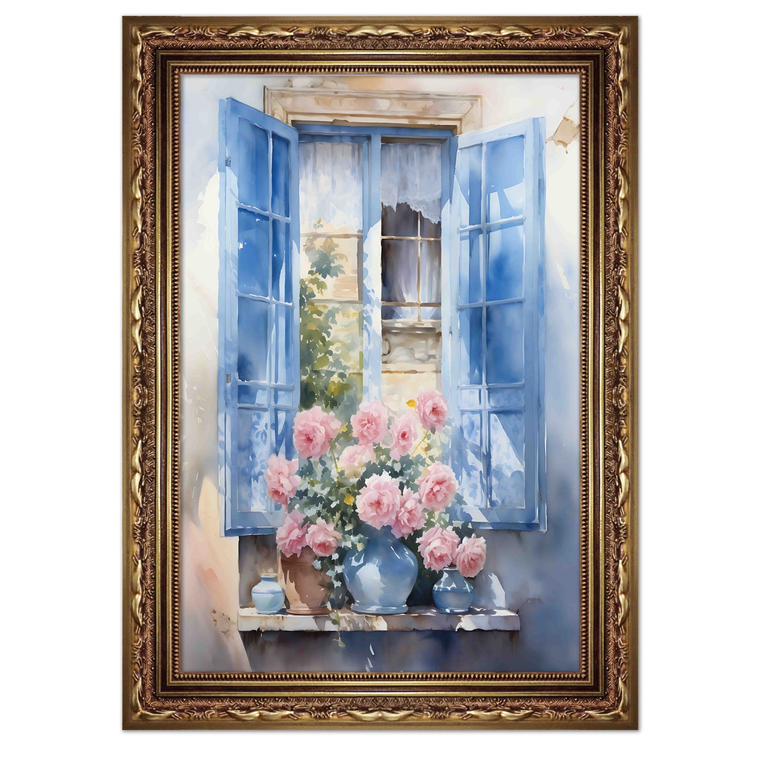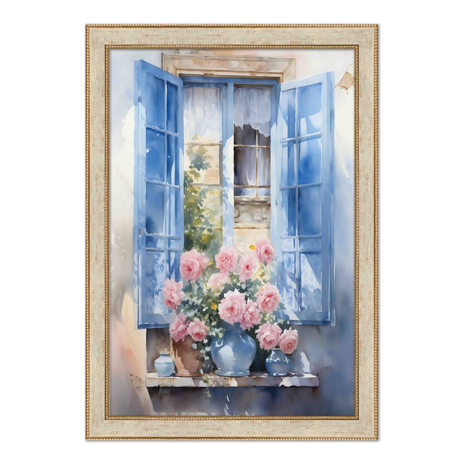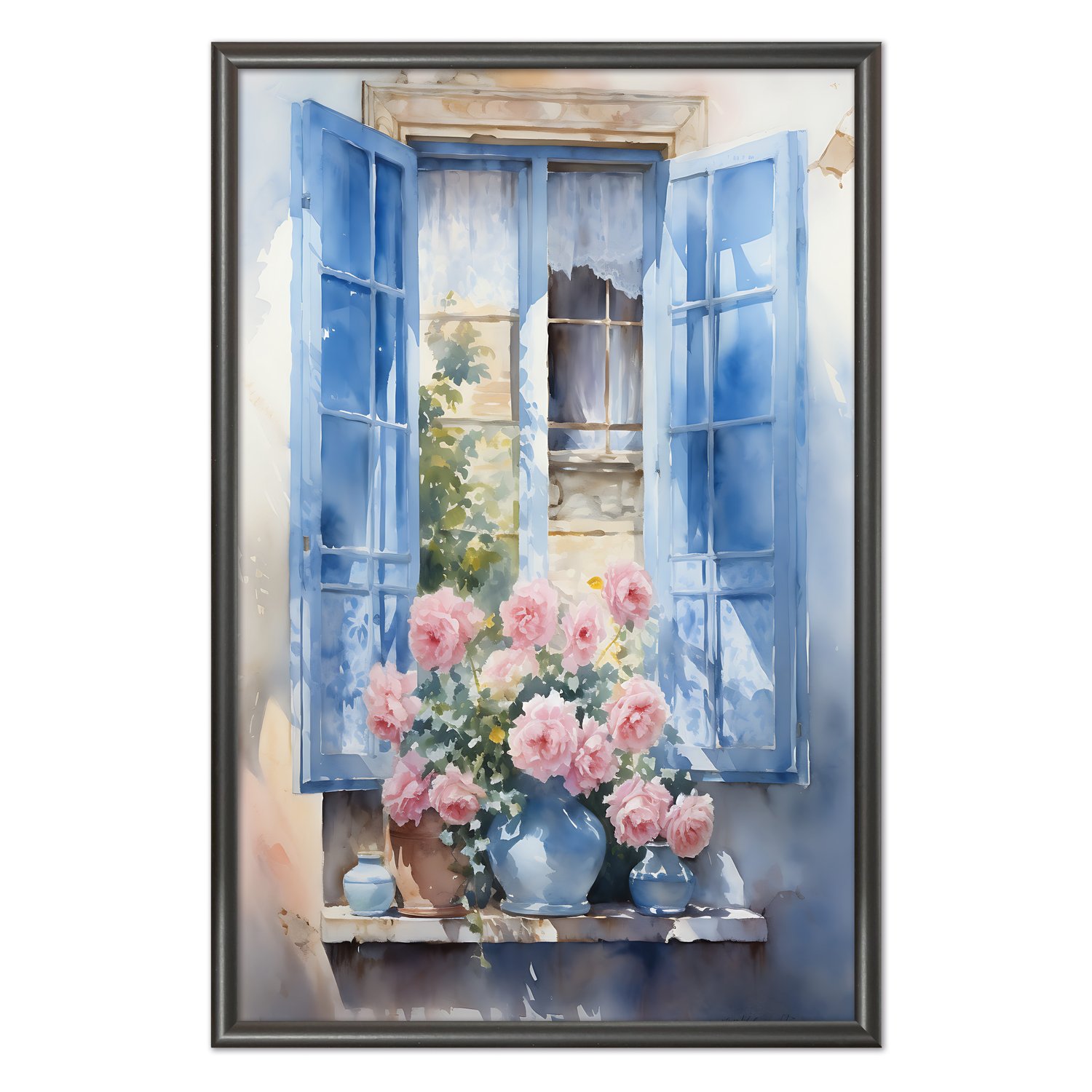 Quadro Decorativo Janela Florida Aquarela
