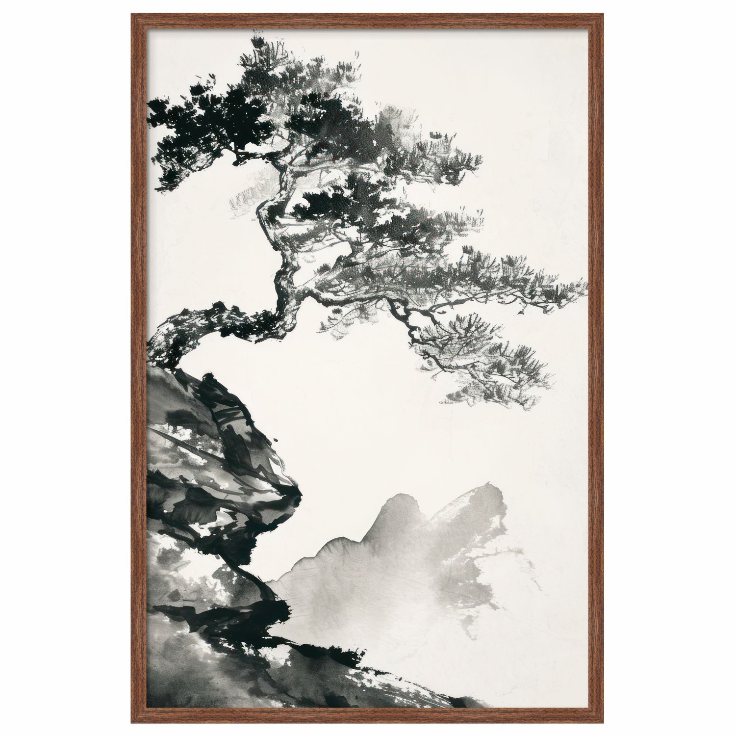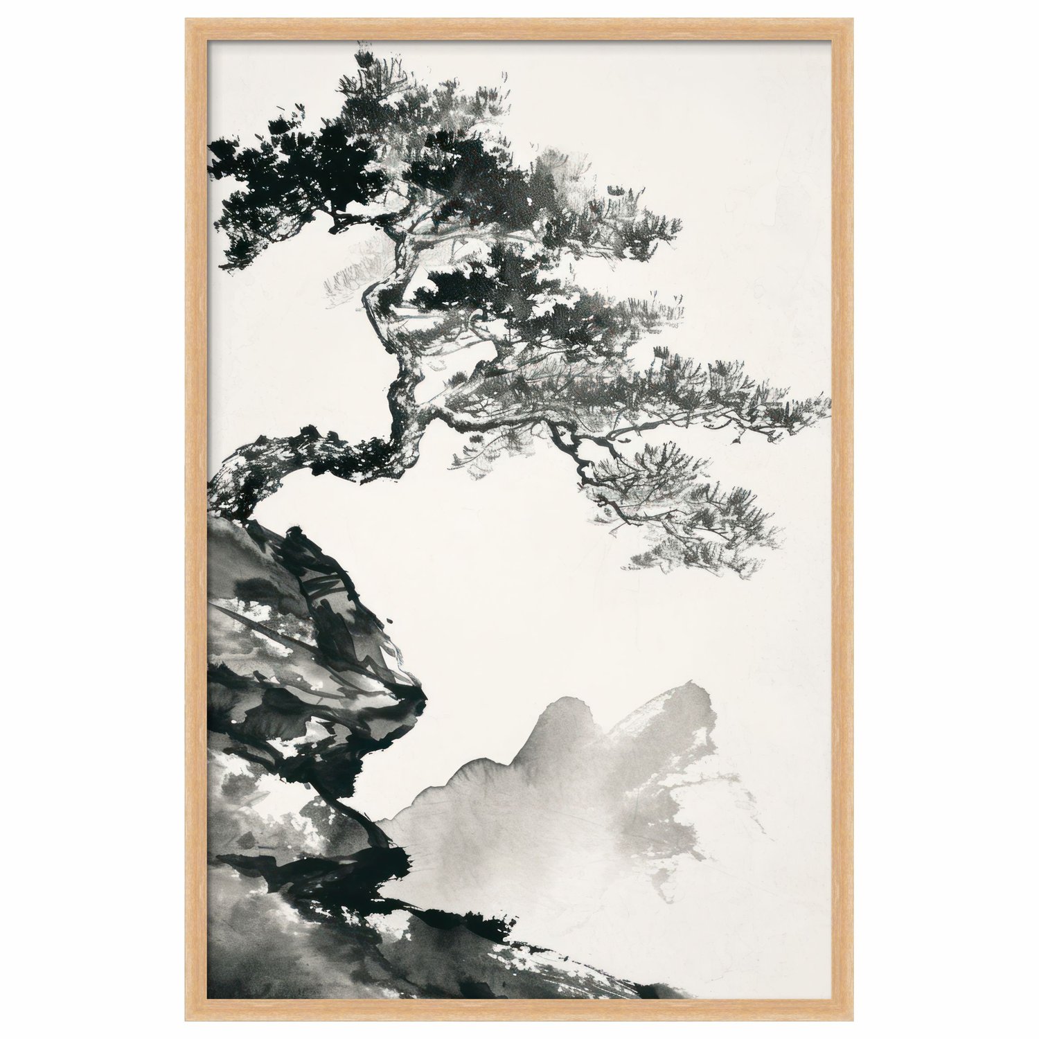 Quadro Decorativo Ki Pintura de Árvore no Estilo Sumiê