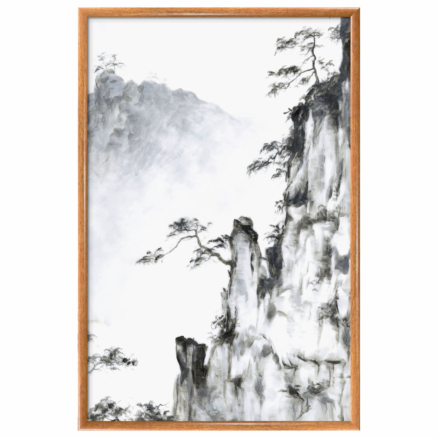 Quadro Decorativo Ki Yama Pintura de Árvores nas Montanhas no Estilo Sumiê