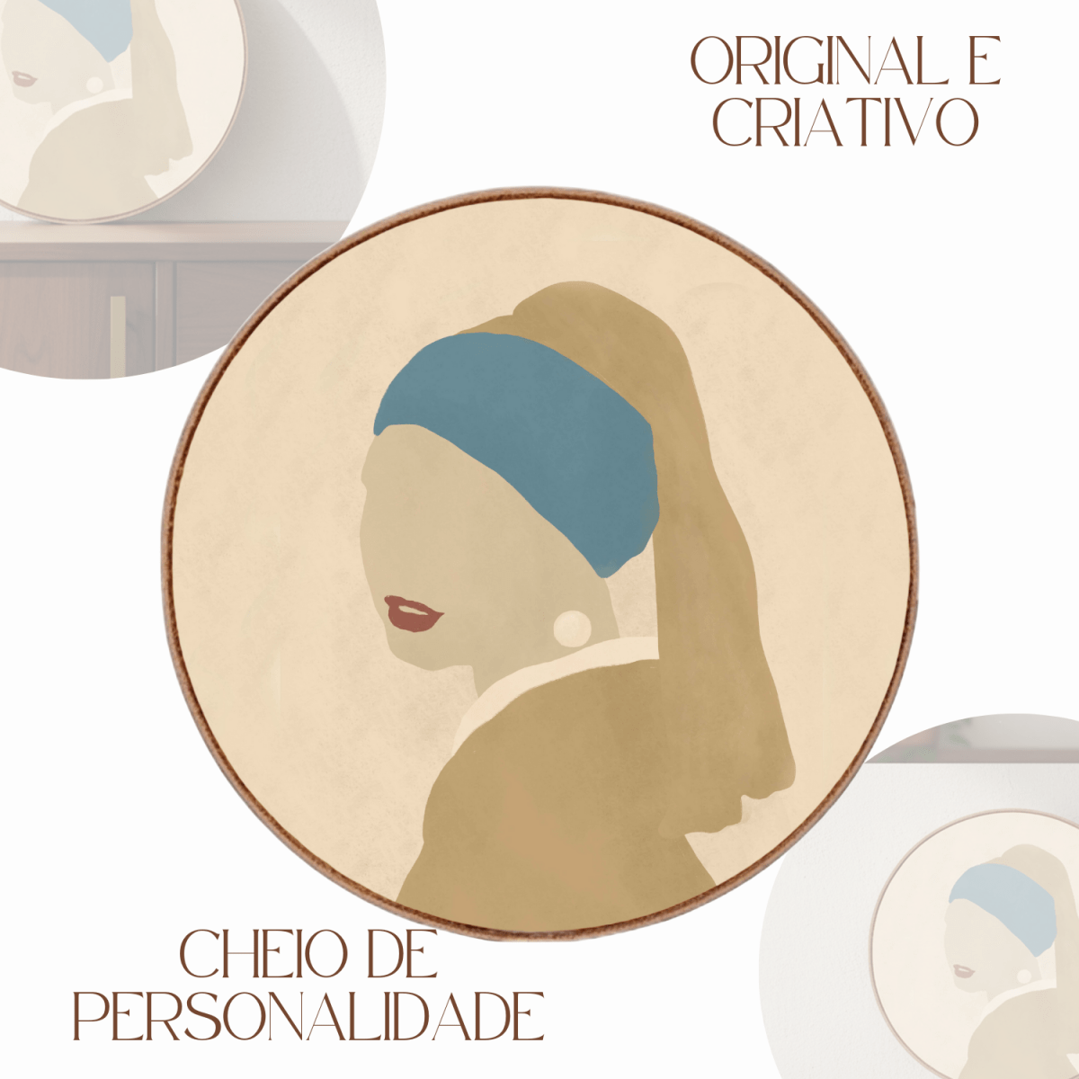 Quadro Decorativo Redondo A Moça com Brinco de Pérola Minimalista