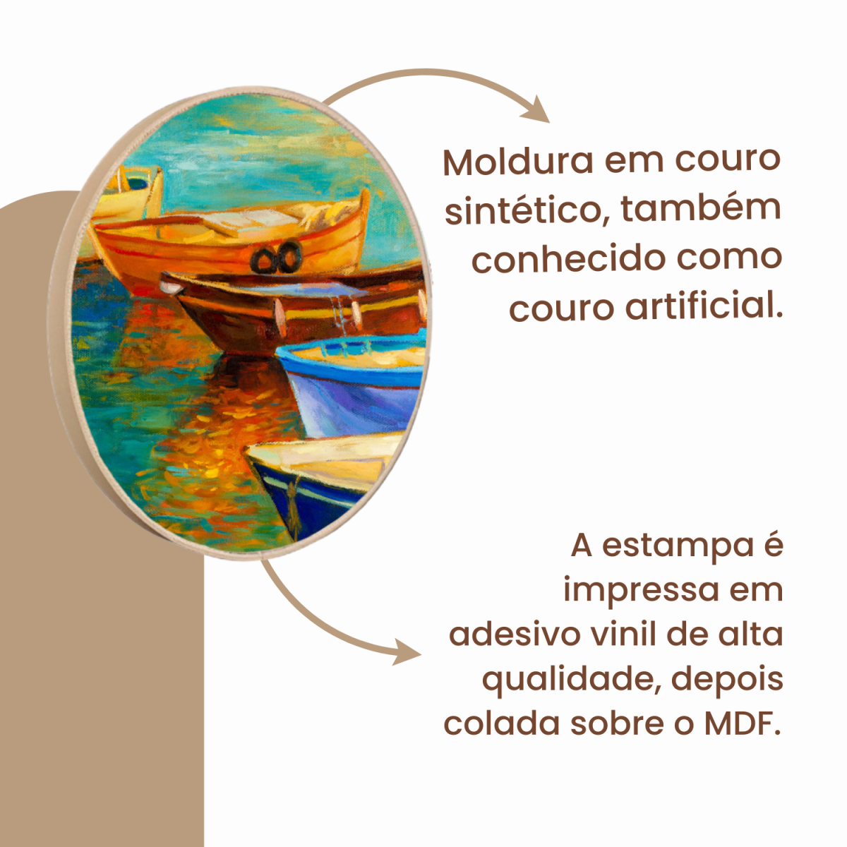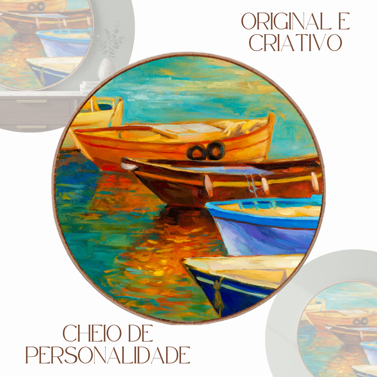 Quadro Decorativo Redondo Barcos Coloridos no Cais