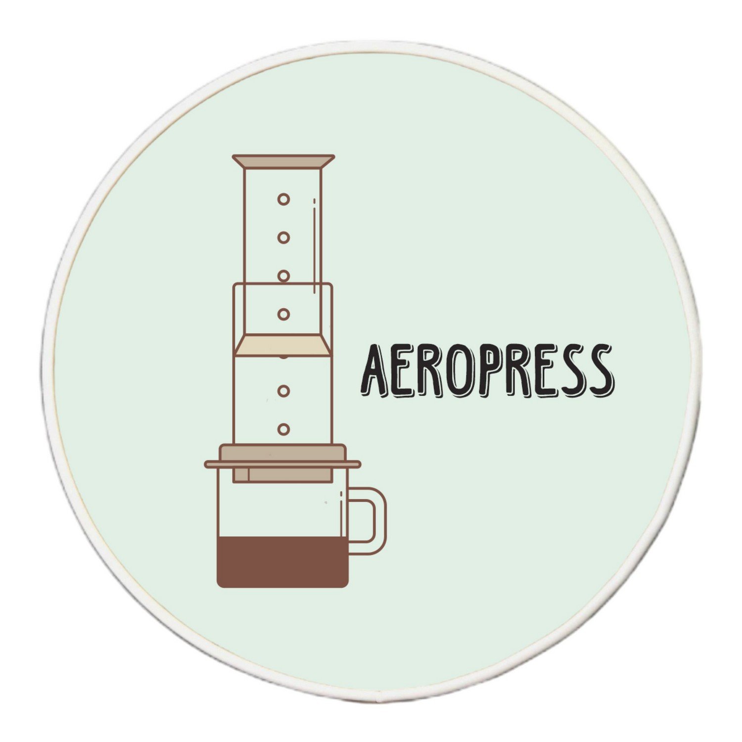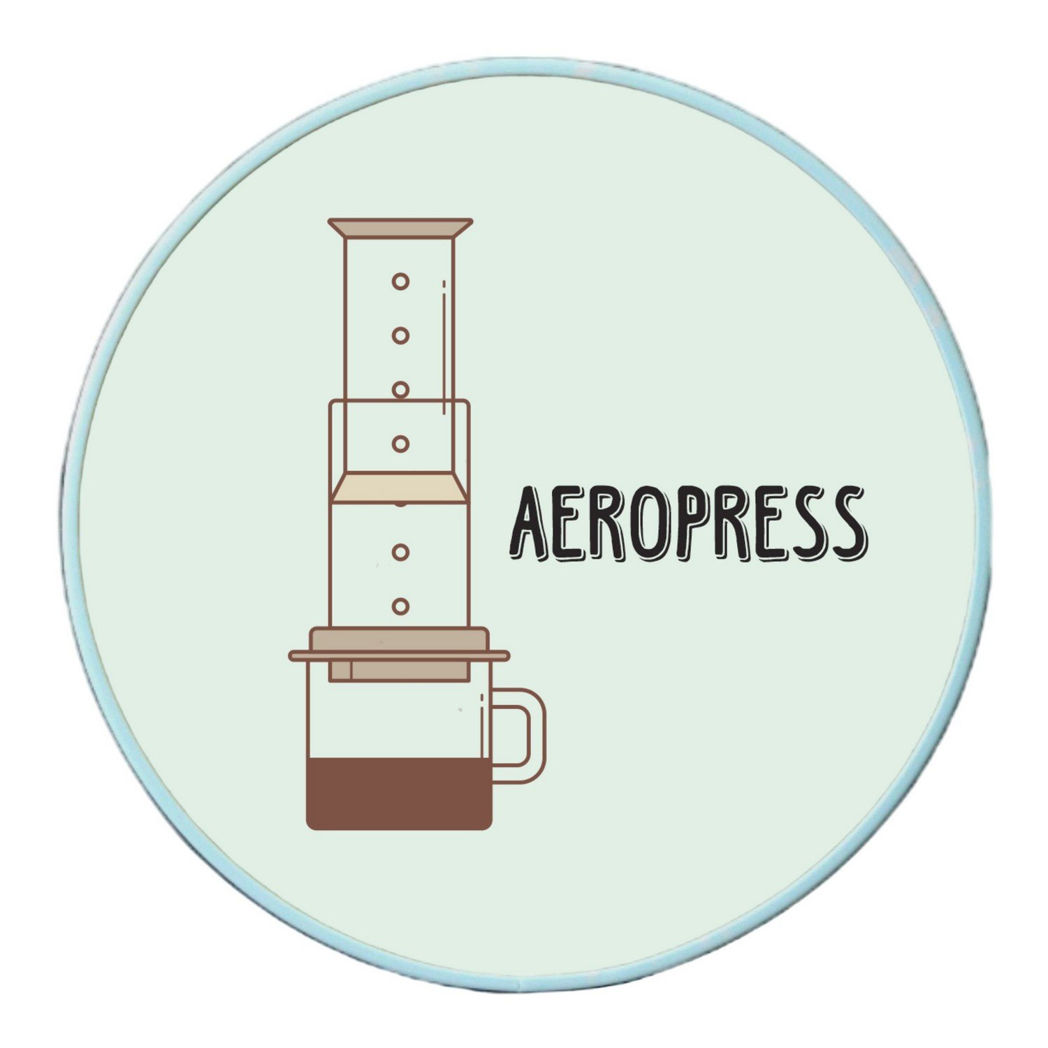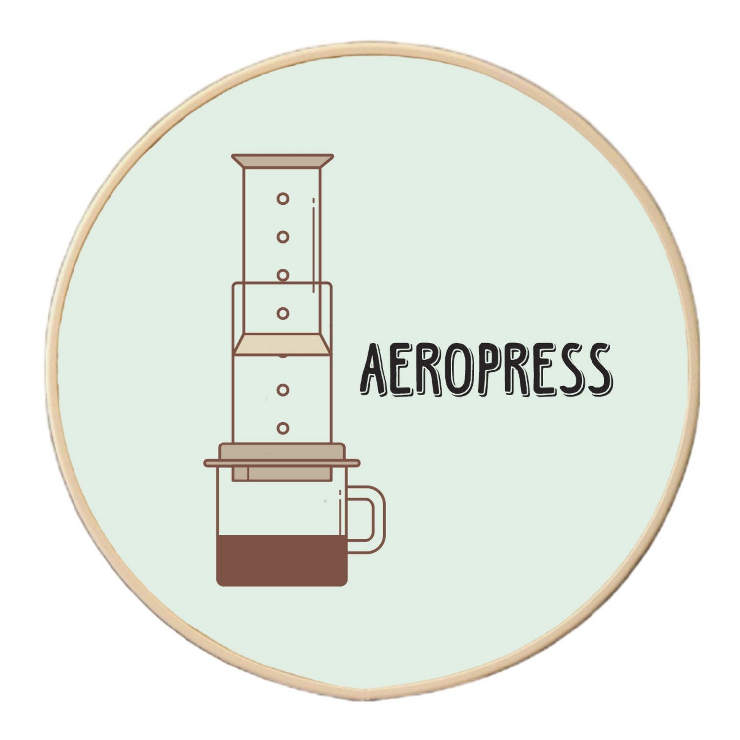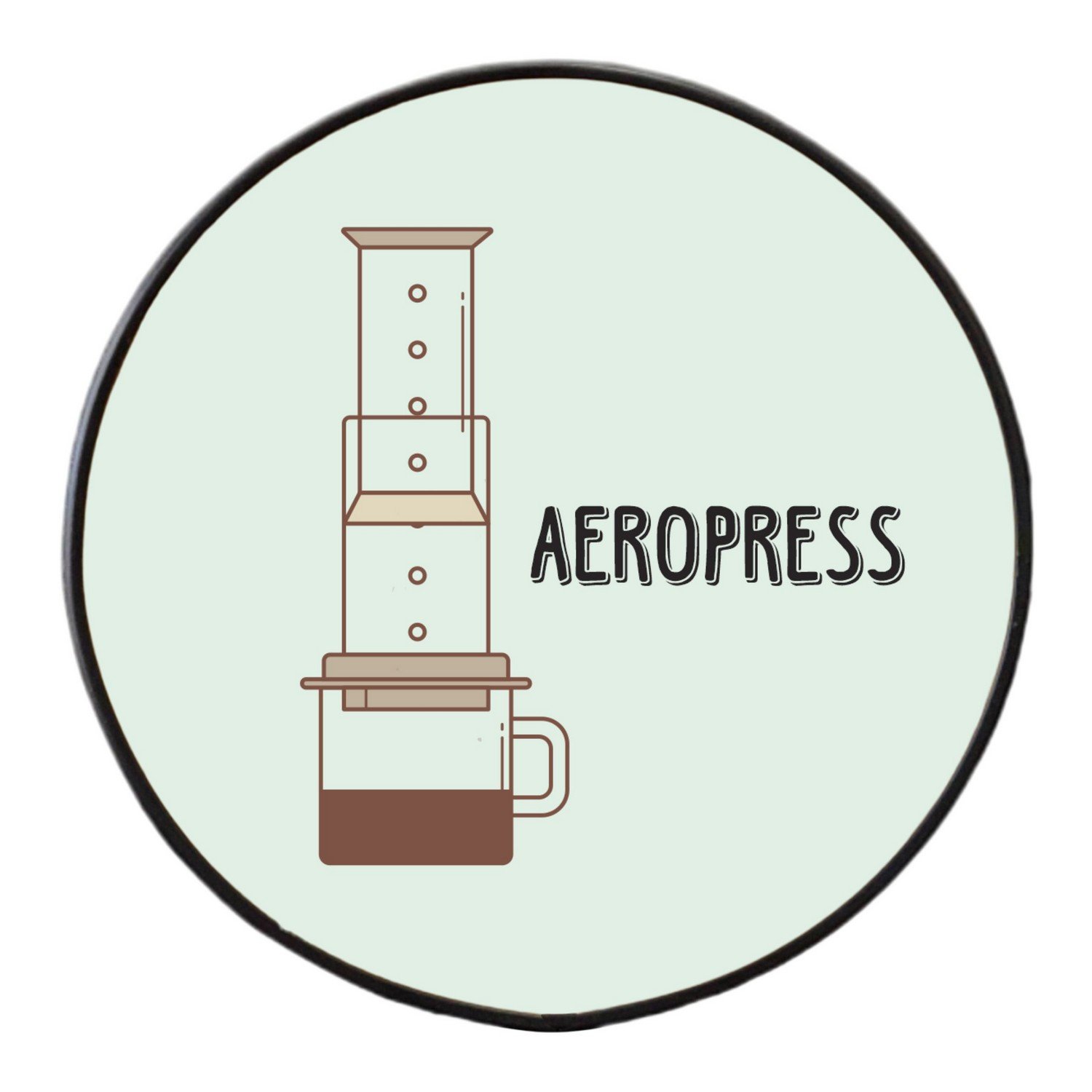Quadro Decorativo Redondo Café Aeropress com Moldura Filete Flexível