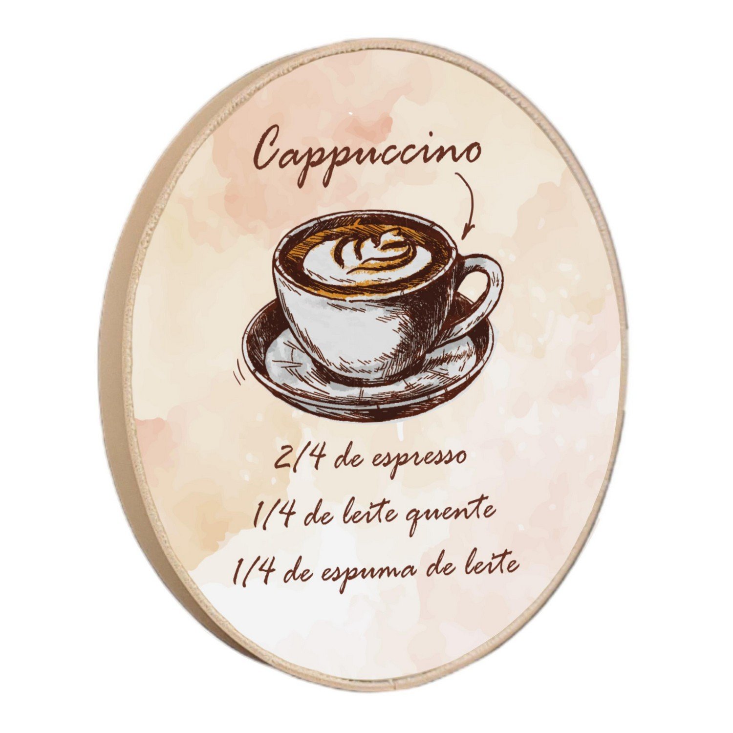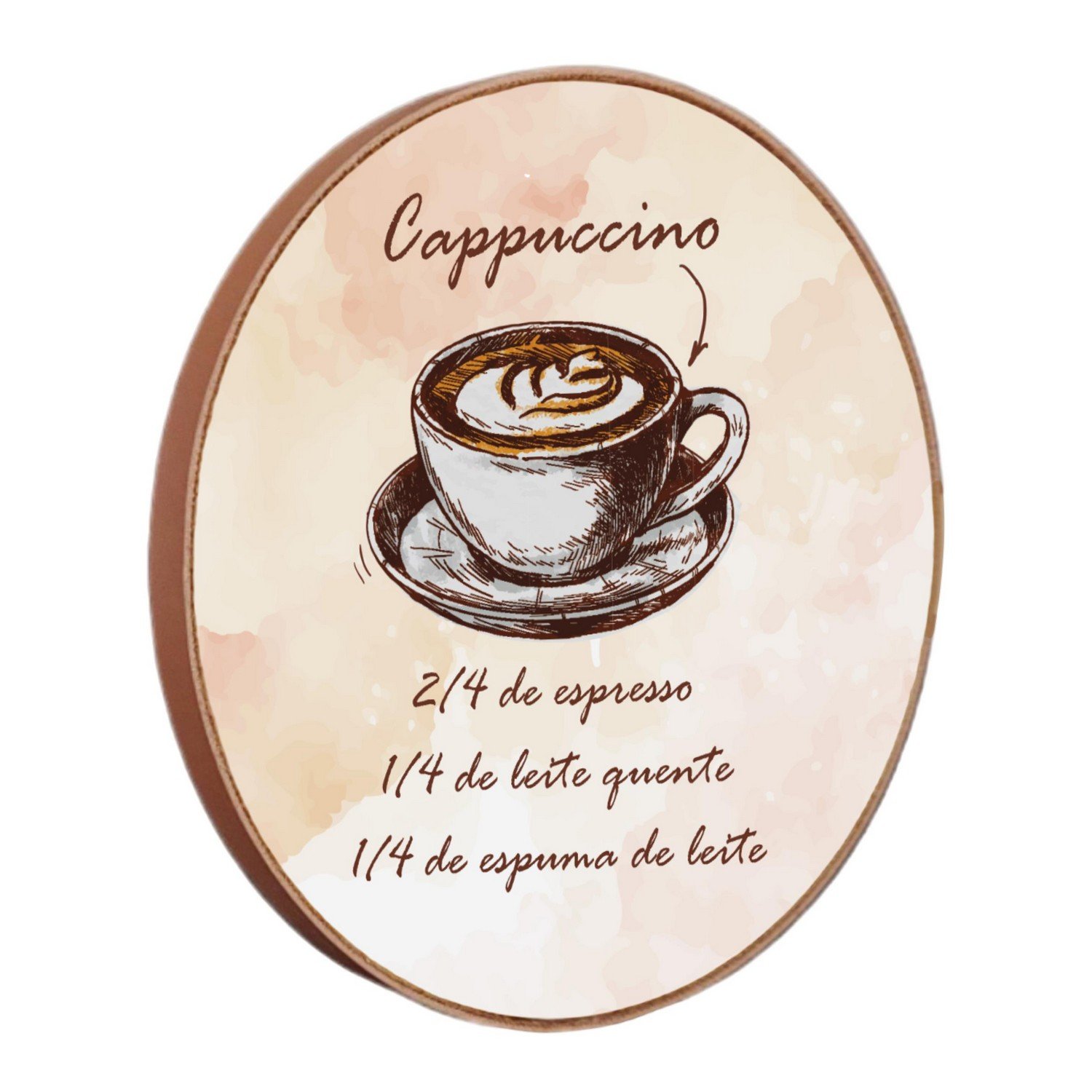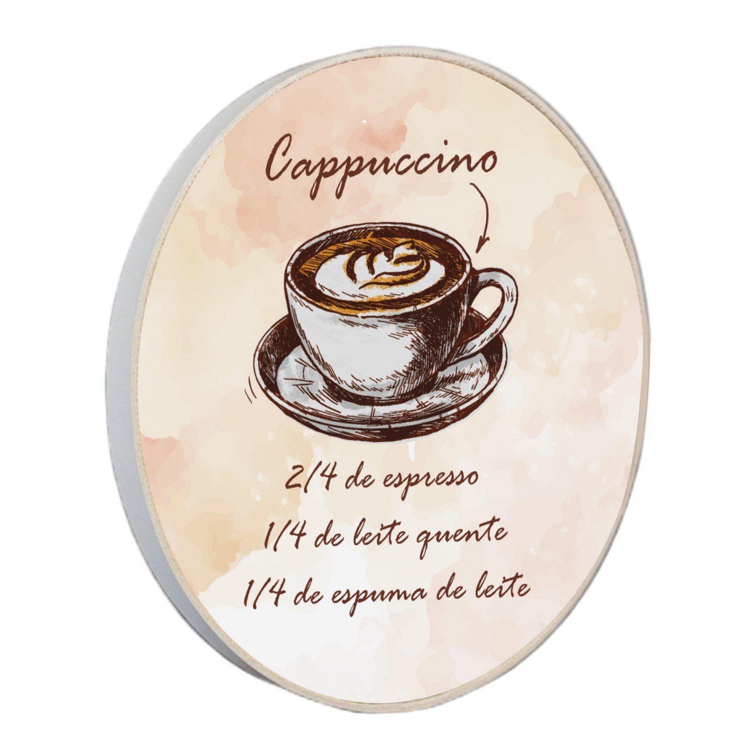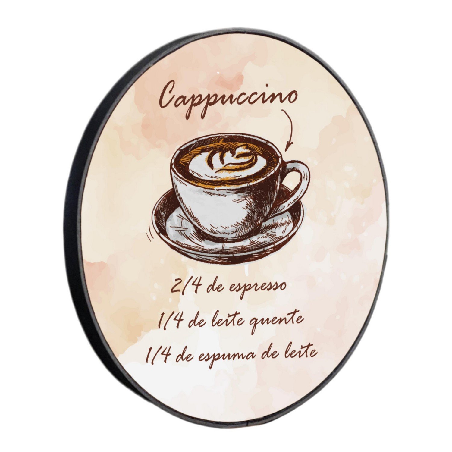 Quadro Decorativo Redondo Café Cappuccino com Moldura em Couro Sintético