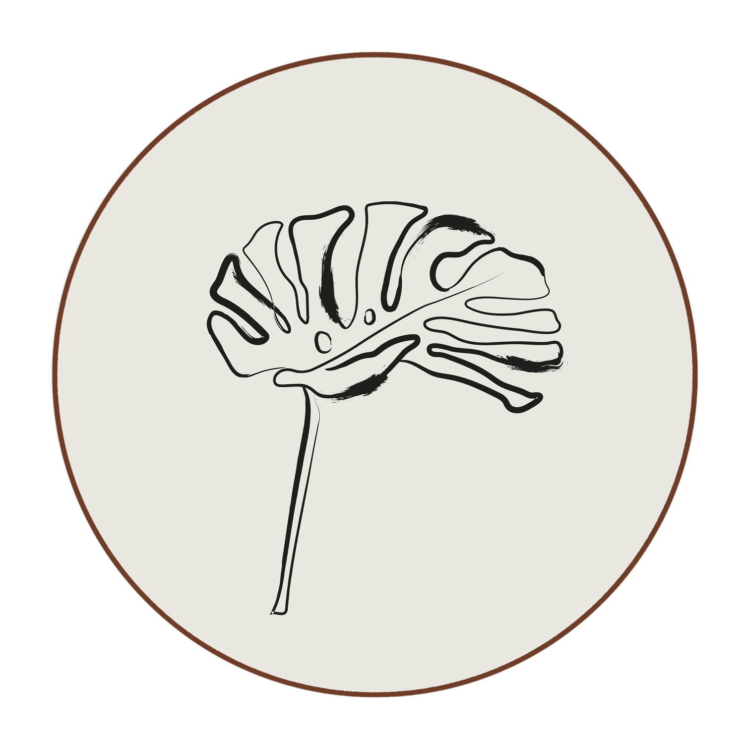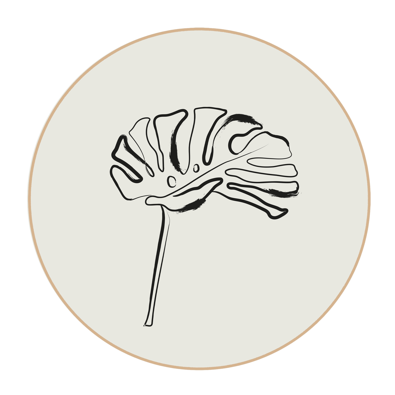 Quadro Decorativo Redondo Folha Costela De Adão Com Moldura Em Couro Sintético