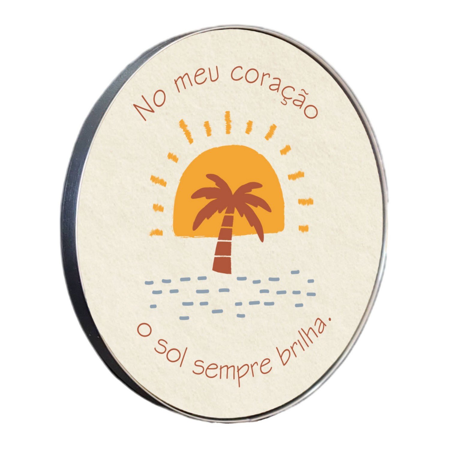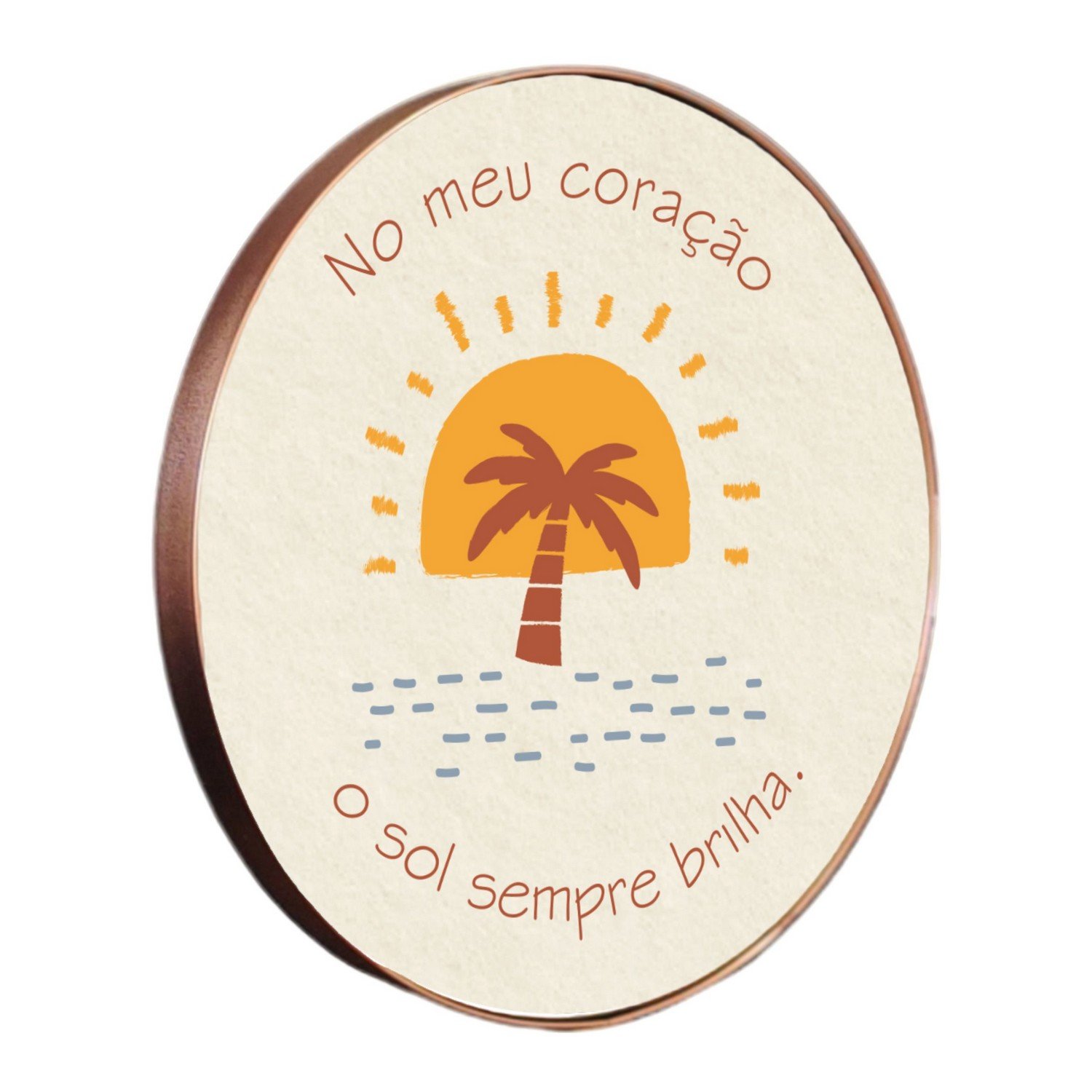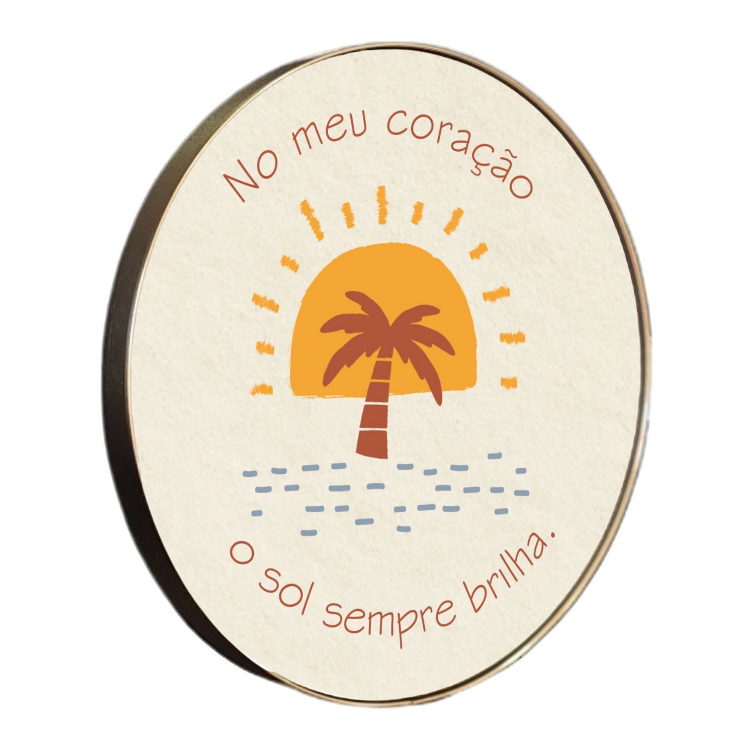 Quadro Decorativo Redondo Frase No Meu Coração o Sol Sempre Brilha com Moldura Flexível Metalizada