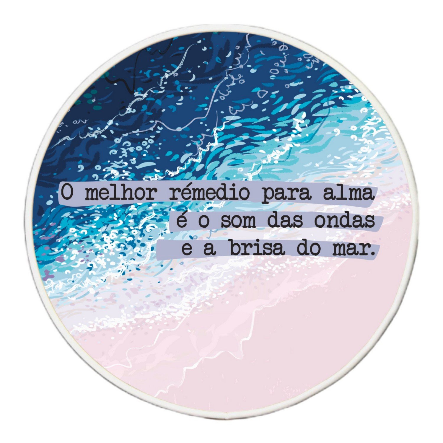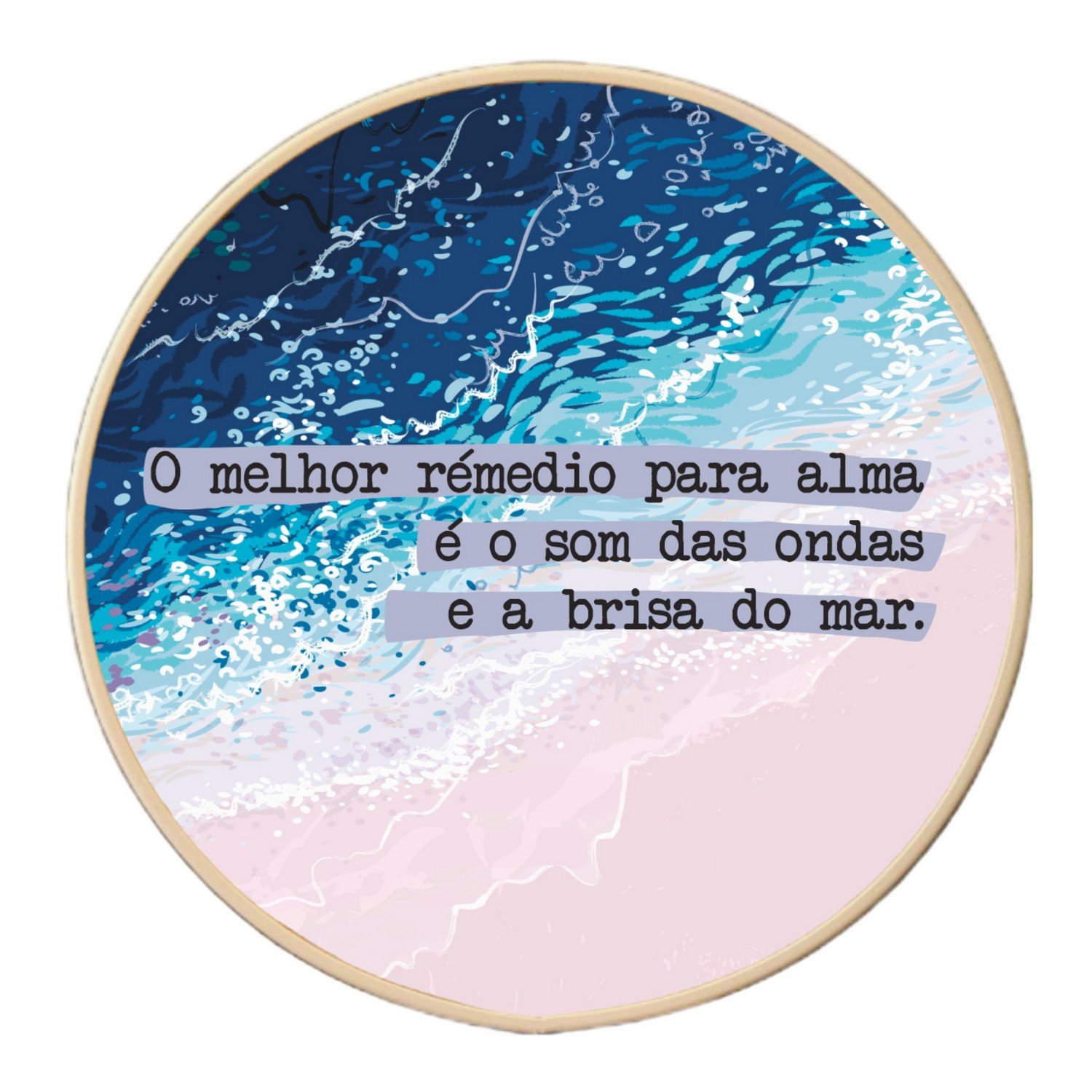 Quadro Decorativo Redondo Frase O Melhor Remédio Para Alma é o Som das Ondas e a Brisa do Mar com Moldura Filete Flexível