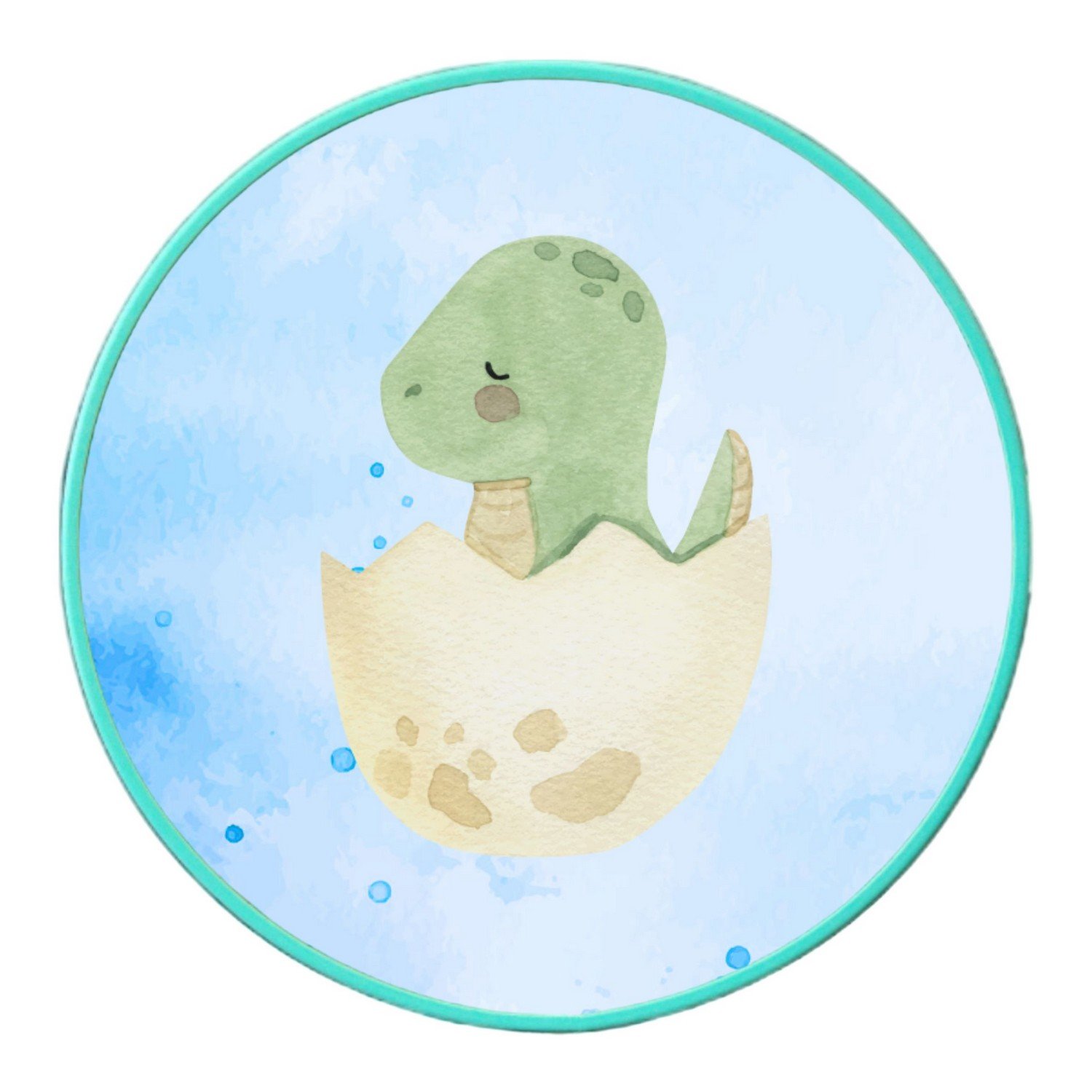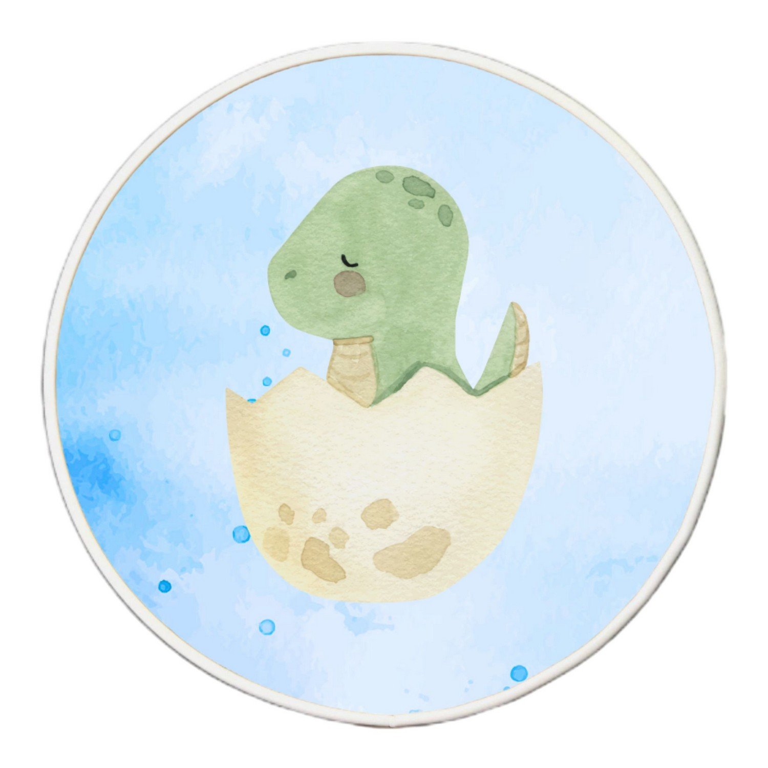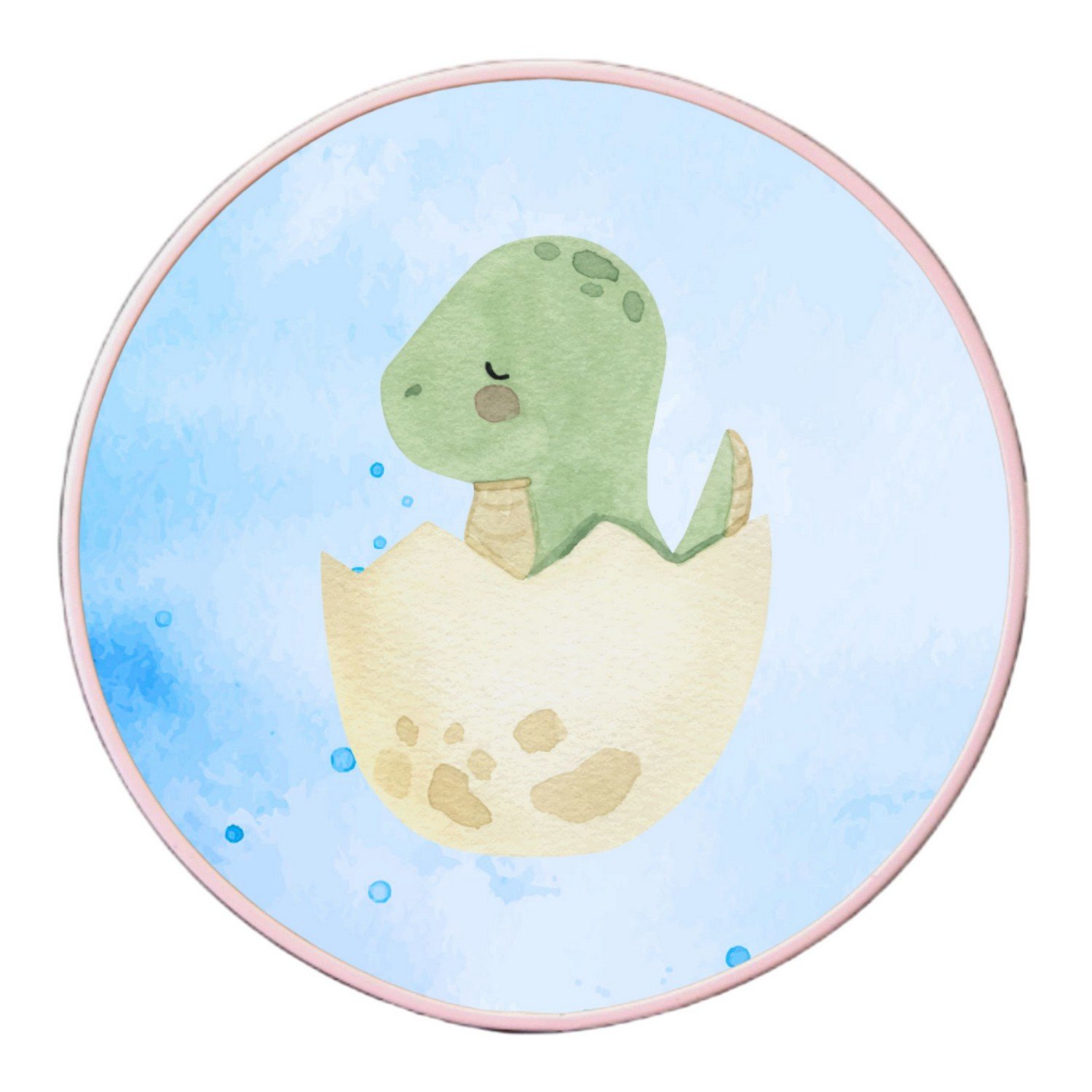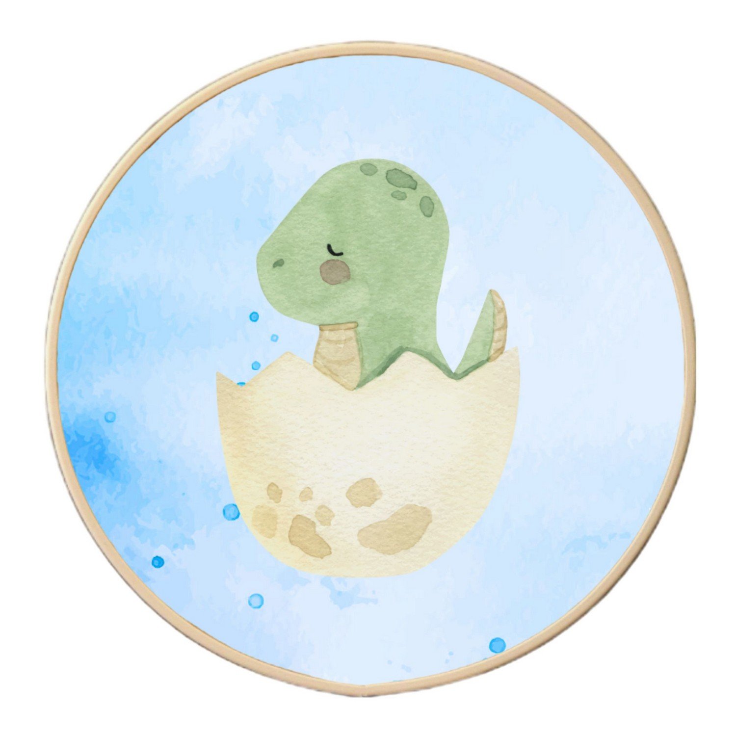 Quadro Decorativo Redondo Infantil Dinossauro Bebê Braquiossauro Fofinho com Moldura Filete Flexível