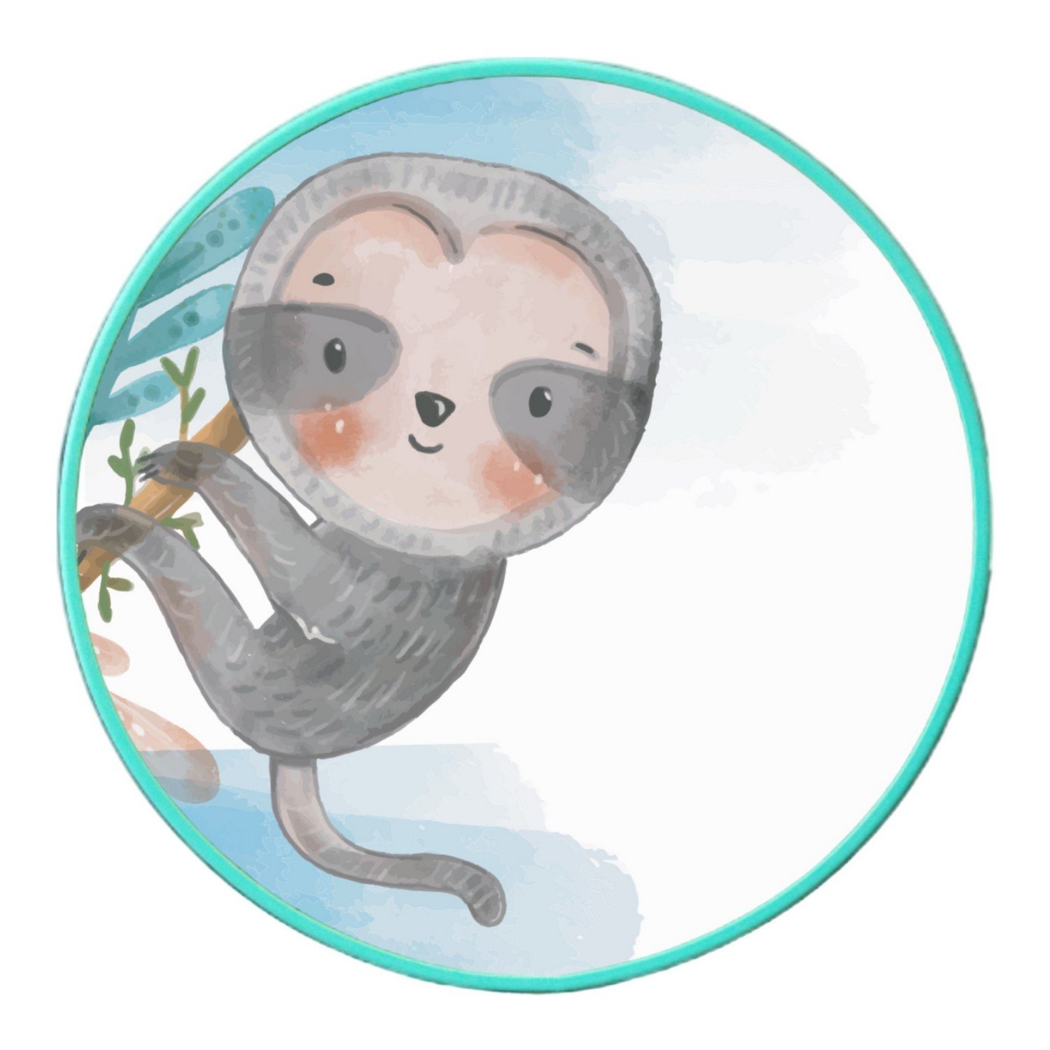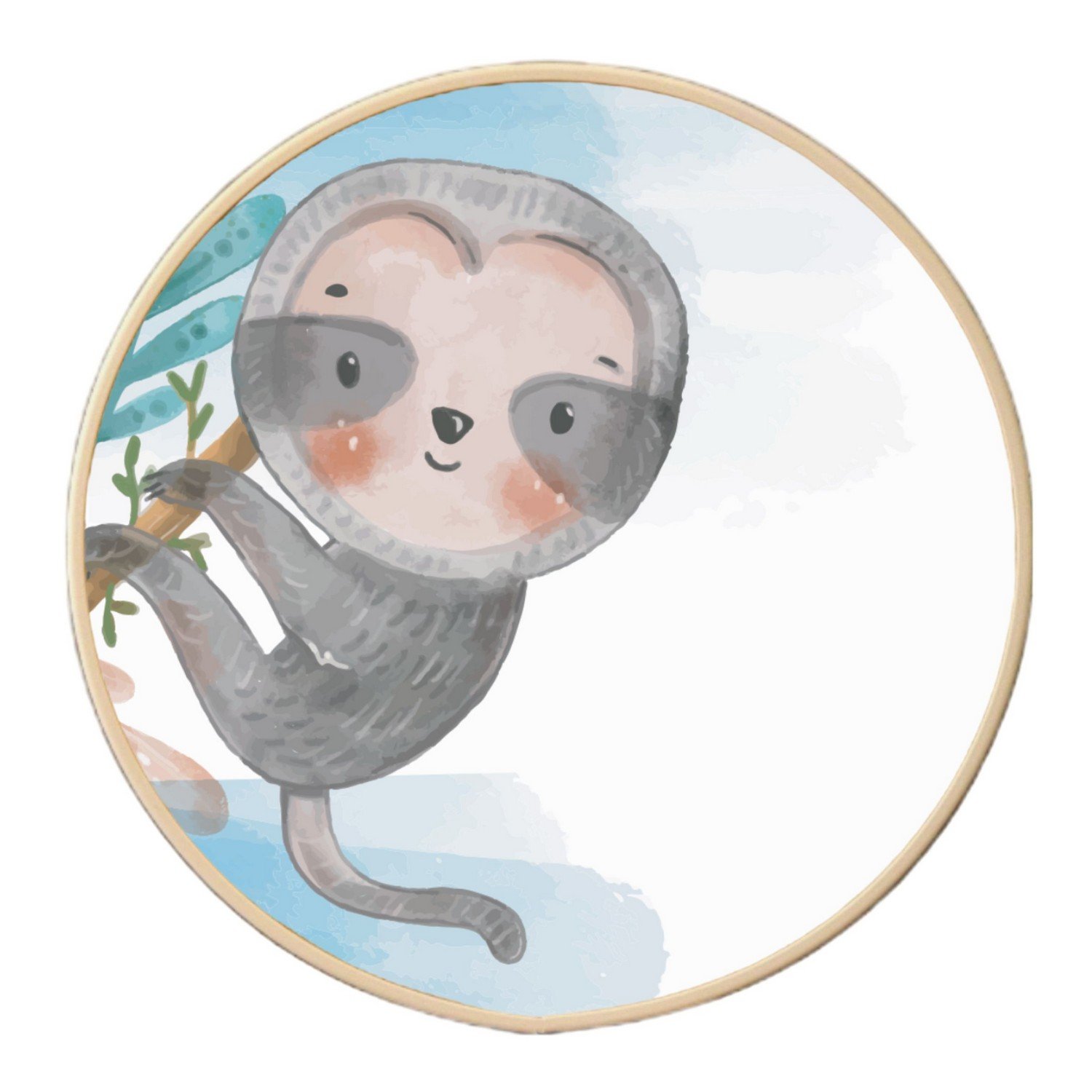 Quadro Decorativo Redondo Infantil Macaco Fofinho com Moldura Filete Flexível
